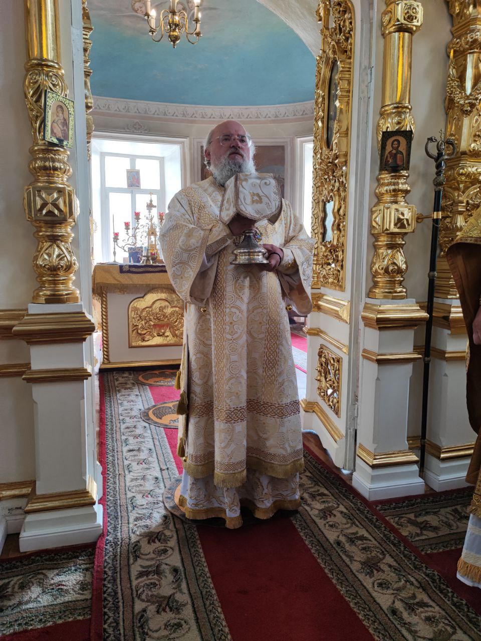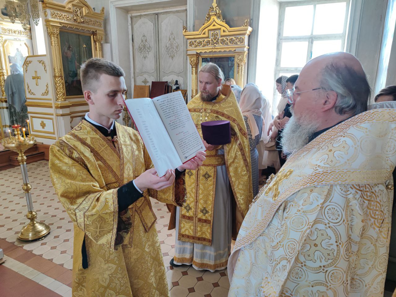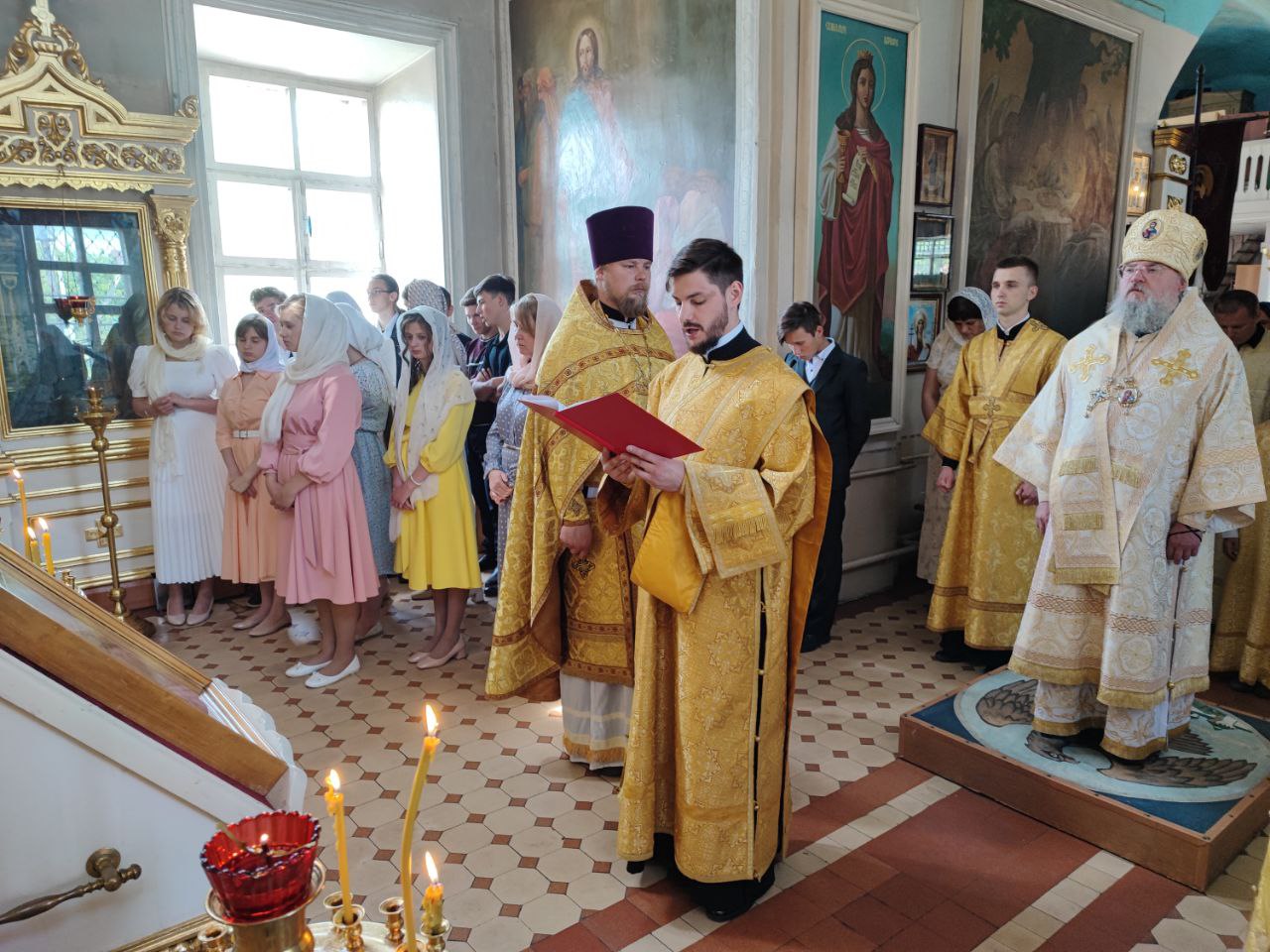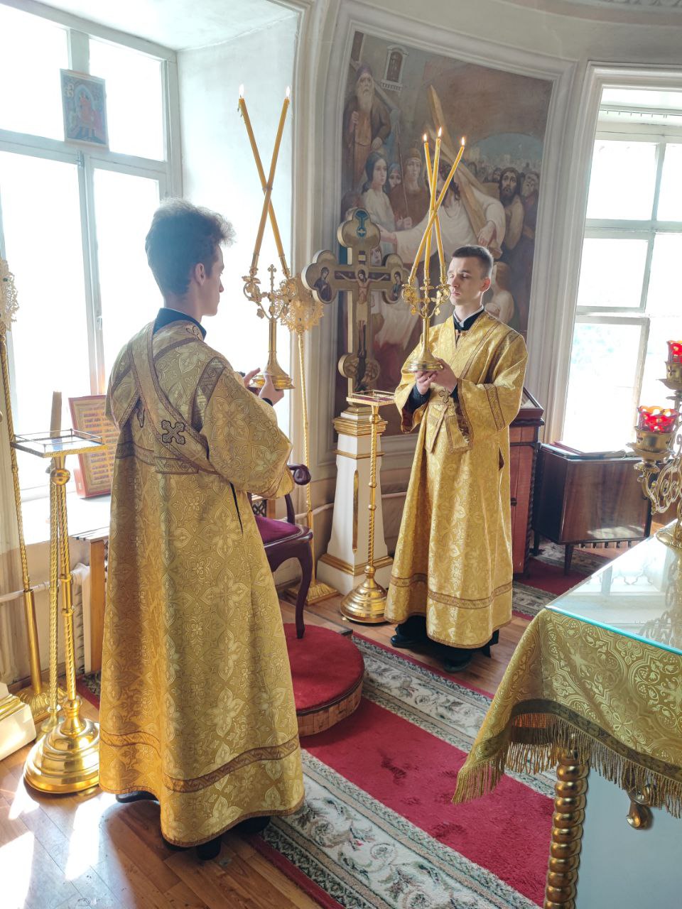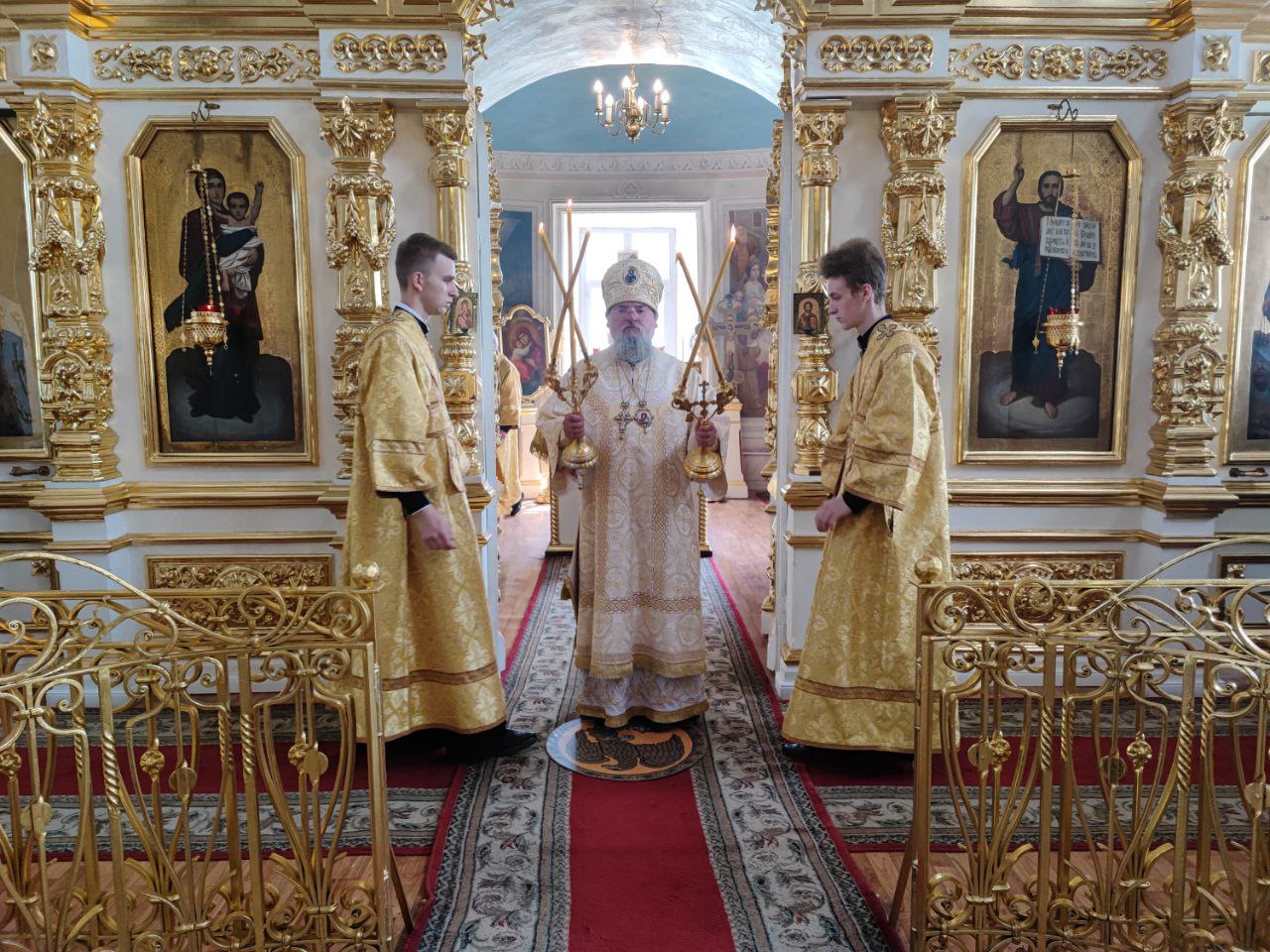Архипастырю сослужили: духовник гимназии, настоятель Благовещенского храма иерей Сергий Барыкин и диакон Евгений Васильев.
