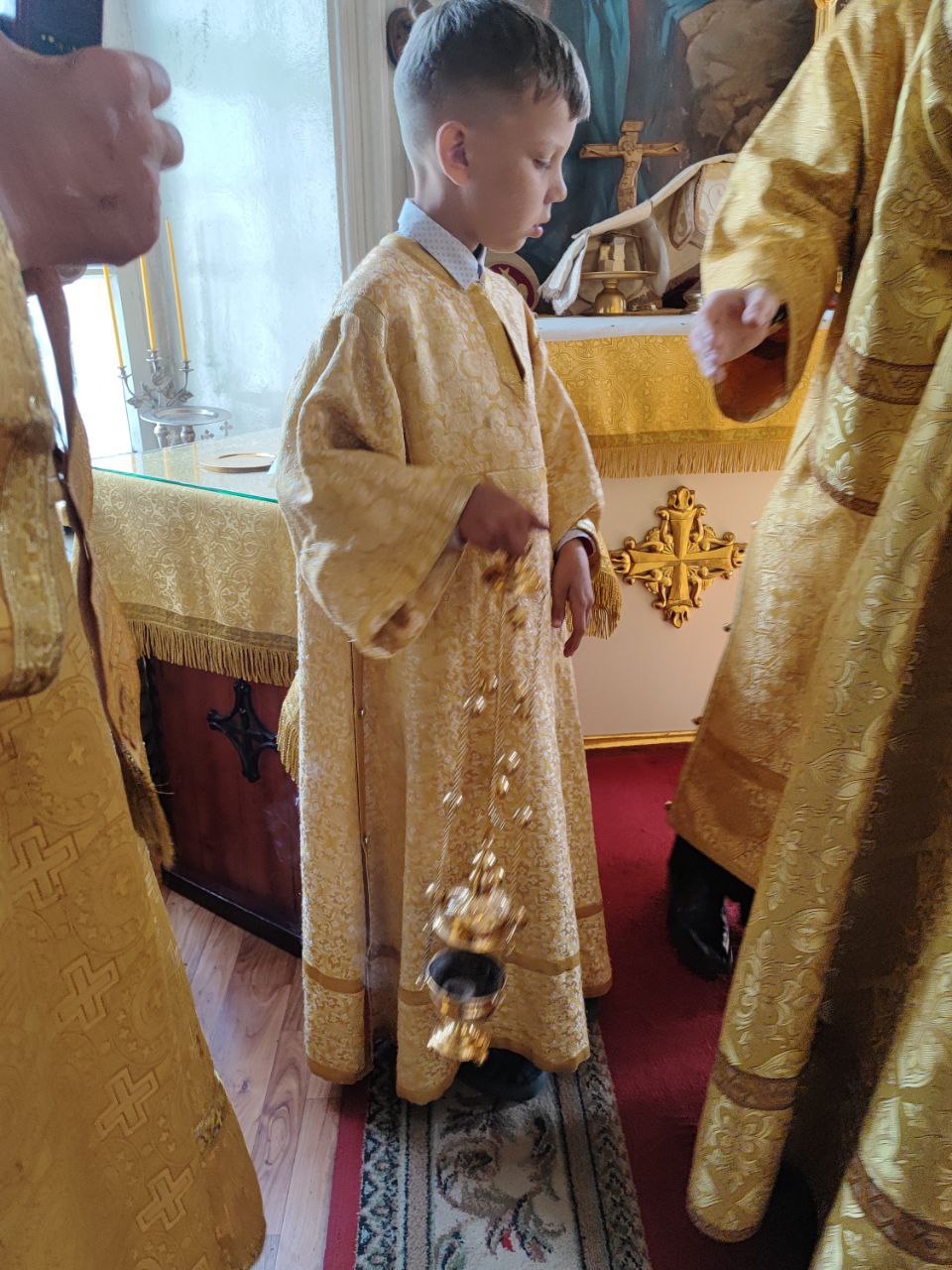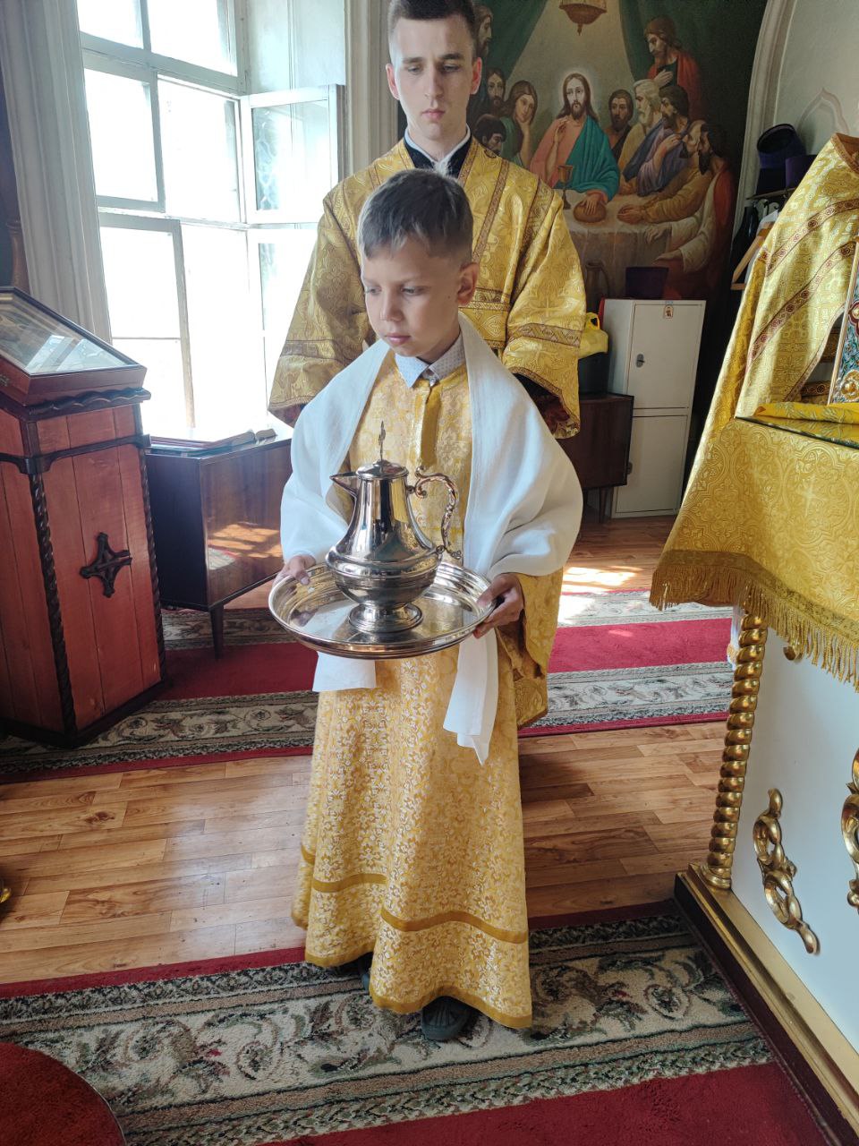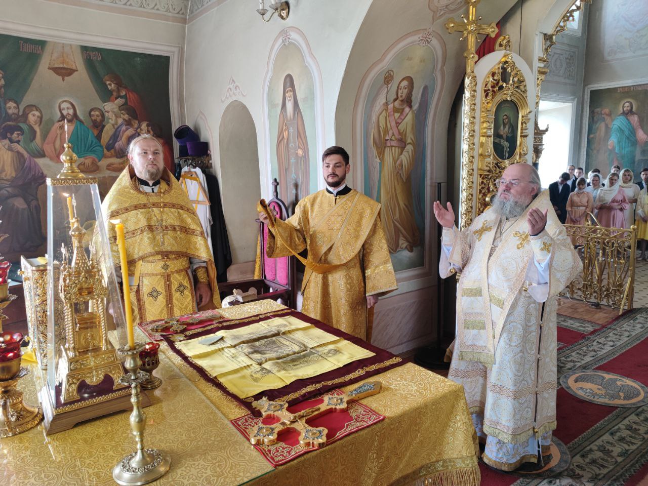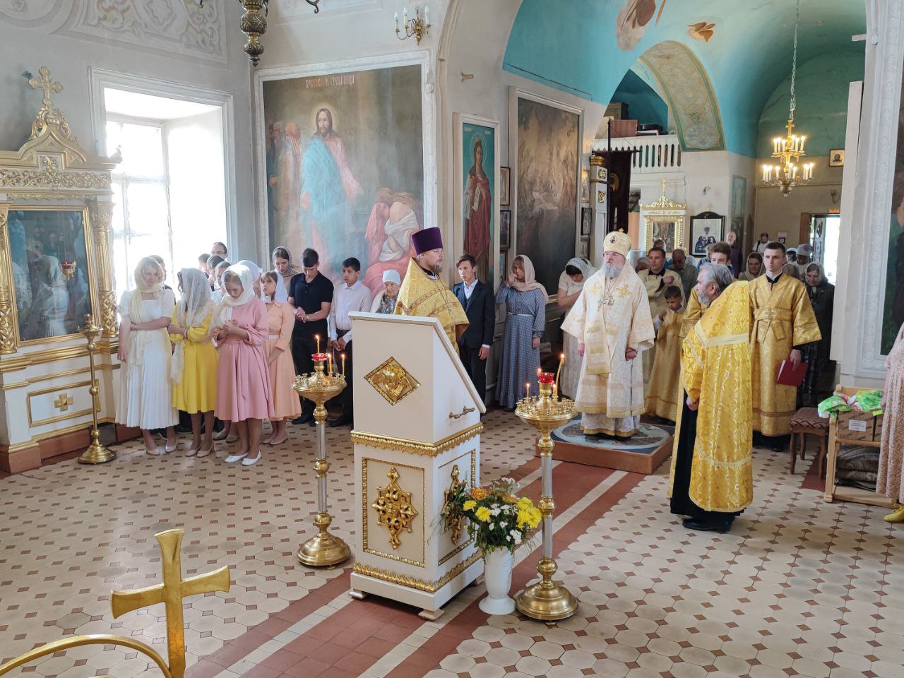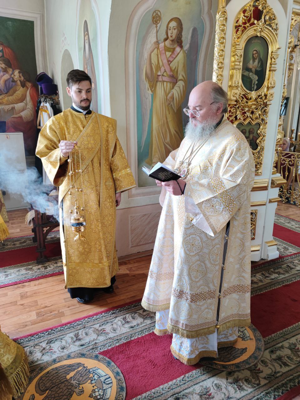 Архипастырю сослужили: духовник гимназии, настоятель Благовещенского храма иерей Сергий Барыкин и диакон Евгений Васильев.