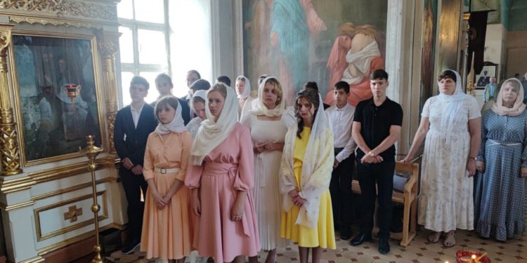 В этот день за богослужением молились завершившие свое обучение выпускники Козельской православной гимназии, их родители, директор – Татьяна Юрьевна Шмырева, начальствующие, педагоги и сотрудники школы.