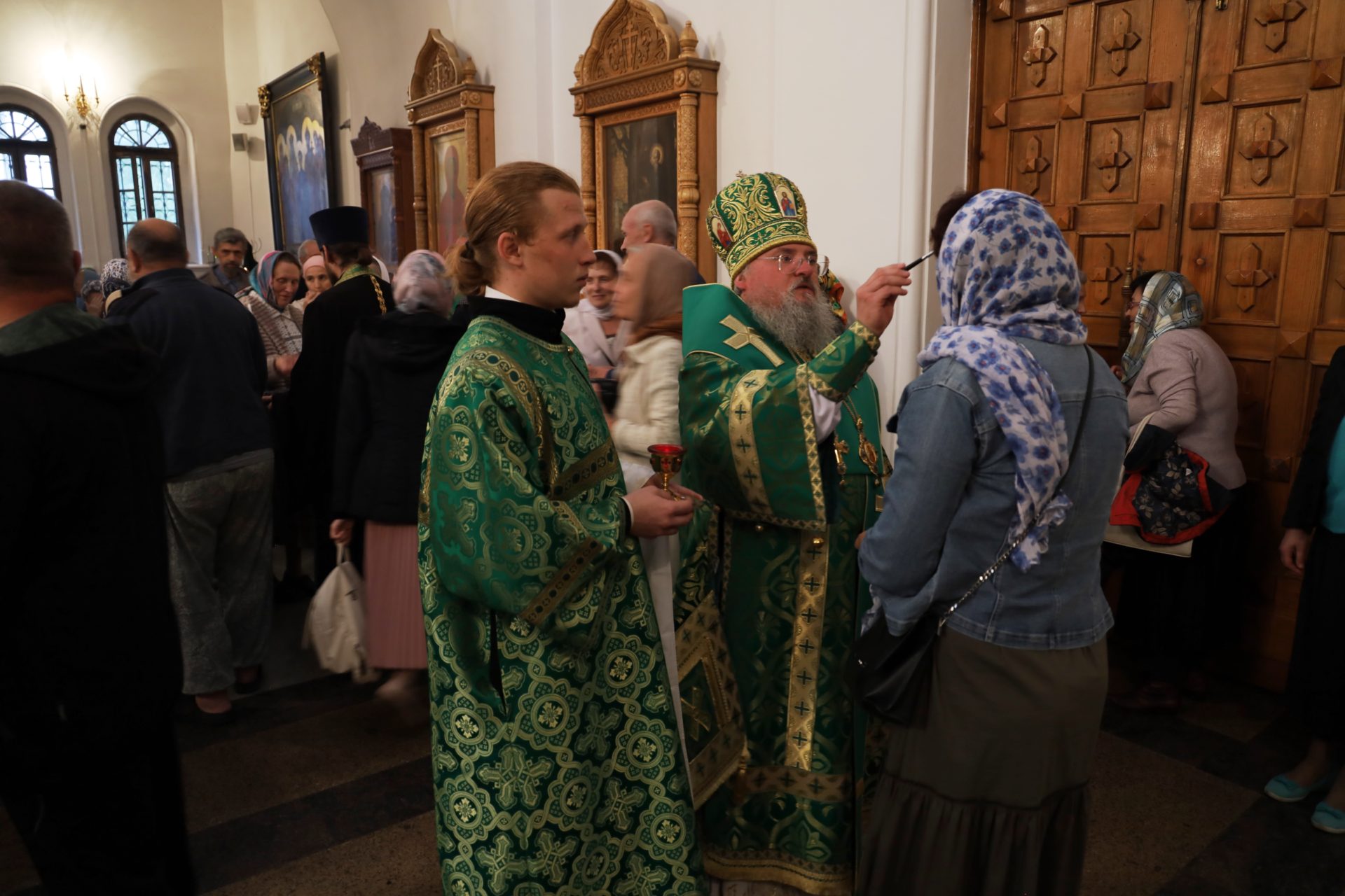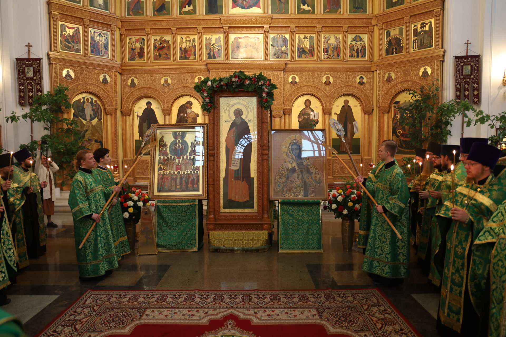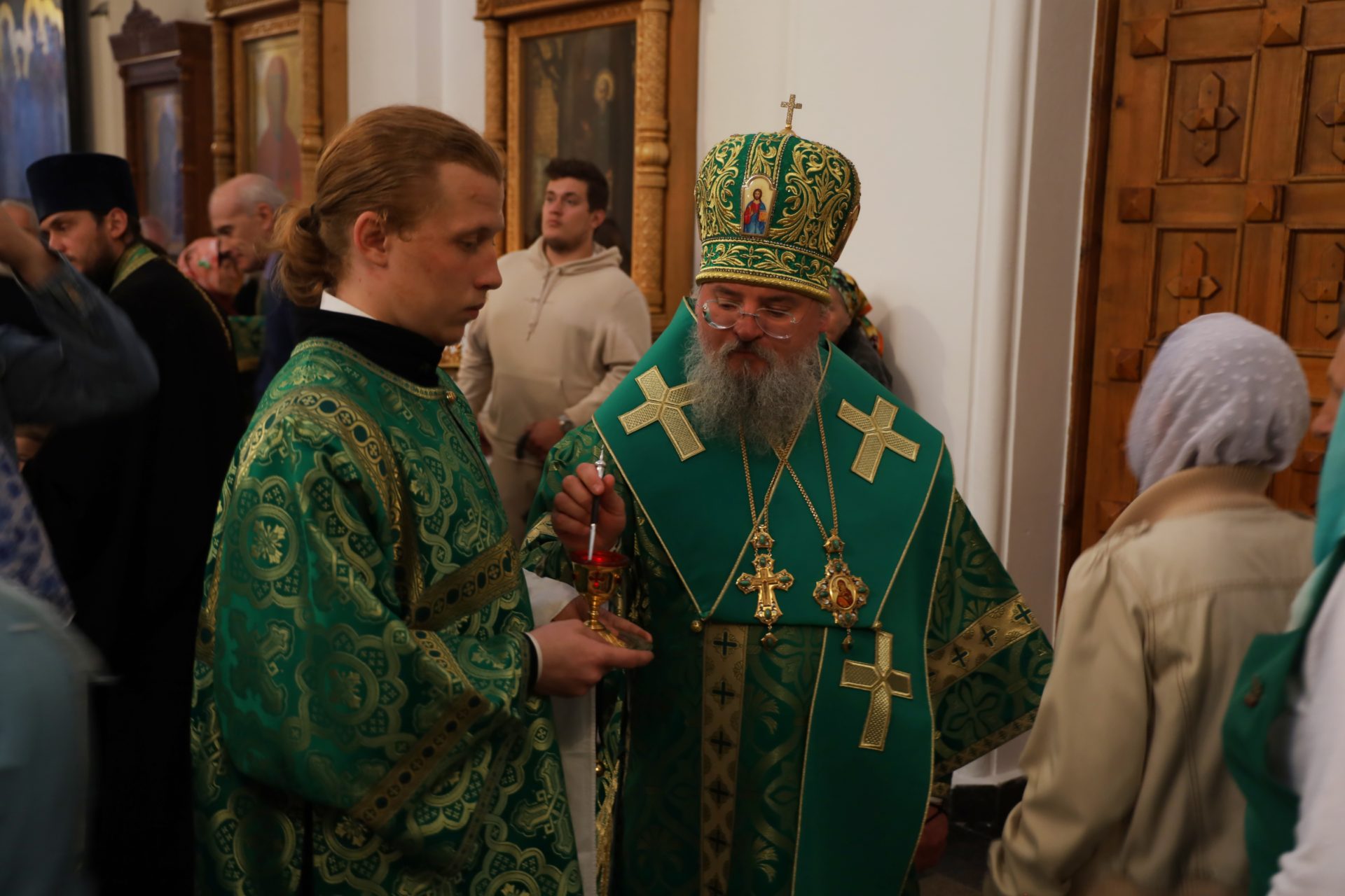 На вечерне владыка Никита возглавил литию и освятил хлеба, вино и елей. На утрене митрополит Климент совершил каждение храма при пении величания преподобному Тихону — Покровителю Калужской земли, чтение Евангелия. после чего архипастыри помазали верующих освященным елеем.