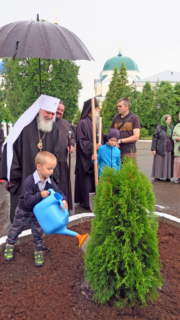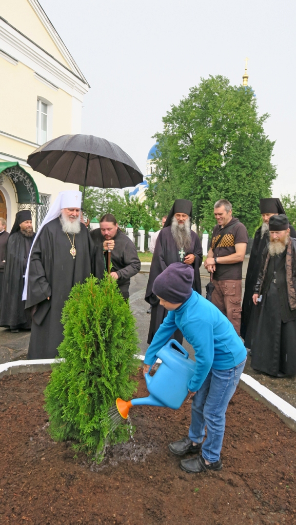 По окончании литургии митрополит Климент возглавил славление праздника. Затем владыка поздравил прихожан с торжественным днем, причастников — с принятием Святых Христовых Таин, обратился со словом назидания и преподал архипастырское благословение. Далее на территории монастыря прошла памятная посадка деревьев.