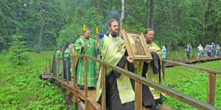 29 июня 2023 года в скиту в честь иконы Пресвятой Богородицы «Живописный источник» монастыря Успенская Свято-Тихонова пустынь архипастыри Калужской митрополии с собором духовенства торжественно отслужили водосвятный молебен.