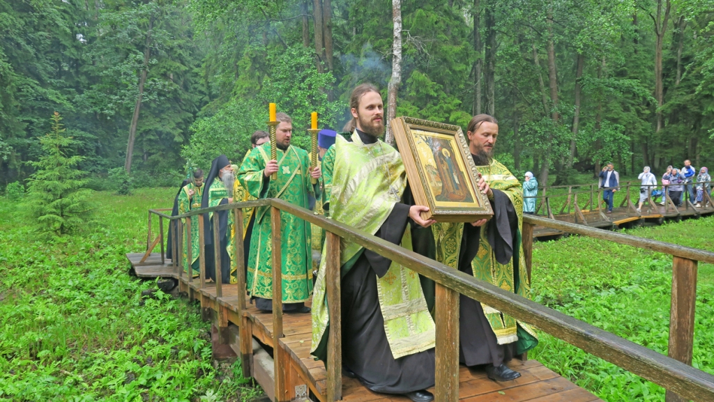 В этот торжественный день приехали сотни паломников со всех концов России, чтобы почтить память великого святого преподобного Тихона Калужского и помолиться у чудотворной Калужской иконы Пресвятой Богородицы и иконы святых новомучеников в земле Калужской просиявших, которые привезли в монастырь накануне вечером.