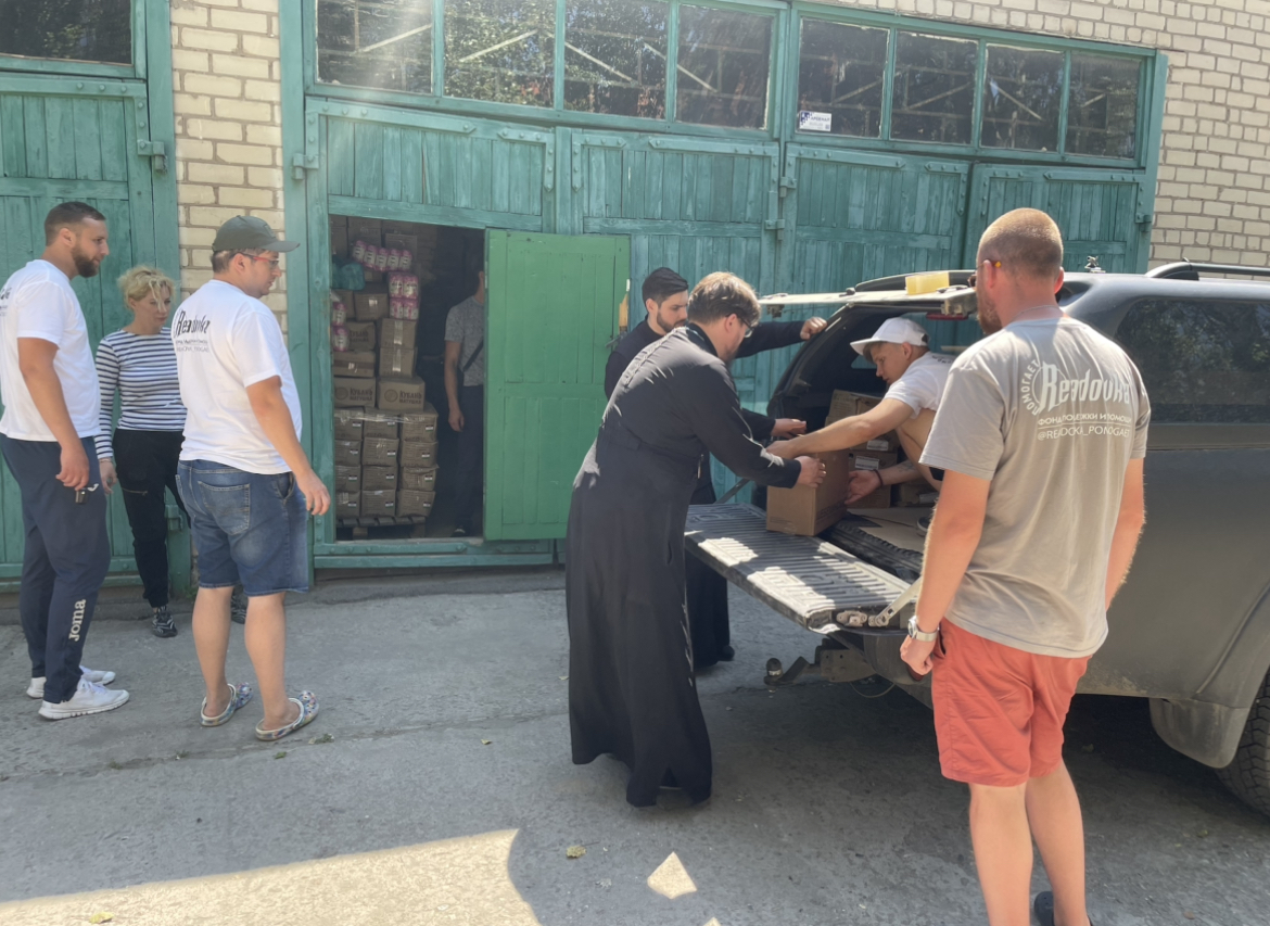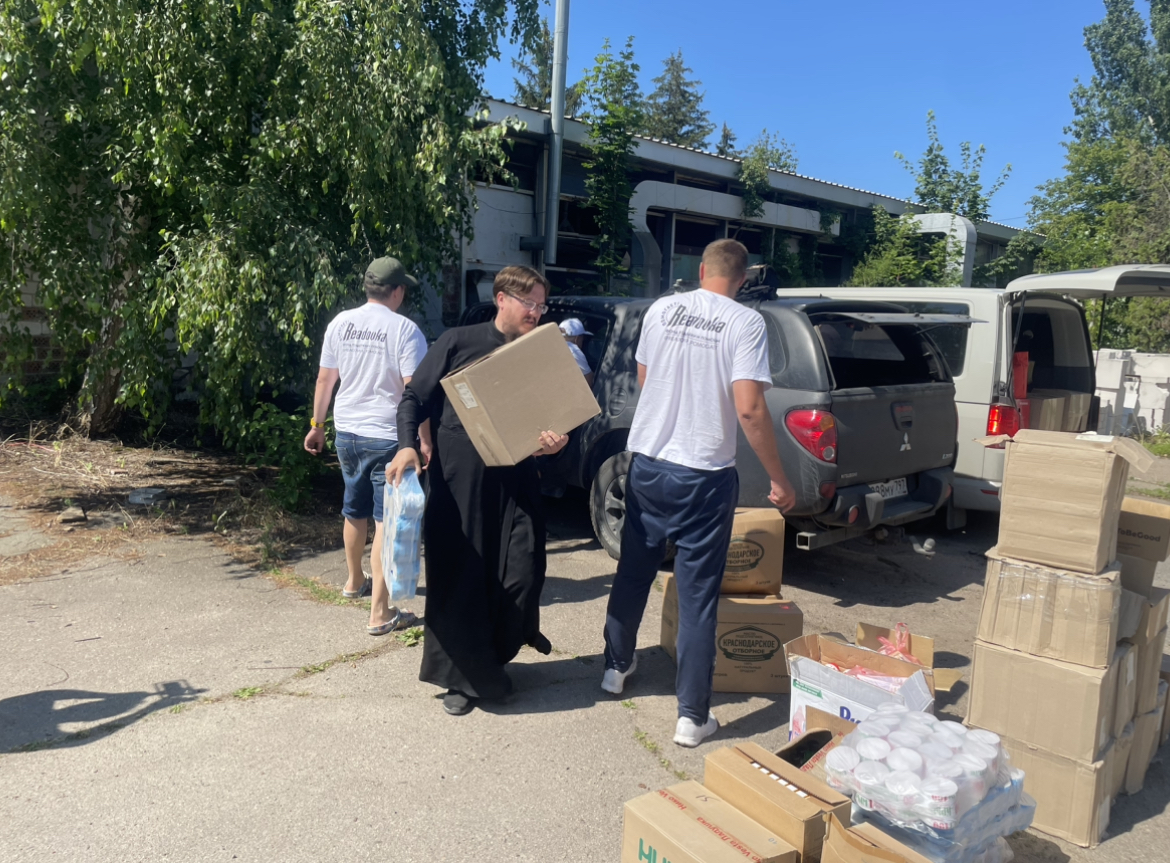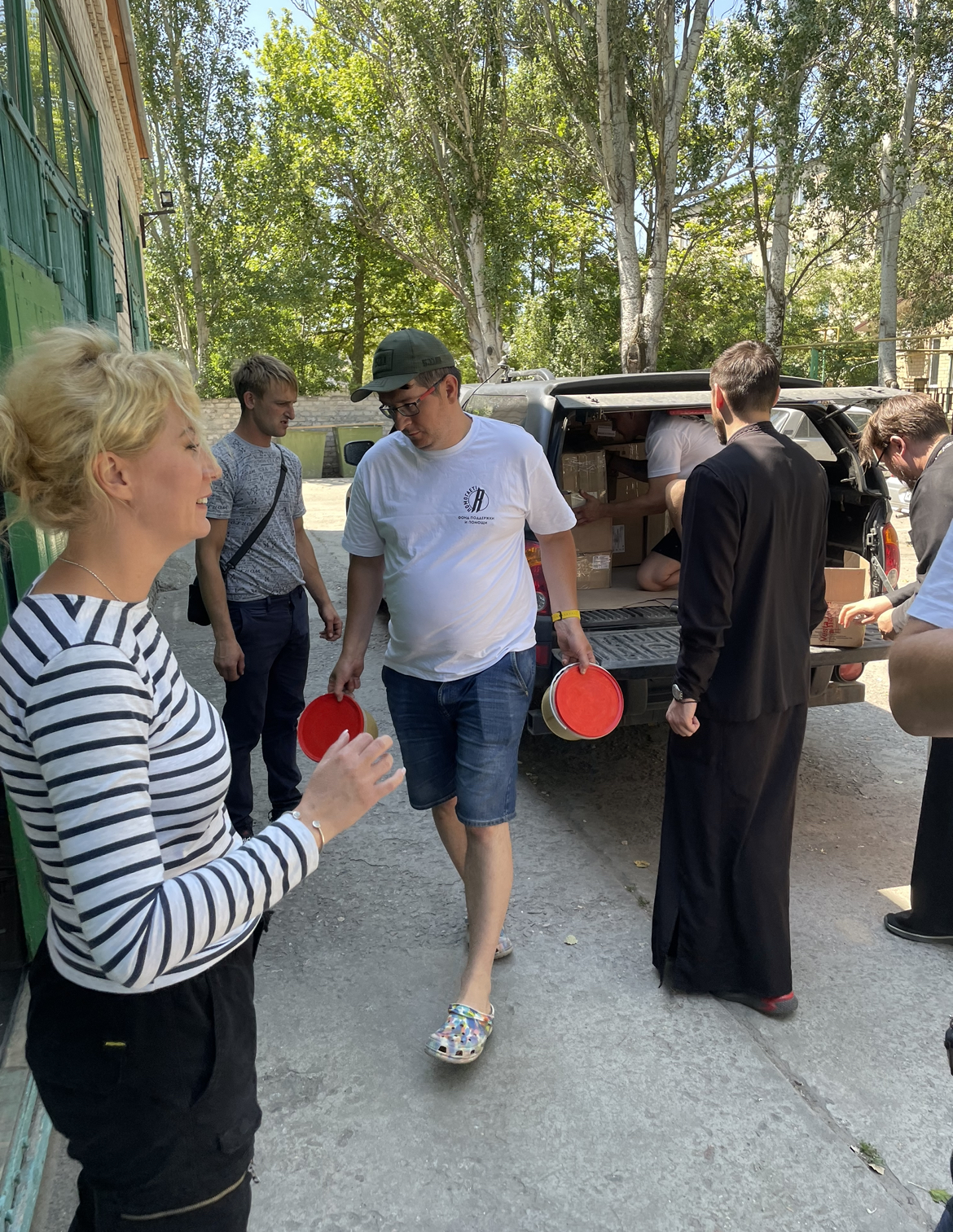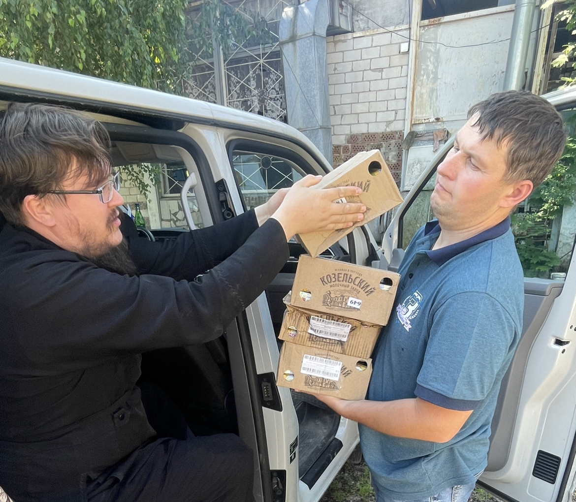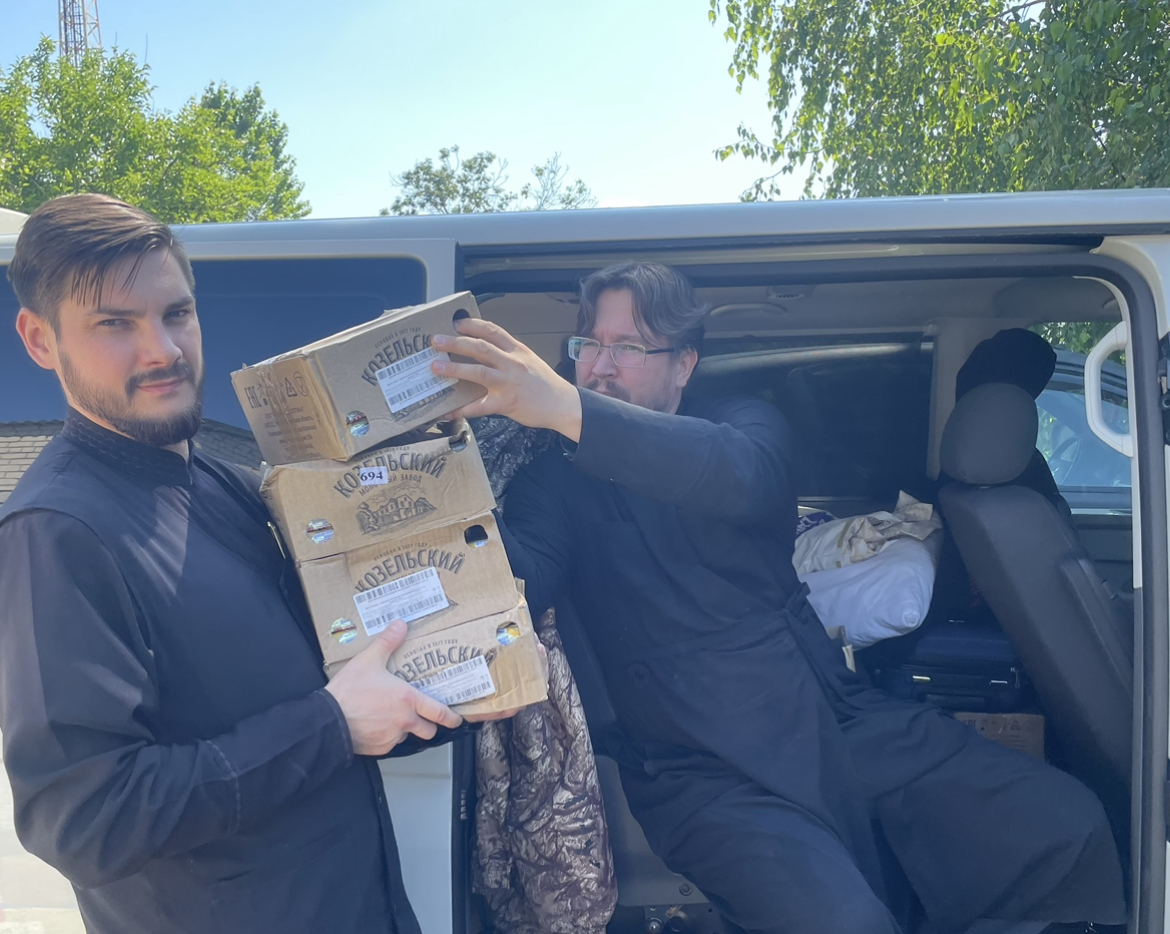 По благословению епископа Козельского и Людиновского Никиты в период с 28 июня по 1 июля 2023 года состоялась поездка с гуманитарной миссией в город Скадовск Херсонской области. Возглавил миссию руководитель Отдела по церковной благотворительности и социальному служению Козельской епархии — иерей Дионисий Куваев, настоятель храма Богоявления Господня города Козельска в сопровождении клирика храма Благовещения Пресвятой Богородицы города Козельска — диакона Евгения Васильева и волонтера Владимира Владимировича Ярового. Данная поездка была организована благодаря сотрудничеству Отдела по церковной благотворительности и социальному служению Козельского епархии с фондом поддержки и помощи «Ридовка помогает». Руководитель группы волонтеров фонда в городе Скадовск Дмитрий Александрович Смольянинов заранее описал обстановку и рассказал отцу Дионисию, какая категория лиц в чем конкретно нуждается. В результате обсуждения было решено доставить в город Скадовск продуктовую и вещевую помощь для людей, которые пострадали от наводнения вызванным разрушением Каховского водохранилища. В ходе поездки состоялось встреча иерея Дионисия Куваева с руководителем гуманитарного центра Скадовского района Херсонской области Касьян Валерией Анатольевной. Валерия занимается распределением полученной гуманитарной помощи среди пунктов временного размещения людей, которые пострадали в результате разрушения Херсонской гидроэлектростанции, а так же других социально незащищенных категорий граждан из числа местных жителей. На склад в данный гуманитарный центр была передана большая часть бытовой химии и продуктов питания (мясные/рыбные консервы длительного хранения, подсолнечное масло, мед, молочная продукция, предоставленная ООО «Агрофирма Оптина», постельное белье, спортивные костюмы, футболки, халаты и т.п.). В самом городе Скадовск расположена гуманитарная палатка фонда поддержки и помощи «Ридовка помогает». Для организации детского досуга на базе данной палатки был передан спортивный инвентарь: мобильные баскетбольные кольца, баскетбольные и футбольные мячи, скакалки, наборы для игры в бадминтон, настольный футбол, шахматы, шашки и т.п. В сборе и установке инвентаря активное участие принимали местные дети и подростки. В ходе данного мероприятия удалась не только пообщаться с молодежью, но так же поиграть с ними в спортивные игры.