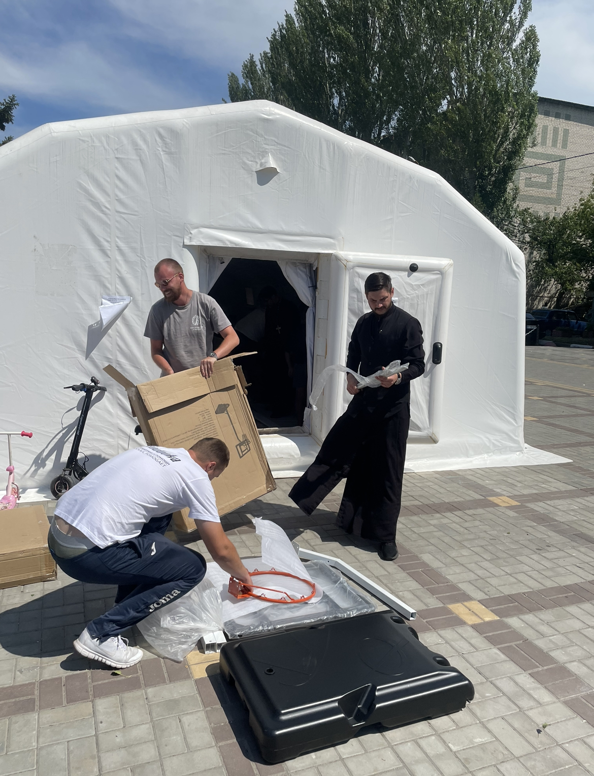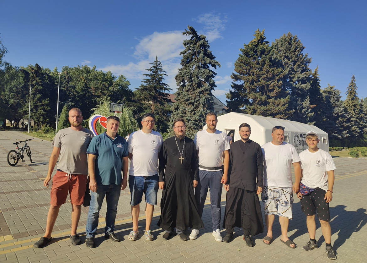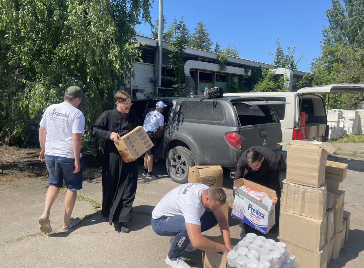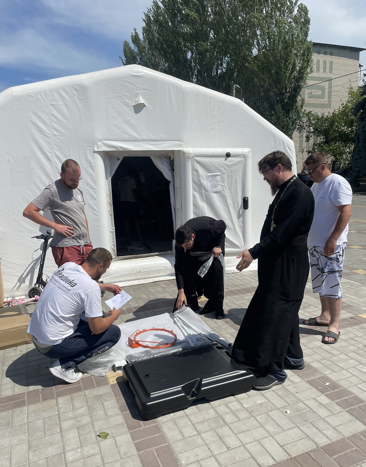 По благословению епископа Козельского и Людиновского Никиты в период с 28 июня по 1 июля 2023 года состоялась поездка с гуманитарной миссией в город Скадовск Херсонской области. Возглавил миссию руководитель Отдела по церковной благотворительности и социальному служению Козельской епархии — иерей Дионисий Куваев, настоятель храма Богоявления Господня города Козельска в сопровождении клирика храма Благовещения Пресвятой Богородицы города Козельска — диакона Евгения Васильева и волонтера Владимира Владимировича Ярового. Данная поездка была организована благодаря сотрудничеству Отдела по церковной благотворительности и социальному служению Козельского епархии с фондом поддержки и помощи «Ридовка помогает». Руководитель группы волонтеров фонда в городе Скадовск Дмитрий Александрович Смольянинов заранее описал обстановку и рассказал отцу Дионисию, какая категория лиц в чем конкретно нуждается. В результате обсуждения было решено доставить в город Скадовск продуктовую и вещевую помощь для людей, которые пострадали от наводнения вызванным разрушением Каховского водохранилища. В ходе поездки состоялось встреча иерея Дионисия Куваева с руководителем гуманитарного центра Скадовского района Херсонской области Касьян Валерией Анатольевной. Валерия занимается распределением полученной гуманитарной помощи среди пунктов временного размещения людей, которые пострадали в результате разрушения Херсонской гидроэлектростанции, а так же других социально незащищенных категорий граждан из числа местных жителей. На склад в данный гуманитарный центр была передана большая часть бытовой химии и продуктов питания (мясные/рыбные консервы длительного хранения, подсолнечное масло, мед, молочная продукция, предоставленная ООО «Агрофирма Оптина», постельное белье, спортивные костюмы, футболки, халаты и т.п.). В самом городе Скадовск расположена гуманитарная палатка фонда поддержки и помощи «Ридовка помогает». Для организации детского досуга на базе данной палатки был передан спортивный инвентарь: мобильные баскетбольные кольца, баскетбольные и футбольные мячи, скакалки, наборы для игры в бадминтон, настольный футбол, шахматы, шашки и т.п. В сборе и установке инвентаря активное участие принимали местные дети и подростки. В ходе данного мероприятия удалась не только пообщаться с молодежью, но так же поиграть с ними в спортивные игры.