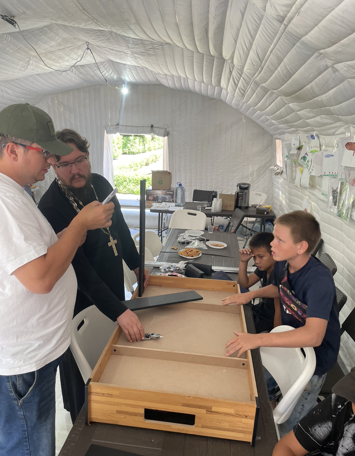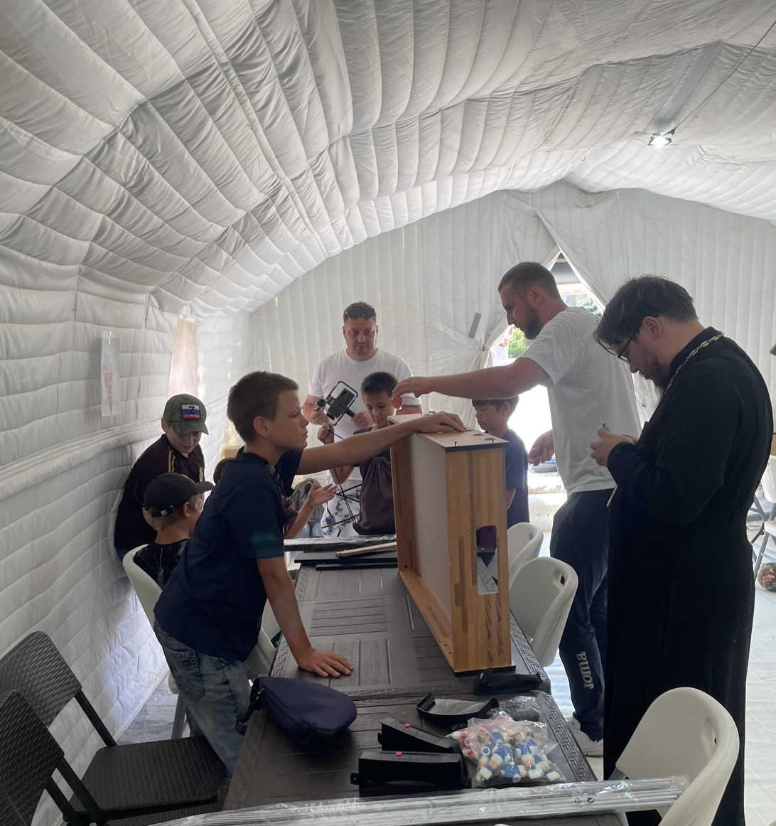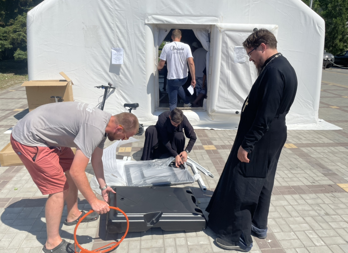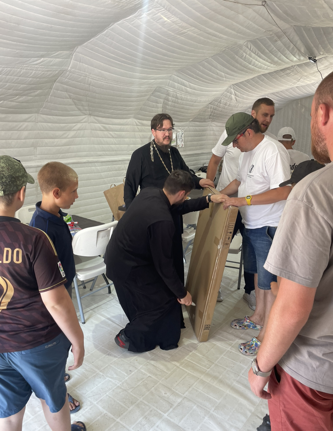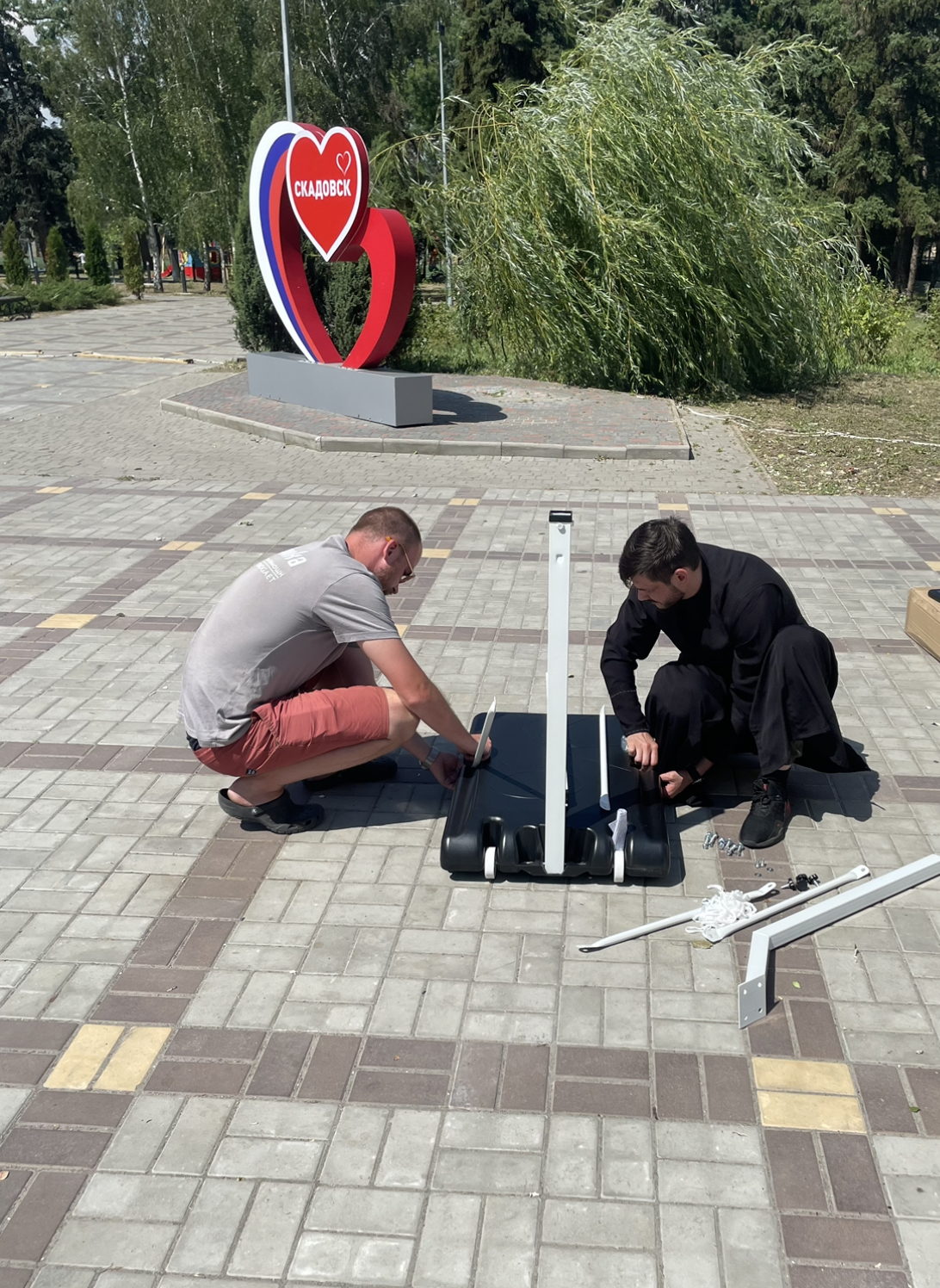 По благословению епископа Козельского и Людиновского Никиты в период с 28 июня по 1 июля 2023 года состоялась поездка с гуманитарной миссией в город Скадовск Херсонской области. Возглавил миссию руководитель Отдела по церковной благотворительности и социальному служению Козельской епархии — иерей Дионисий Куваев, настоятель храма Богоявления Господня города Козельска в сопровождении клирика храма Благовещения Пресвятой Богородицы города Козельска — диакона Евгения Васильева и волонтера Владимира Владимировича Ярового. Данная поездка была организована благодаря сотрудничеству Отдела по церковной благотворительности и социальному служению Козельского епархии с фондом поддержки и помощи «Ридовка помогает». Руководитель группы волонтеров фонда в городе Скадовск Дмитрий Александрович Смольянинов заранее описал обстановку и рассказал отцу Дионисию, какая категория лиц в чем конкретно нуждается. В результате обсуждения было решено доставить в город Скадовск продуктовую и вещевую помощь для людей, которые пострадали от наводнения вызванным разрушением Каховского водохранилища. В ходе поездки состоялось встреча иерея Дионисия Куваева с руководителем гуманитарного центра Скадовского района Херсонской области Касьян Валерией Анатольевной. Валерия занимается распределением полученной гуманитарной помощи среди пунктов временного размещения людей, которые пострадали в результате разрушения Херсонской гидроэлектростанции, а так же других социально незащищенных категорий граждан из числа местных жителей. На склад в данный гуманитарный центр была передана большая часть бытовой химии и продуктов питания (мясные/рыбные консервы длительного хранения, подсолнечное масло, мед, молочная продукция, предоставленная ООО «Агрофирма Оптина», постельное белье, спортивные костюмы, футболки, халаты и т.п.). В самом городе Скадовск расположена гуманитарная палатка фонда поддержки и помощи «Ридовка помогает». Для организации детского досуга на базе данной палатки был передан спортивный инвентарь: мобильные баскетбольные кольца, баскетбольные и футбольные мячи, скакалки, наборы для игры в бадминтон, настольный футбол, шахматы, шашки и т.п. В сборе и установке инвентаря активное участие принимали местные дети и подростки. В ходе данного мероприятия удалась не только пообщаться с молодежью, но так же поиграть с ними в спортивные игры.