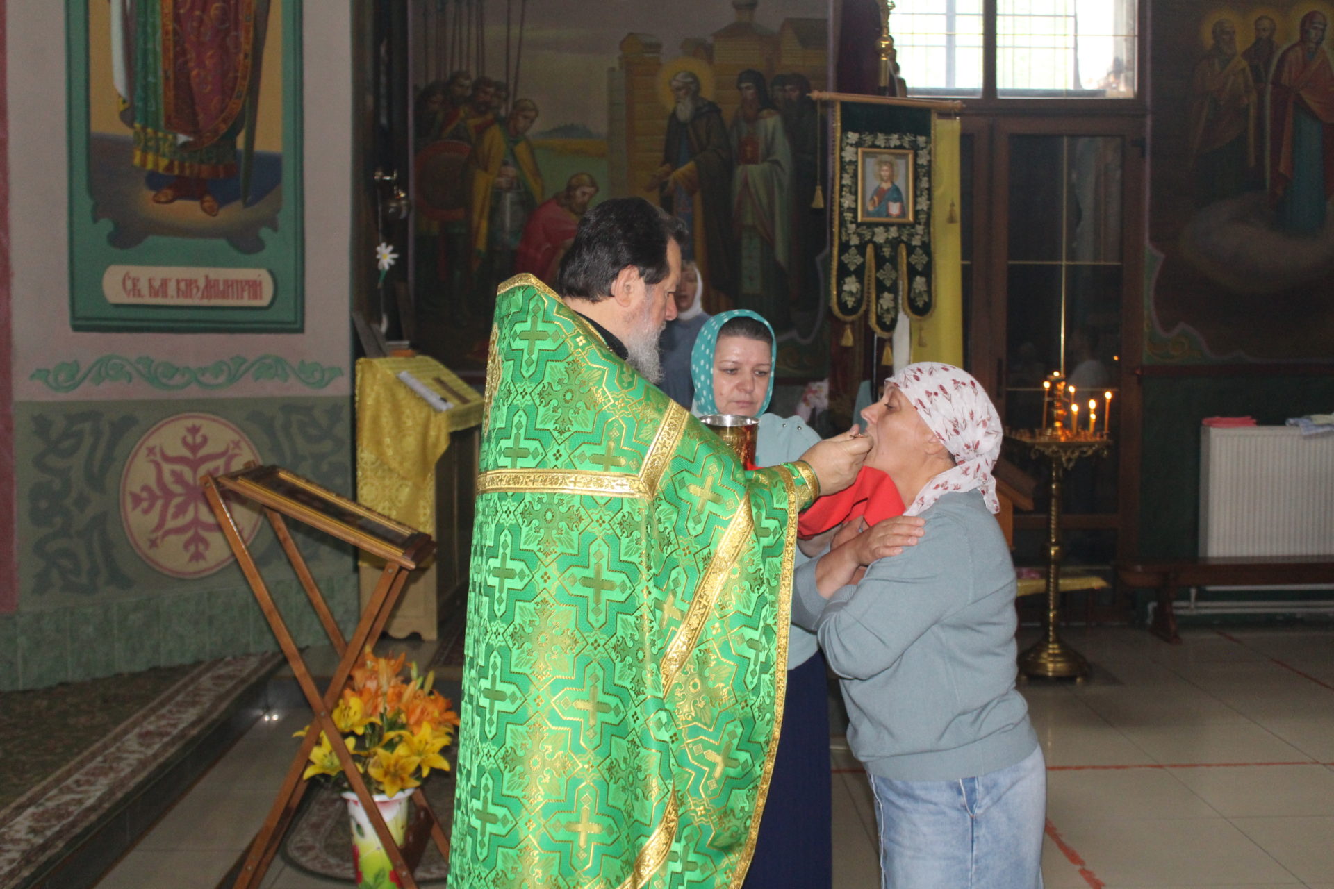За Божественной литургией батюшка обратился к прихожанам с проповедью. «В этот день в Отечестве нашем празднуется замечательный праздник – Всероссийский День семьи, любви и верности, – так он называется. Очень отрадно, что подобные праздники, посвященные семье, этой величайшей ценности, этому величайшему проявлению любви, утверждаются в нашей стране. И еще отраднее то, что они утверждаются на основе воспоминания святых. В этот день празднуют память святых Петра и Февронии, в жизни которых было все: и сильная любовь, и чистота взаимных отношений, и судьбоносная помощь жены мужу, и взаимные испытания, и даже гонения — все то, о чем говорит сегодняшнее Евангелие в заповедях блаженства. Они умерли в один день и в один час, и жизнью, и смертью являя нам пример любви. Именно их супружеский союз является образцом христианского брака и служит для всех примером гармоничных отношений в семье. Святые Петр и Феврония по праву считают покровителями семейной жизни.»