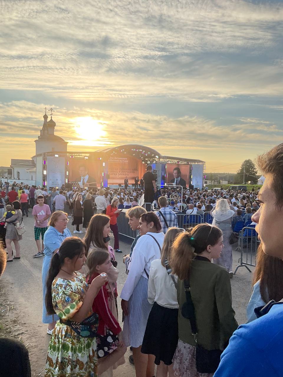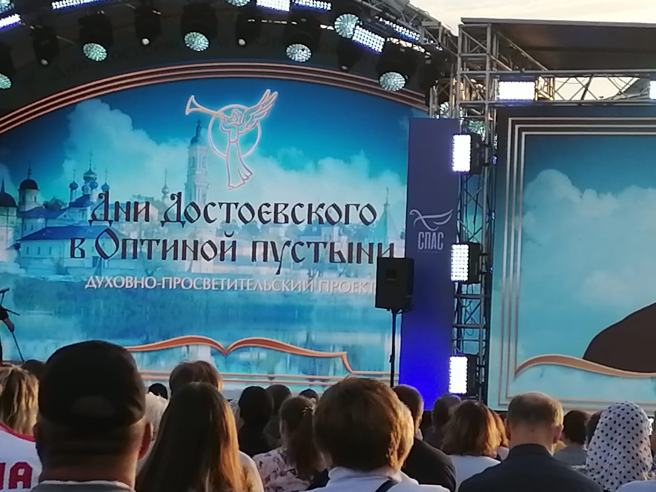 Дети из Епархиального Социального центра помощи семье и детям «Рождественский» побывали в селе Губино, в рамках мероприятия «Дни Достоевского в Оптиной пустыни». Дети слушали отрывки из произведений Ф.М. Достоевского в исполнении знаменитых артистов, слушали духовные, патриотические песни. Сам концерт проходил под открытым небом, на фоне голубого неба, изумительно-красивого заката. Многие участники мероприятий, проходивших в эти дни, отдыхали на душистом сене. Собравшись в одном месте, слушая музыку и выступления со сцены известных людей, священников и артистов, тысячи зрителей и наши дети в том числе, чувствовали единение. Около полуночи вернулись уставшие, но счастливые от сопричастности в большому, важному событию, дети в «Рождественский», а утром все делились впечатлениями.