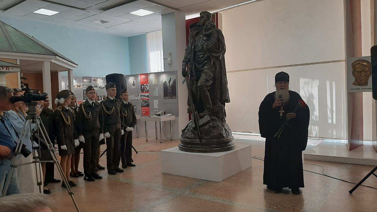 13 июля 2023 года в день собора славных и всехвальных 12 апостолов, после богослужения, благочинный Людиновского округа Козельской епархии настоятель Казанского собора города Людиново протоиерей Алексий Жиганов принял участие в торжественном открытии копии памятника «Воину – освободителю» скульптора  Евгения Вучетича, который установлен на втором этаже Городского музея Людинова.