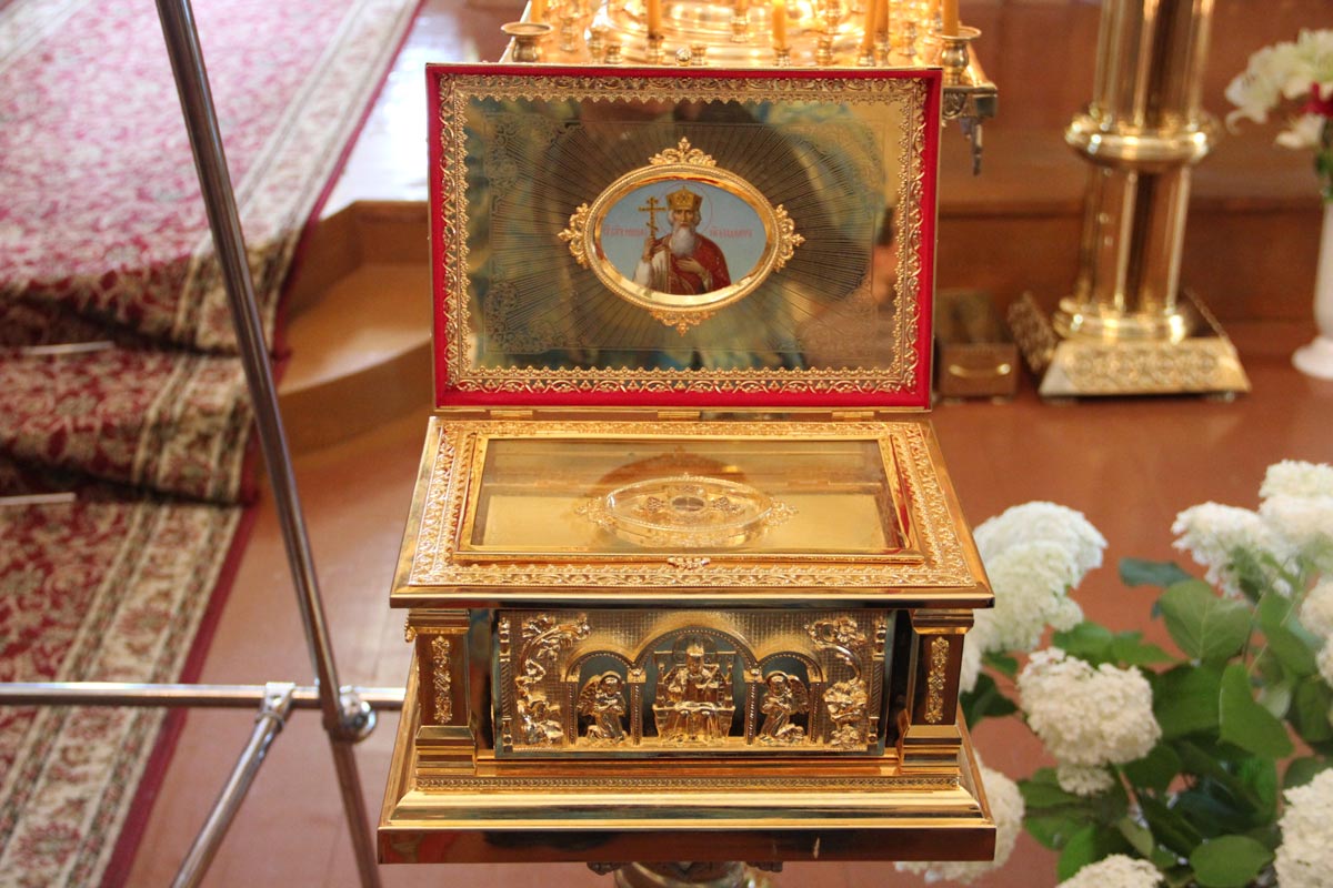 Святыни, сопровождаемые большим стечением богомольцев, в 10 часов утра прибыли в Свято-Успенский собор у ворот которого крестный ход встречал управляющий Козельской епархией епископ Козельский и Людиновский Никита.