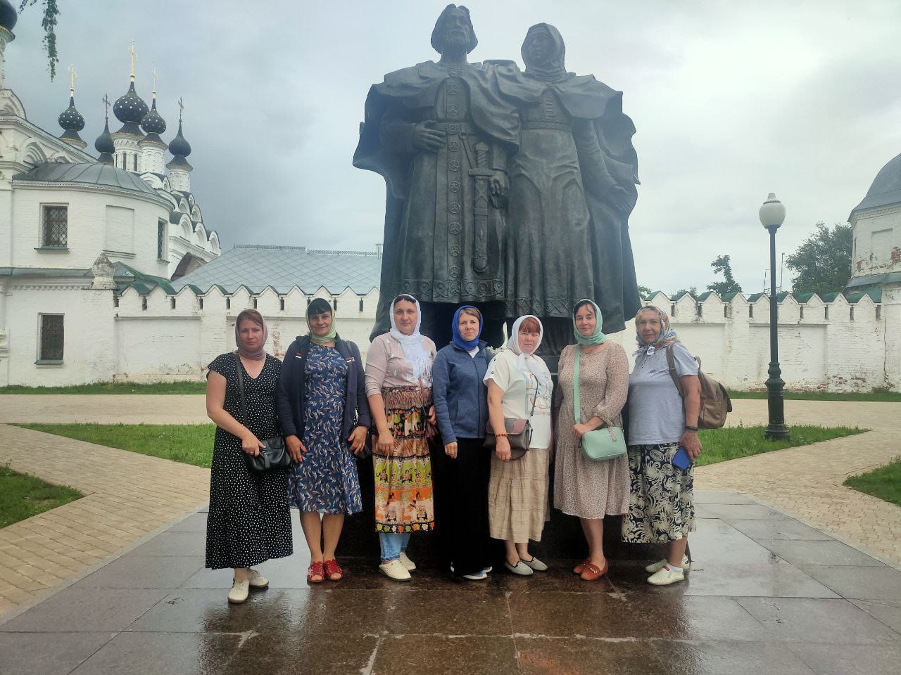 Путешественницы решили побывать в Свято-Троицком женском монастыре, где находятся мощи благоверных святых Петра и Февронии. Обратив свои молитвенные прошения к святым покровителям семьи и брака, они приложились к мощам святых. Вслед за этим было посещение Свято-Благовещенского мужского монастыря, в котором хранится рака с мощами святого благоверного князя Константина и чад его Михаила и Федора.