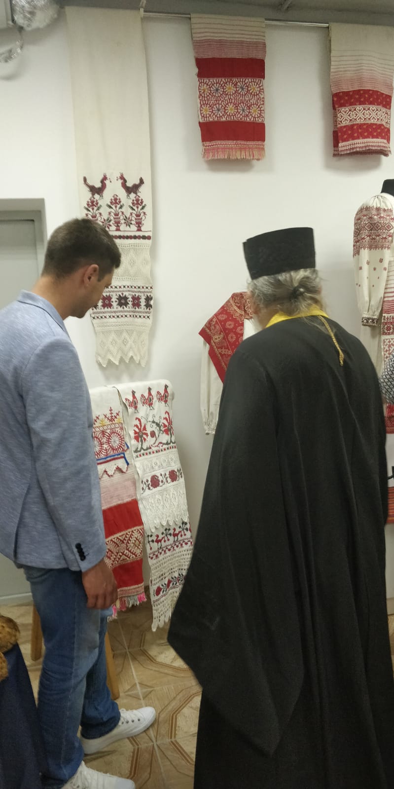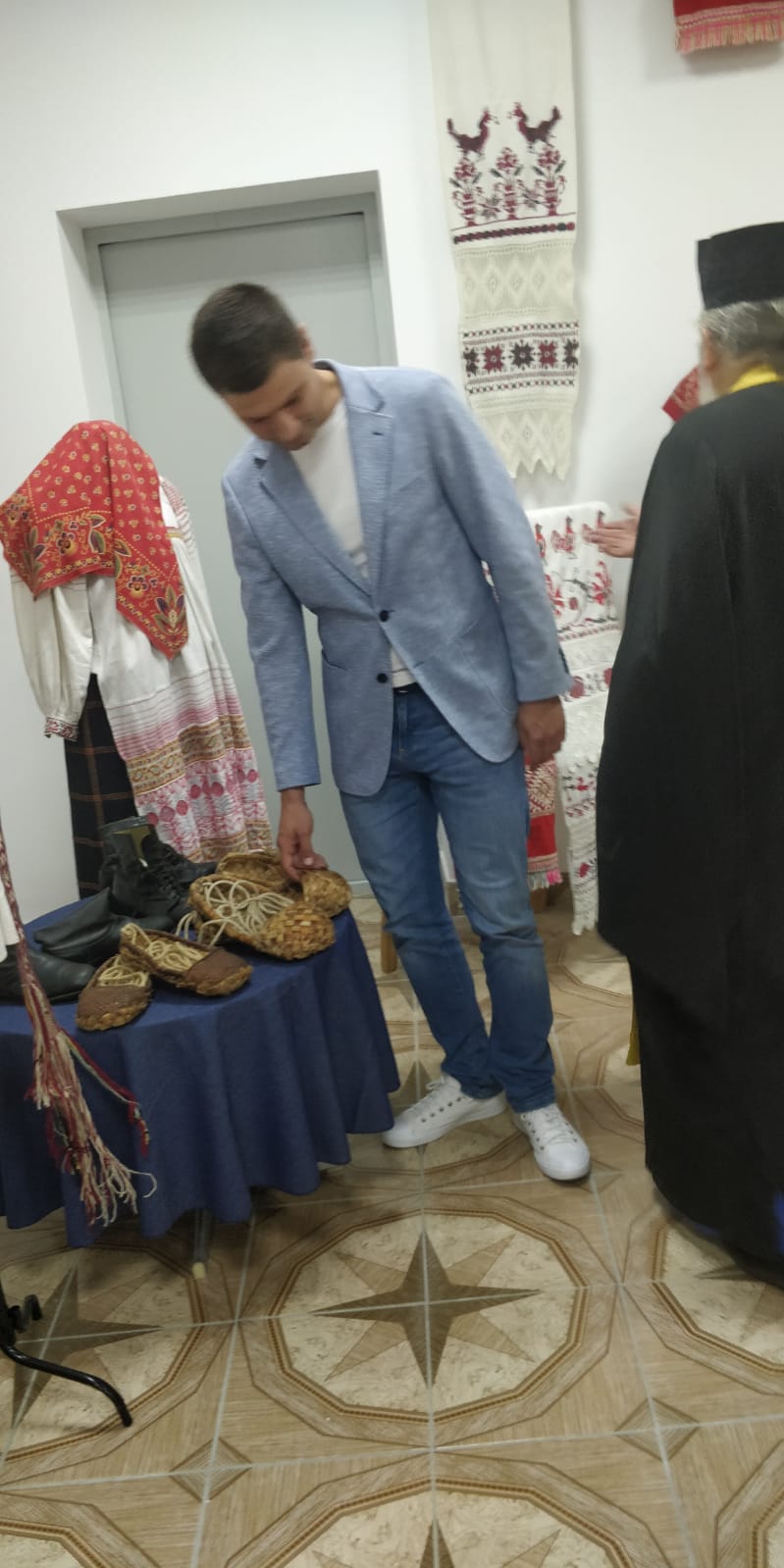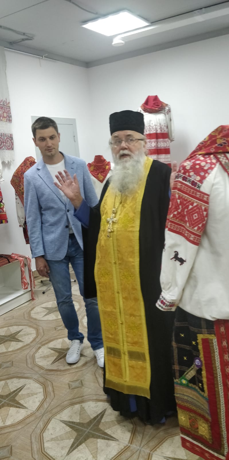 После деловой беседы отец Алексий пригласил Стефана Владимировича с главами посетить Духовно – просветительский цент «Светоч». Глава с интересом осмотрел учебные помещения Воскресной школы «Светоч» при ДПЦ, побывал в большом трапезном зале, а также в нижнем этаже центра. Здесь в одном из помещений сотрудниками церковно – краеведческого музея храма оформлена экспозиция старинных русских костюмов и предметов Калужской губернии. Гости с удовольствием погрузились в мир старины, слушая экскурсовода. Отец Алексий для гостей акапельно исполнил старинную русскую народную песню.