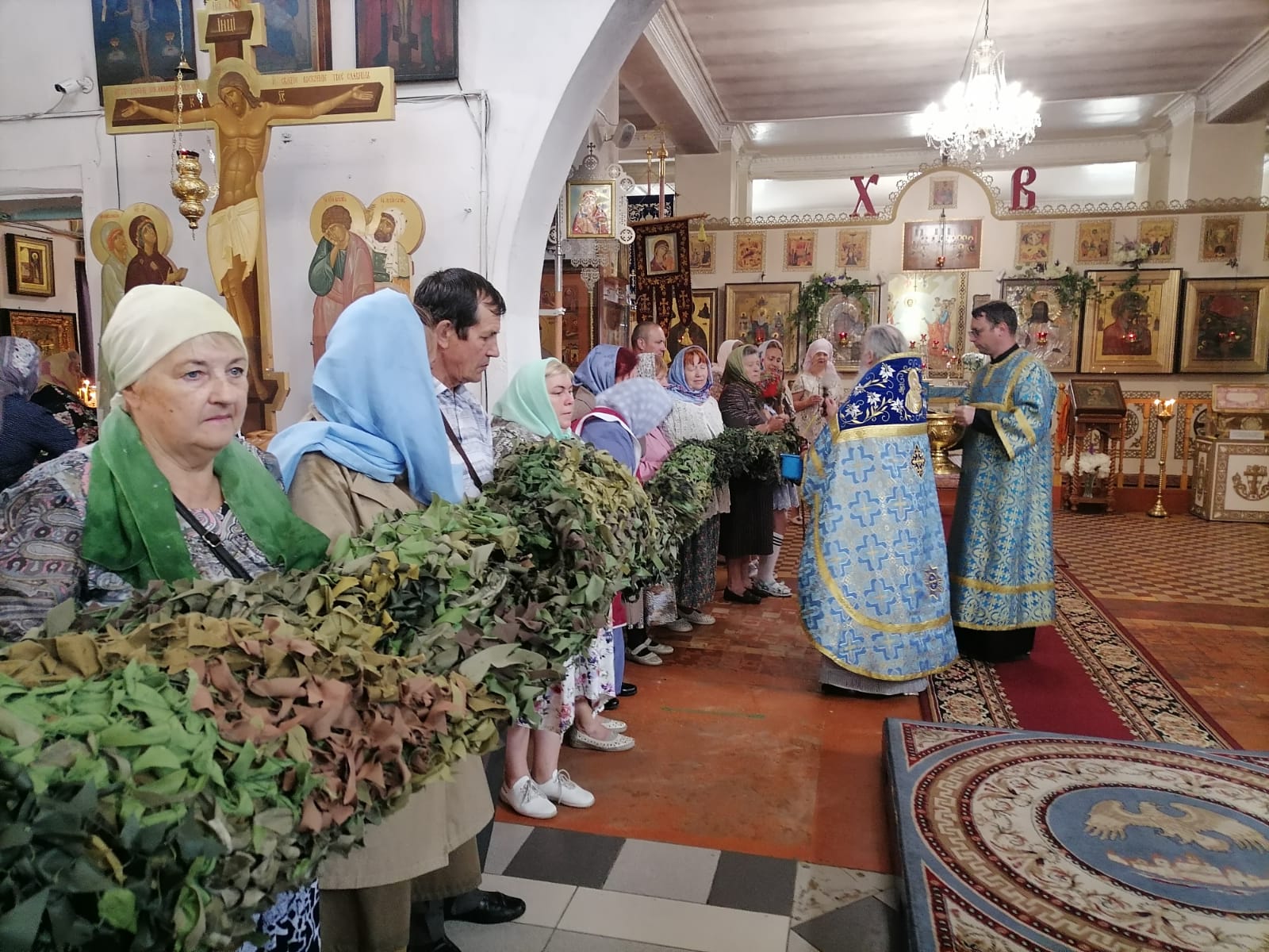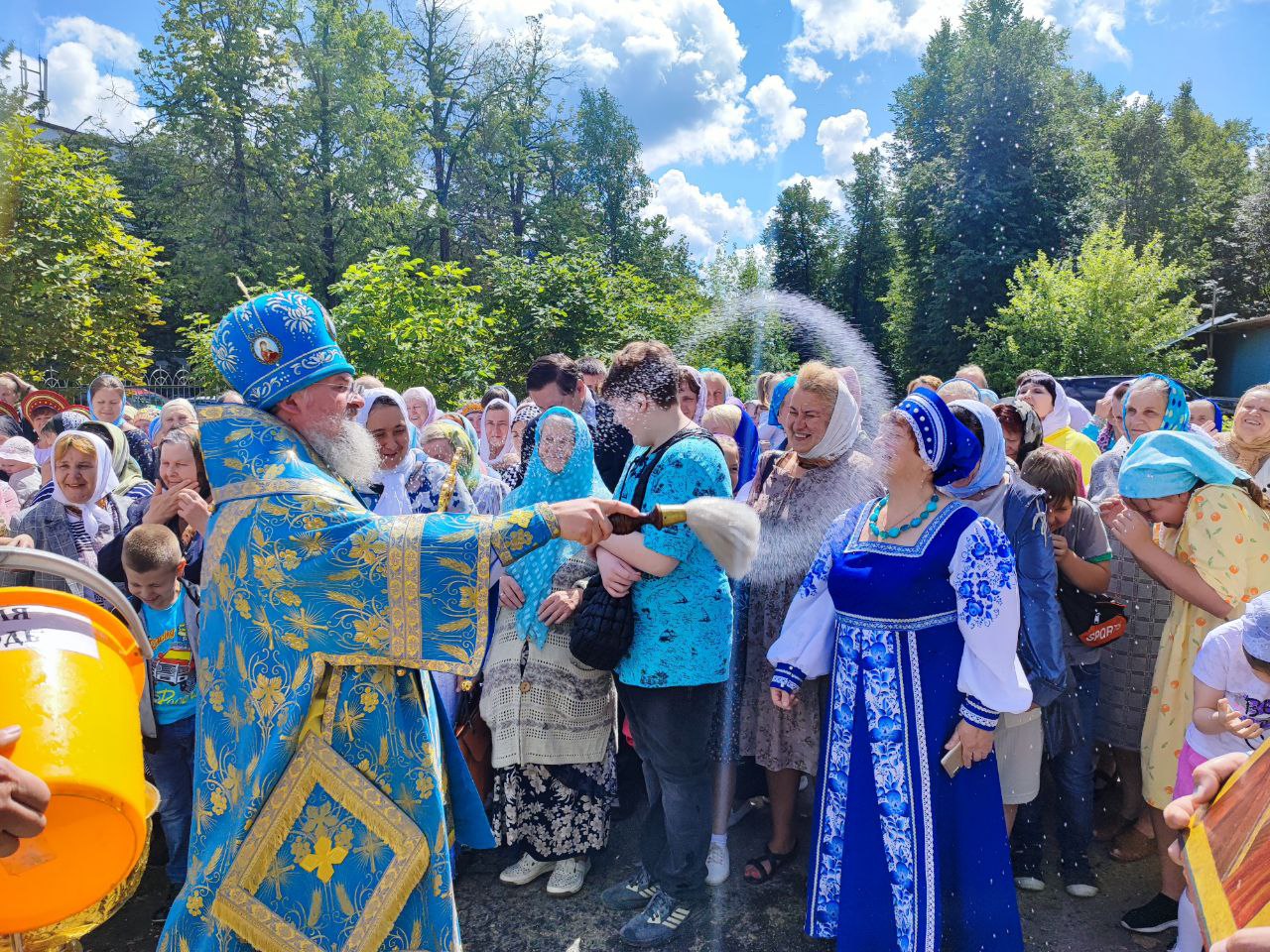 В сам праздник, 21 июля 2023 года, был отслужен водосвятный молебен с акафистом Божией Матери «Казанской». При окроплении святой водой прихожан, по традиции, отец Алексий освятил маскировочные сети, изготовленные группой добровольцев при Казанском соборе.