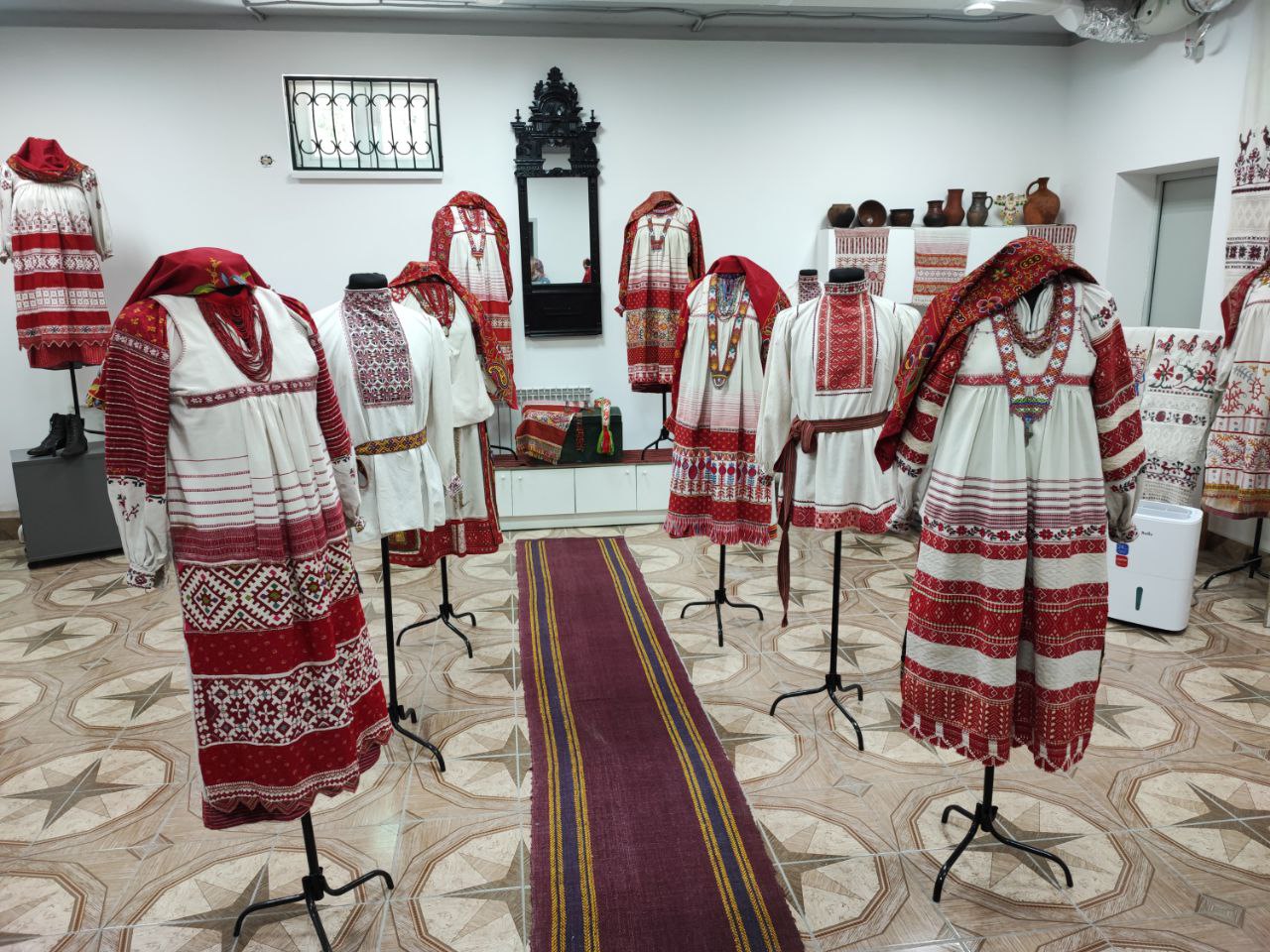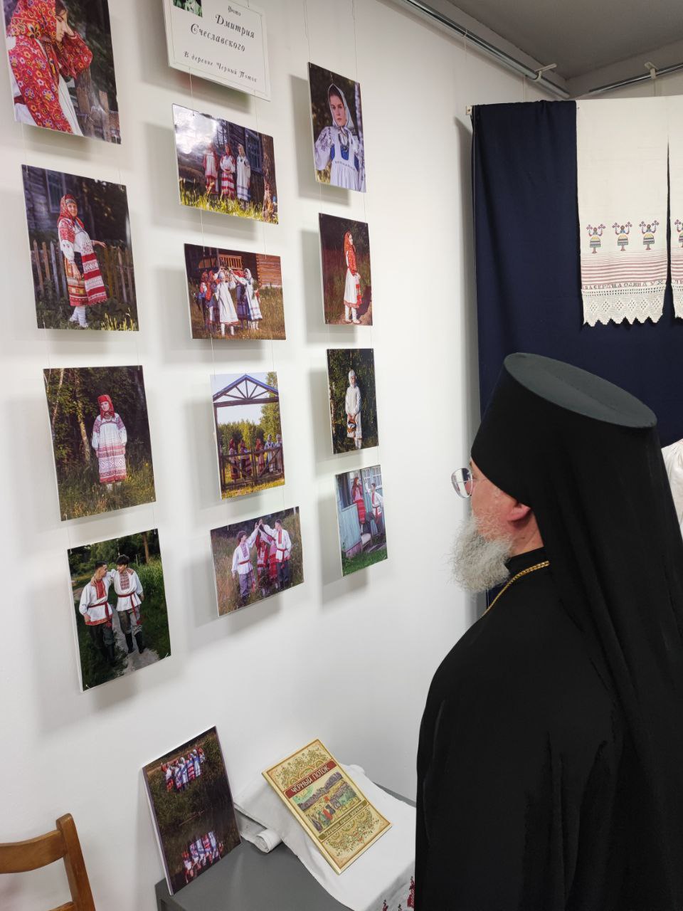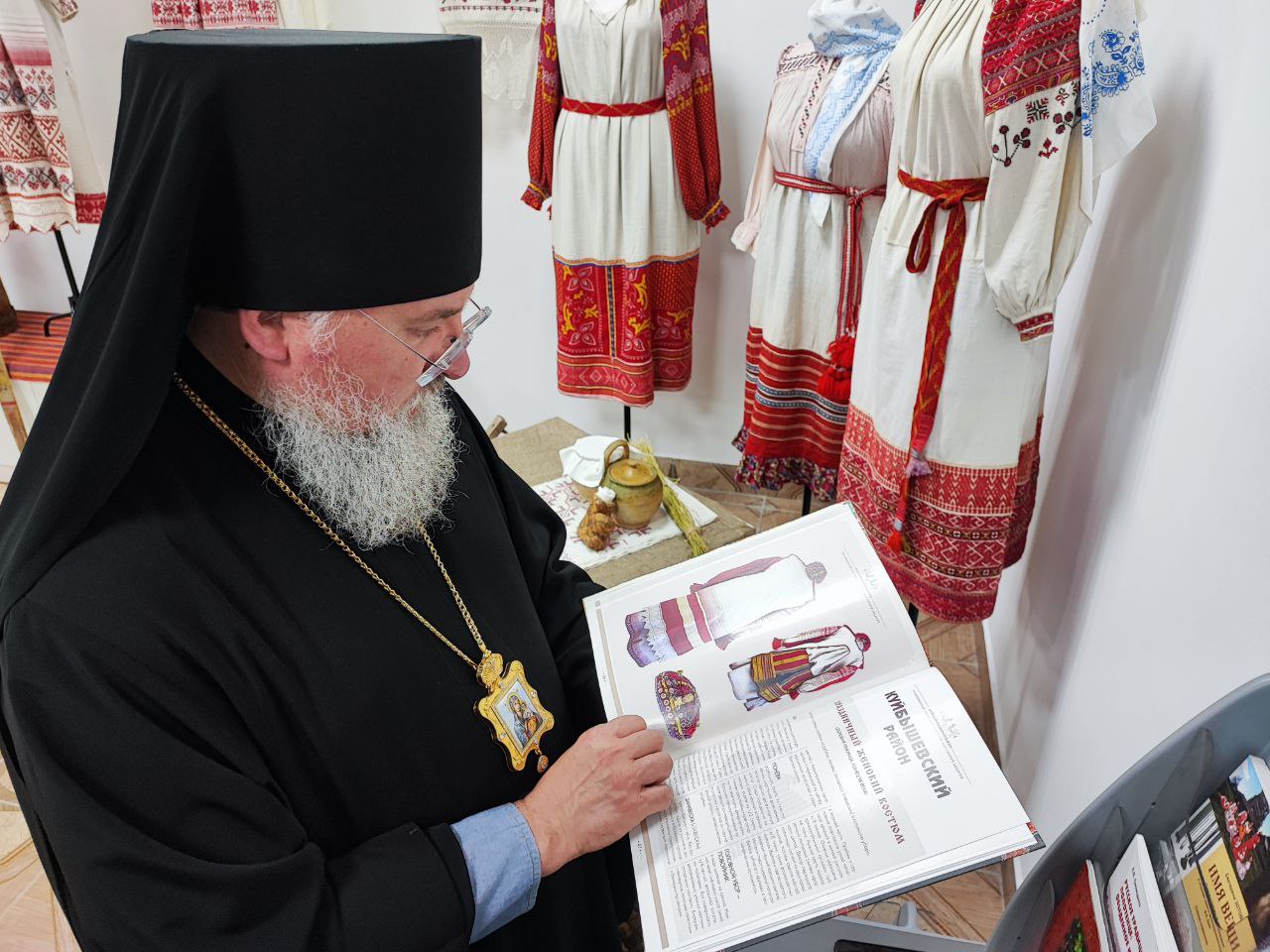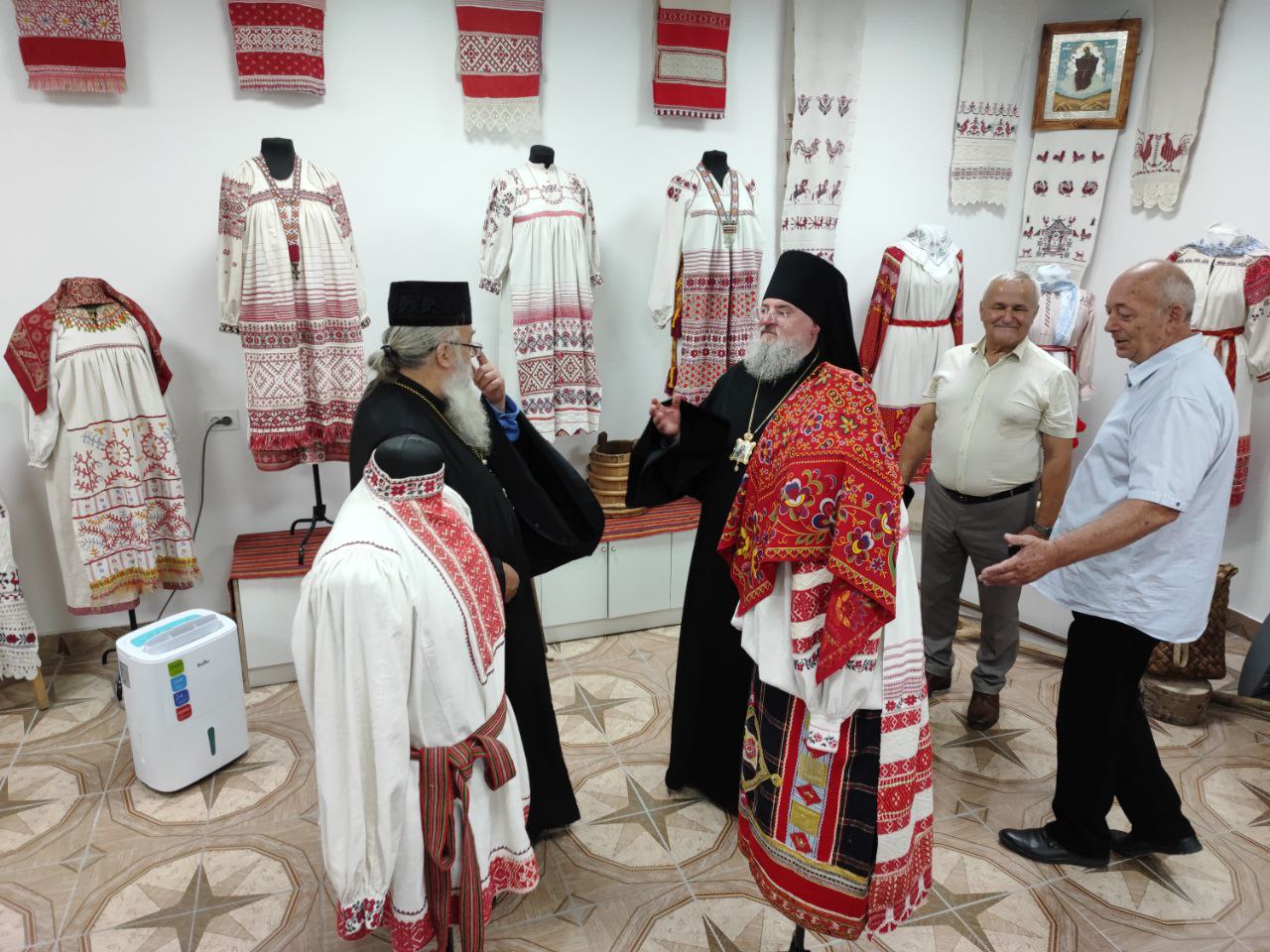 Владыка Никита с настоятелем храма и гостями посетили новую экспозицию старинных русских костюмов и предметов Калужской губернии, оформленную и размещённую в помещении нижнего этажа Духовно – просветительского центра «Светоч».