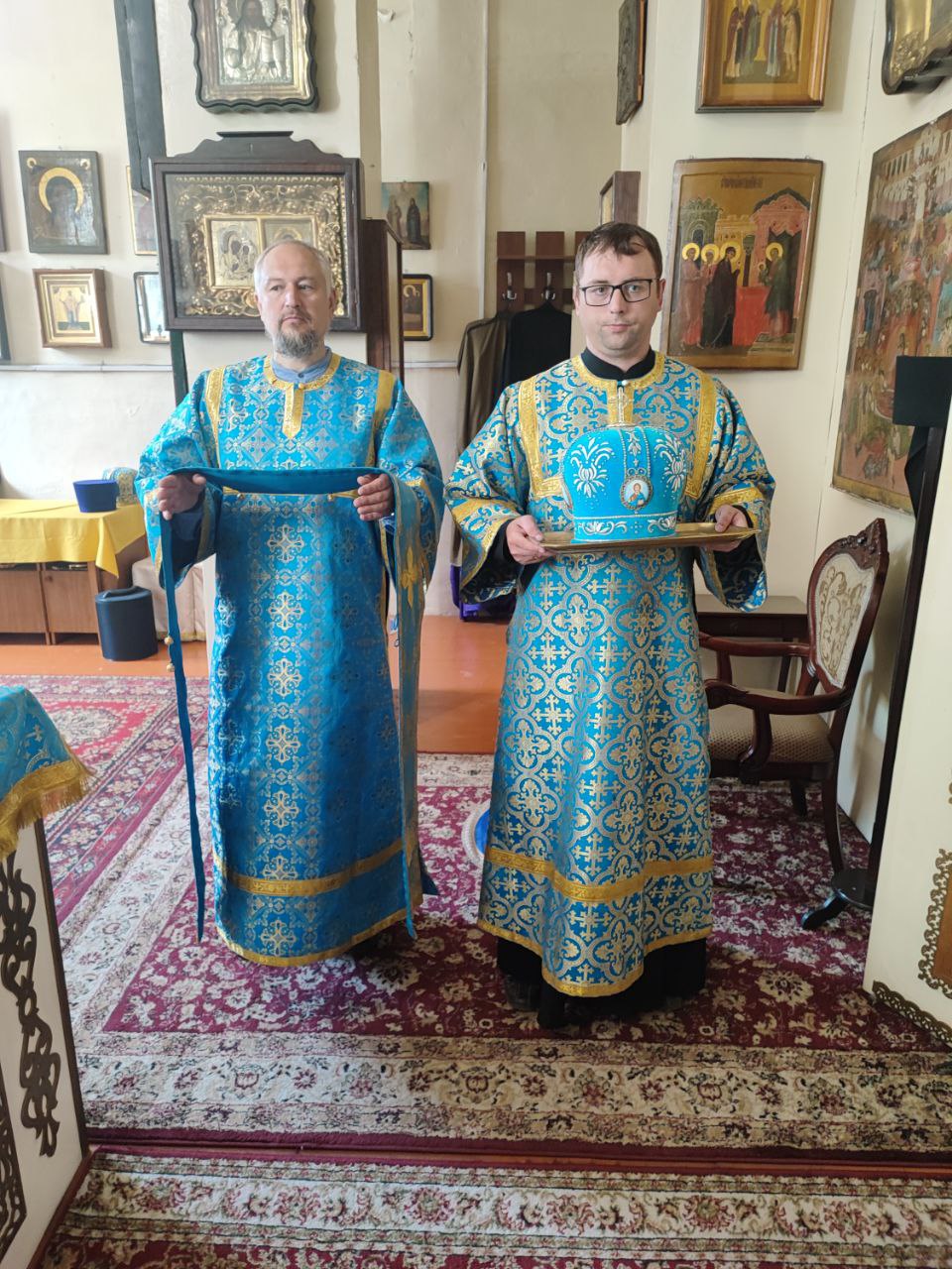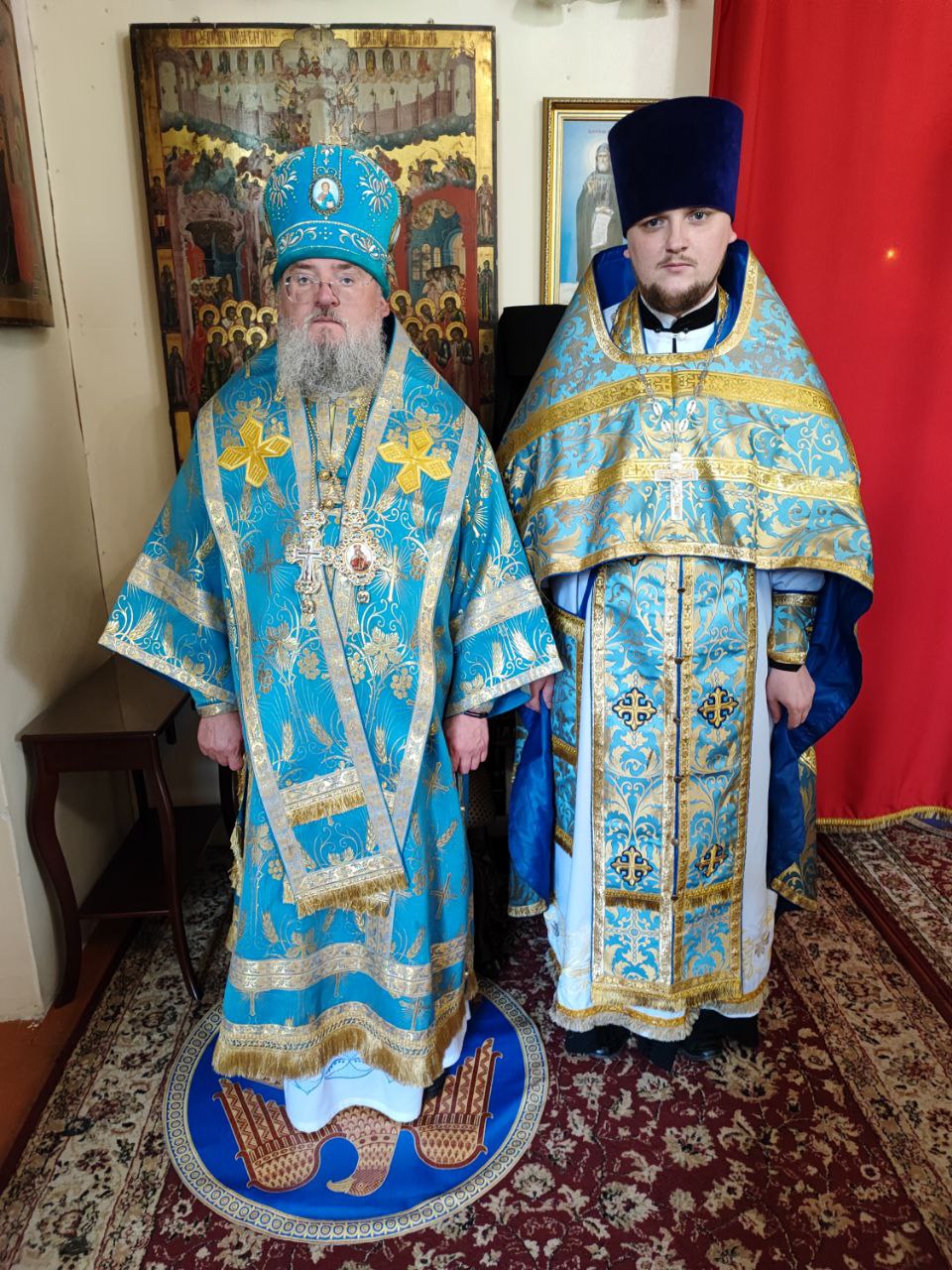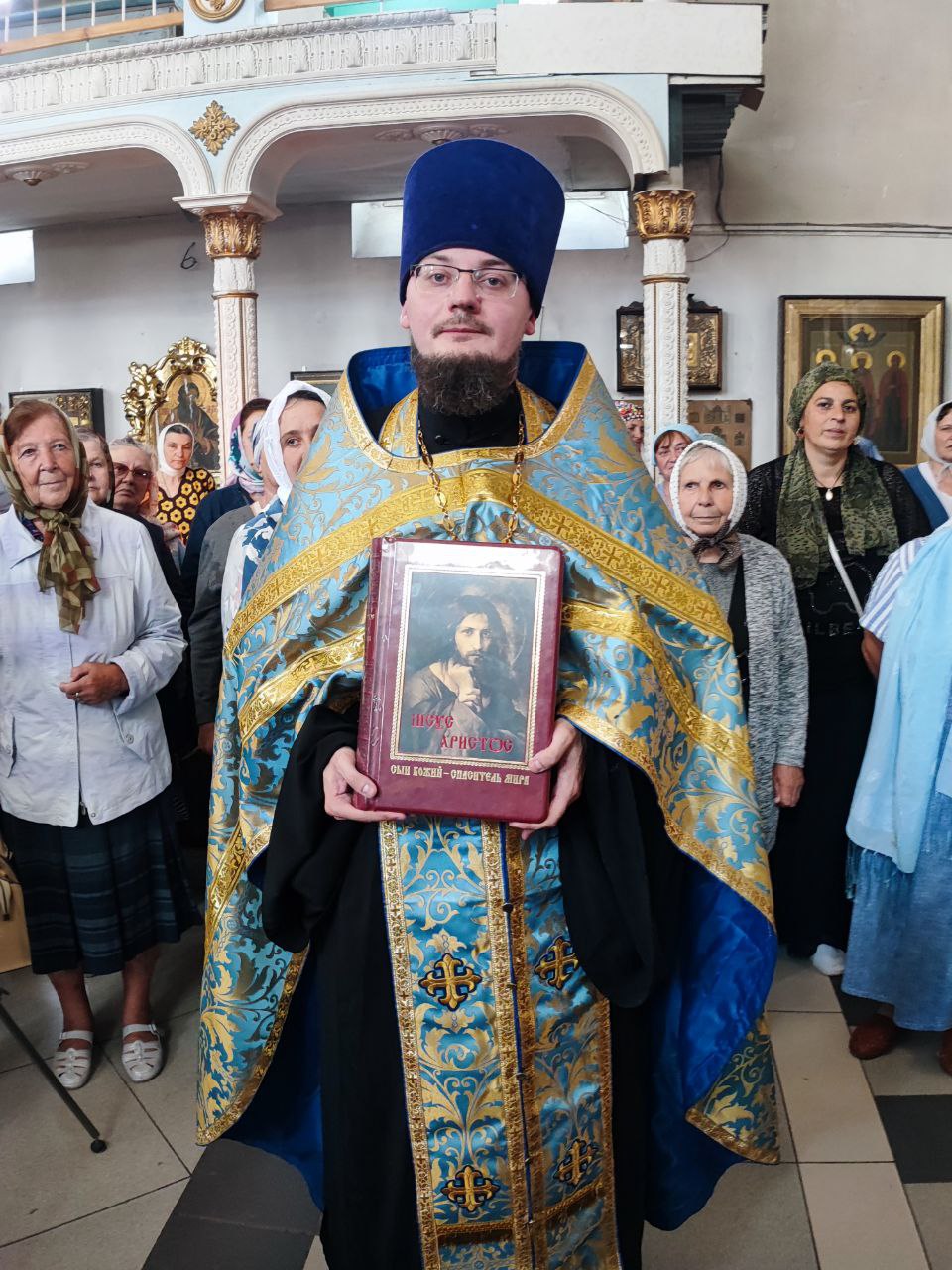 Также Владыка поздравил клирика собора иерея Алексия Сначёва с праздником и 10 – летием священнической хиротонии, преподнеся ему святую просфору, подарочную книгу о Господе нашем Иисусе Христе и букет цветов, пожелав помощи Божией и покровительства Царицы Небесной!