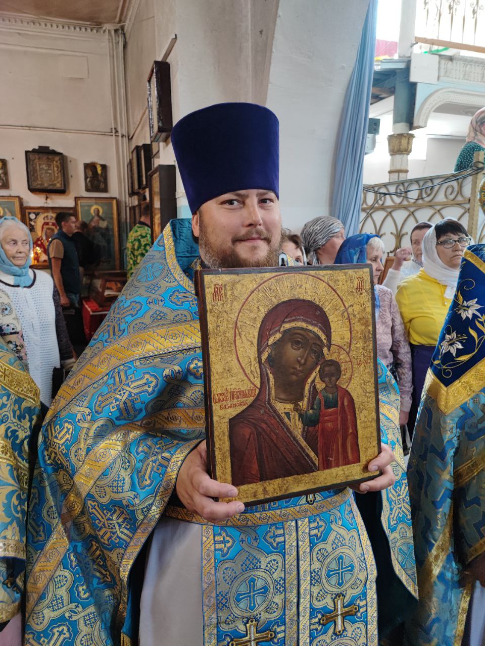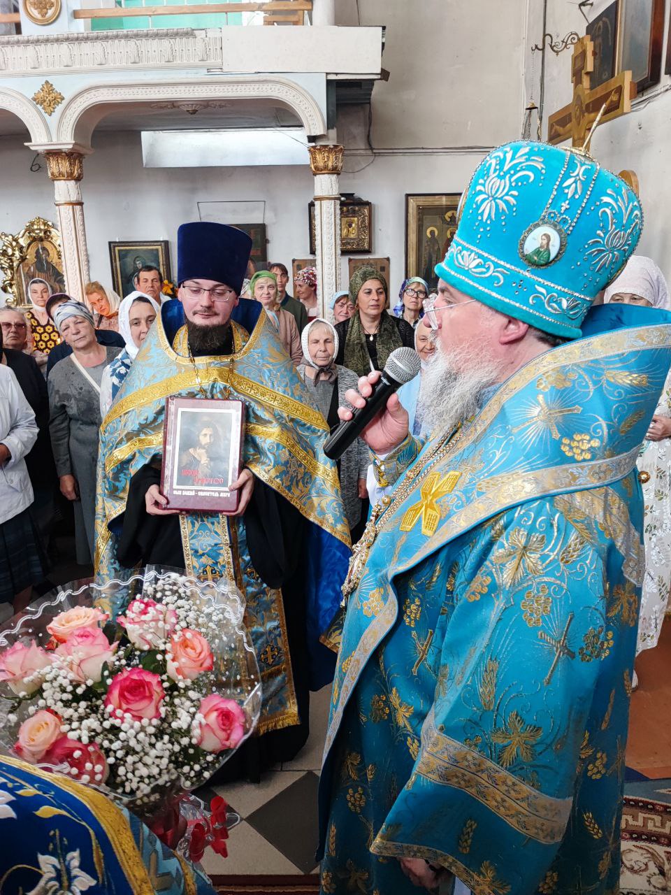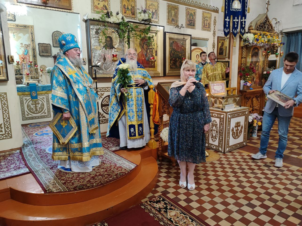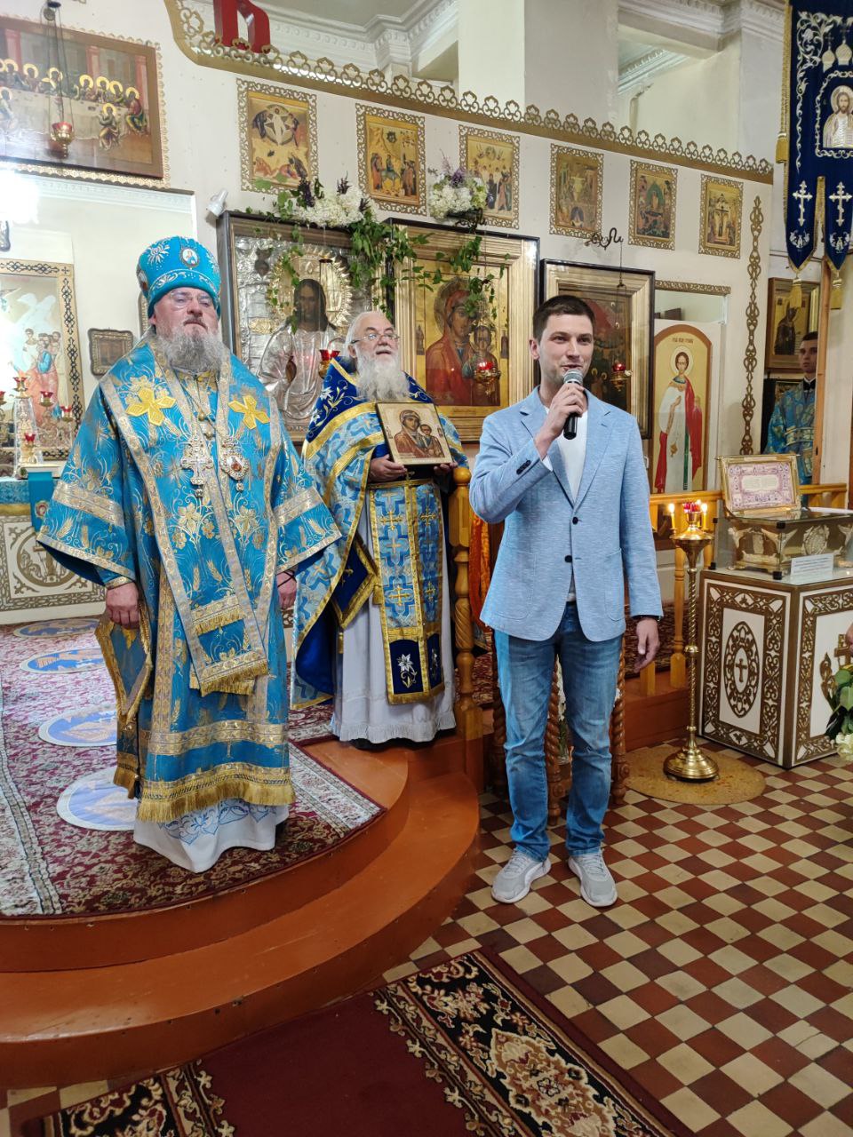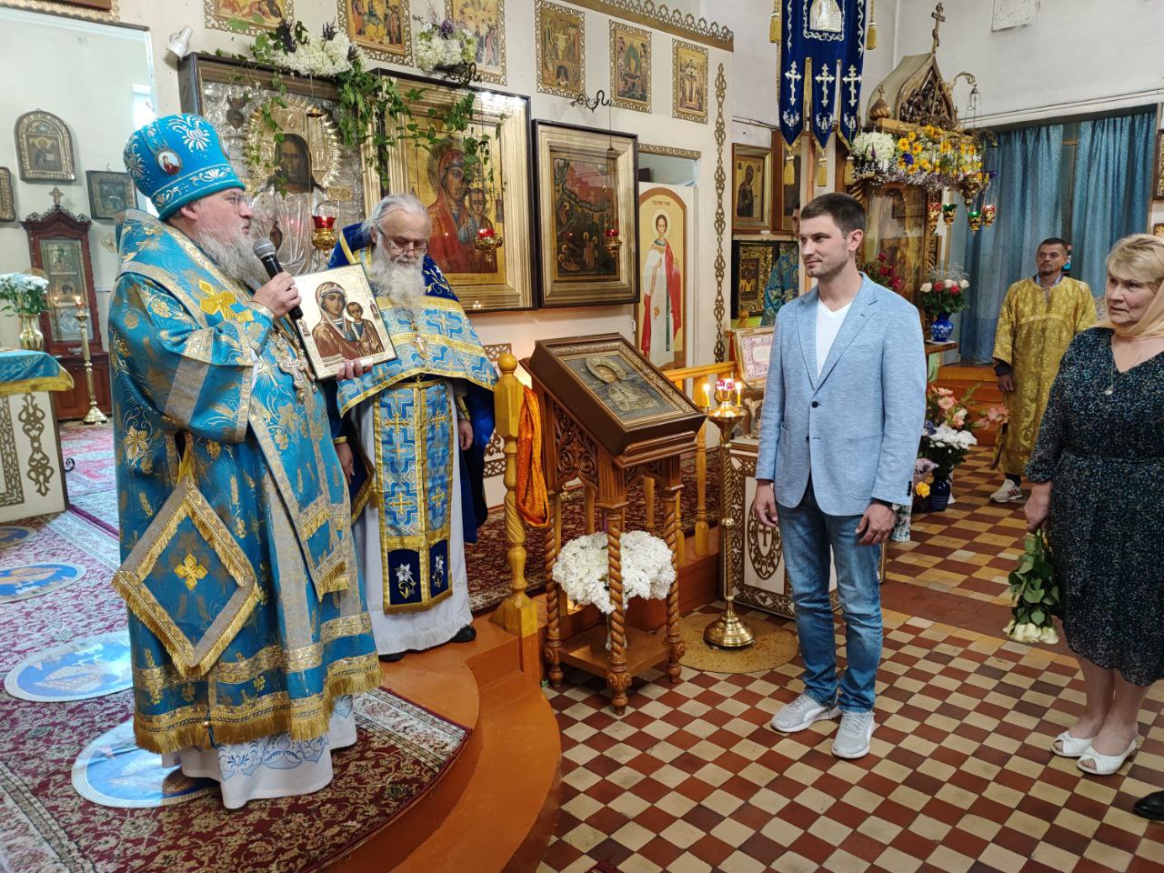 Завершая литургию Владыка поздравил прихожан с престольным праздником, а также главу администрации с официальным вступлением в должность и благословил его Казанской иконой Пресвятой Богородицы. Стефан Владимирович в ответном слове поздравил архипастыря, настоятеля и всех прихожан с праздником, поблагодарил за теплые слова в его адрес и сказал, что присутствие на богослужении дает удивительную радость и утешение в душе.