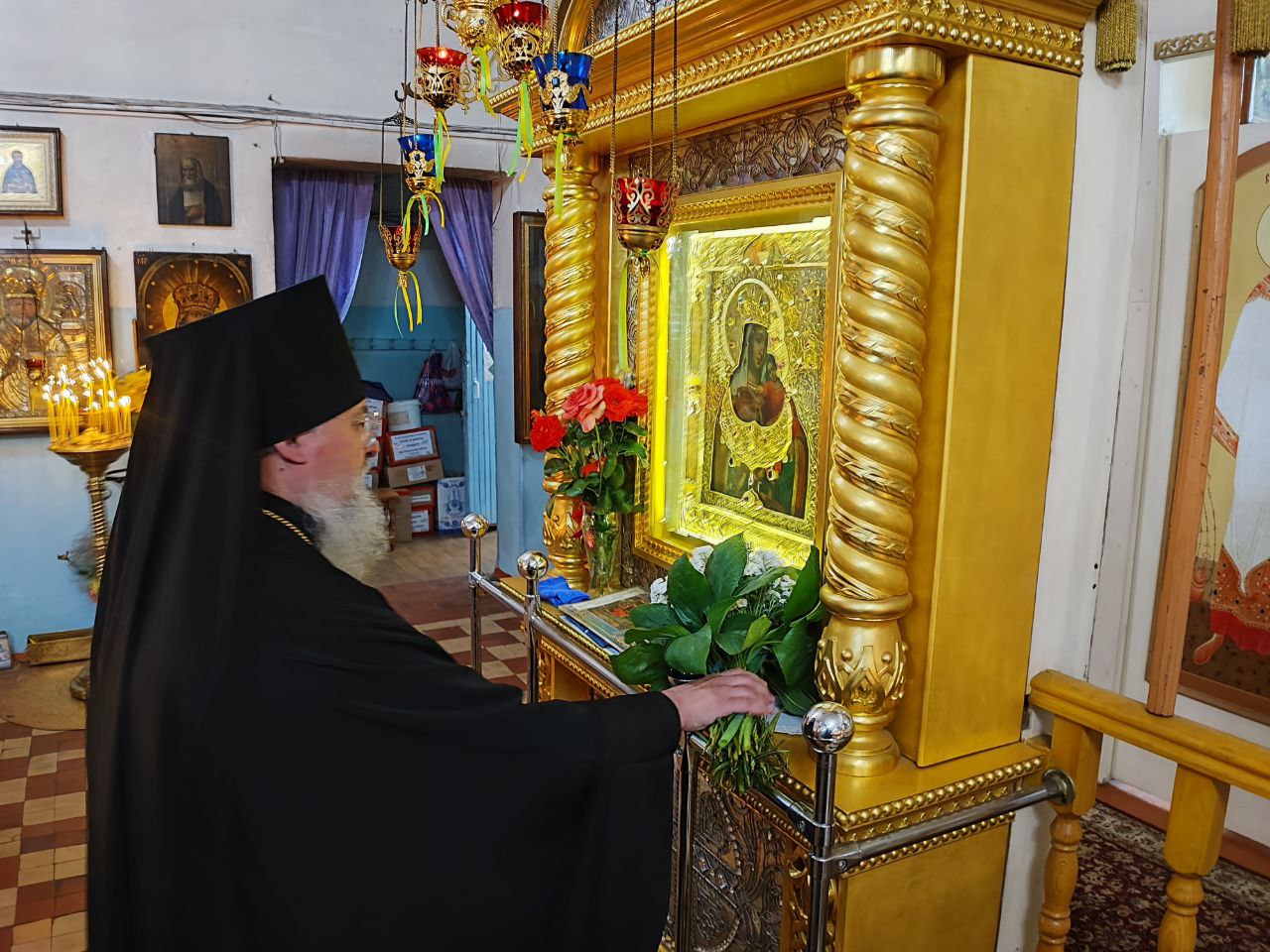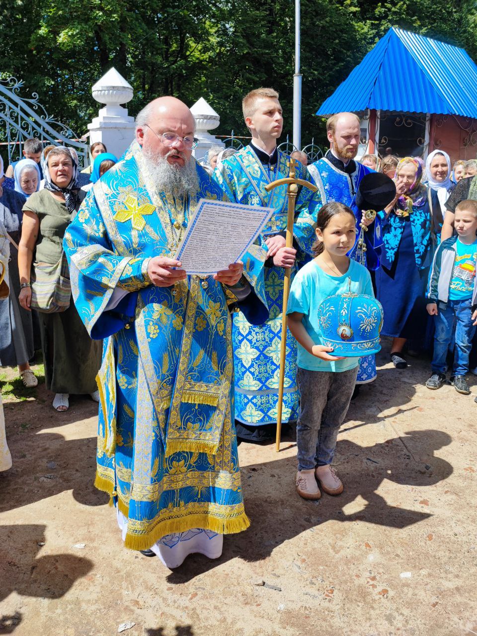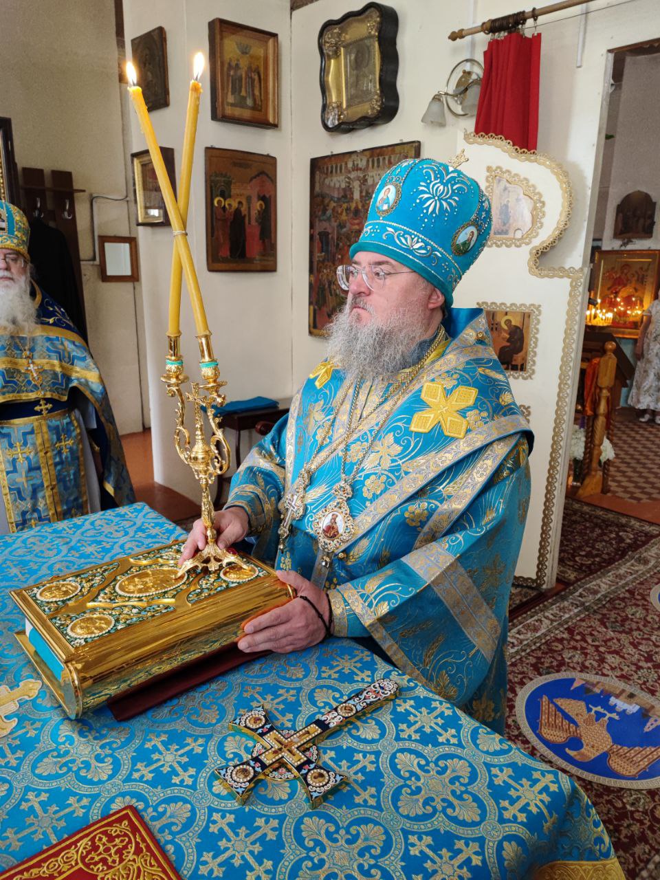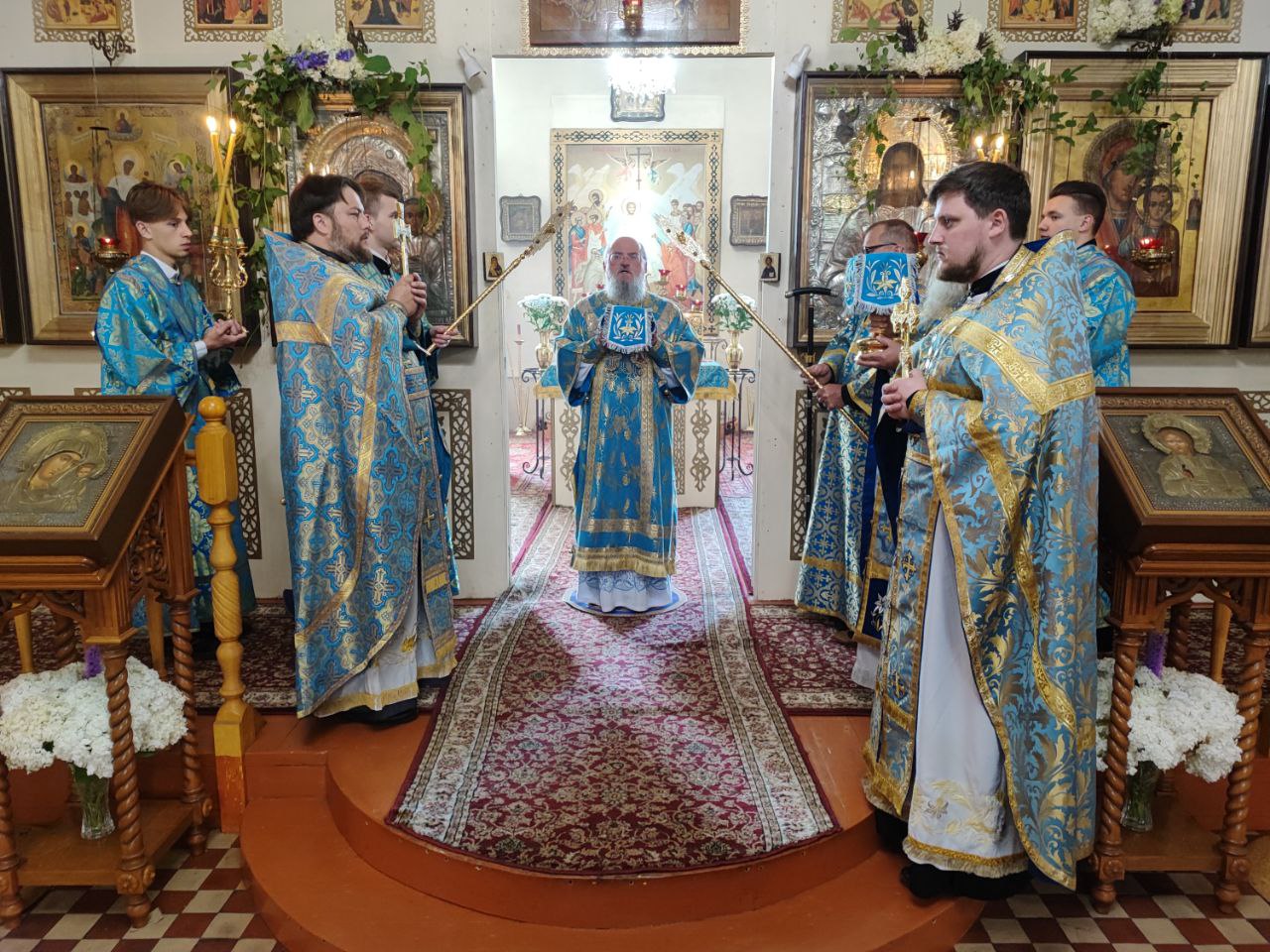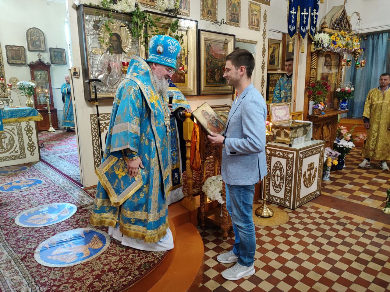 Завершая литургию Владыка поздравил прихожан с престольным праздником, а также главу администрации с официальным вступлением в должность и благословил его Казанской иконой Пресвятой Богородицы. Стефан Владимирович в ответном слове поздравил архипастыря, настоятеля и всех прихожан с праздником, поблагодарил за теплые слова в его адрес и сказал, что присутствие на богослужении дает удивительную радость и утешение в душе.