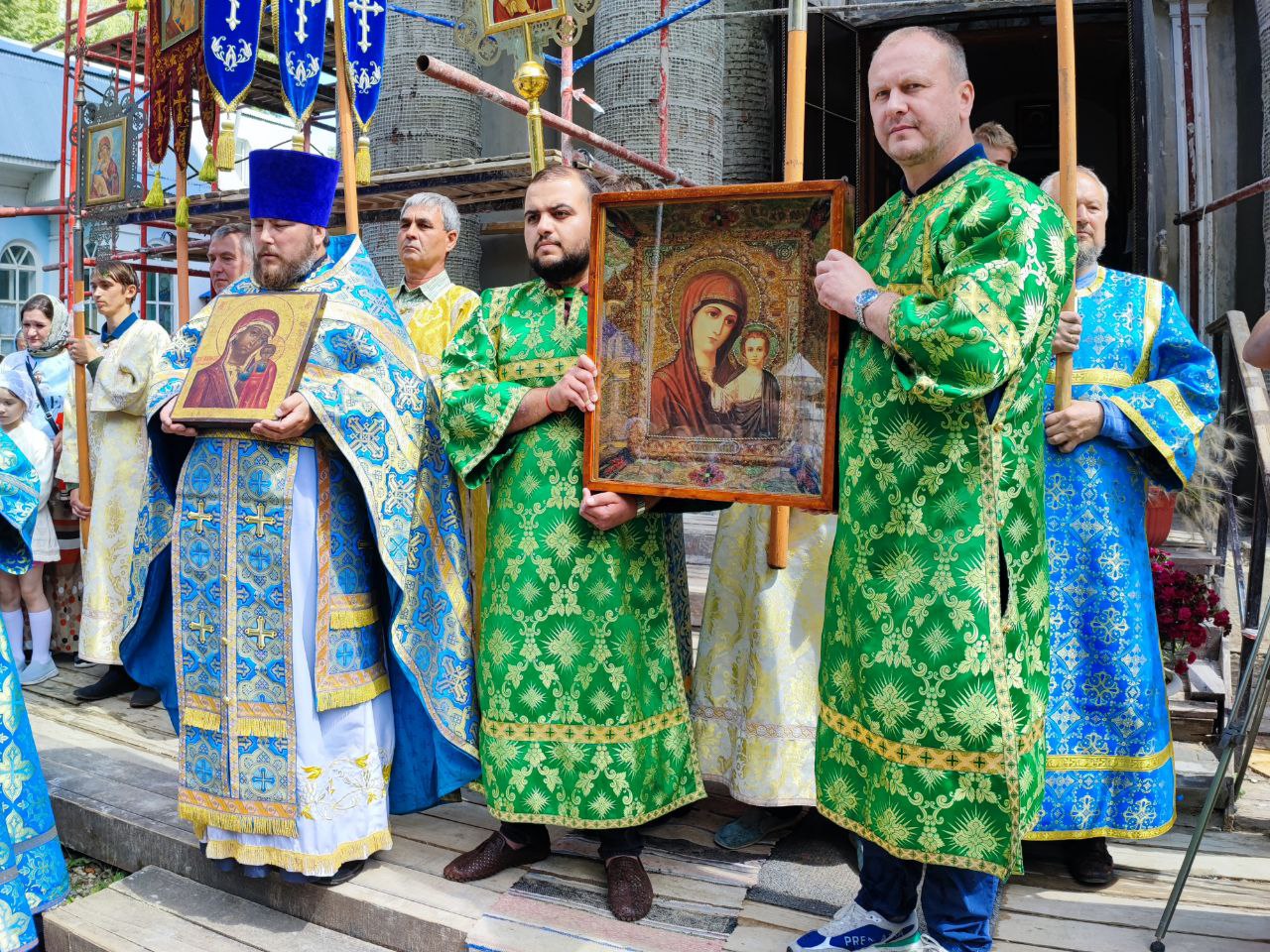 Затем был совершён праздничный молебен и крестный ход вокруг храма.