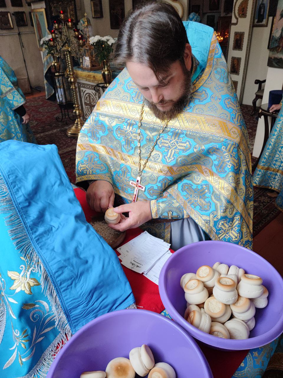 На Малом входе во внимание к усердным трудам во славу Святой Церкви клирик храма святого праведного Лазаря Четверодневного города Людиново иерей Иоанн Майоров, окончивший отделение магистратуры Белгородской духовной семинарии, был удостоен права ношения наперстного креста золотого цвета.