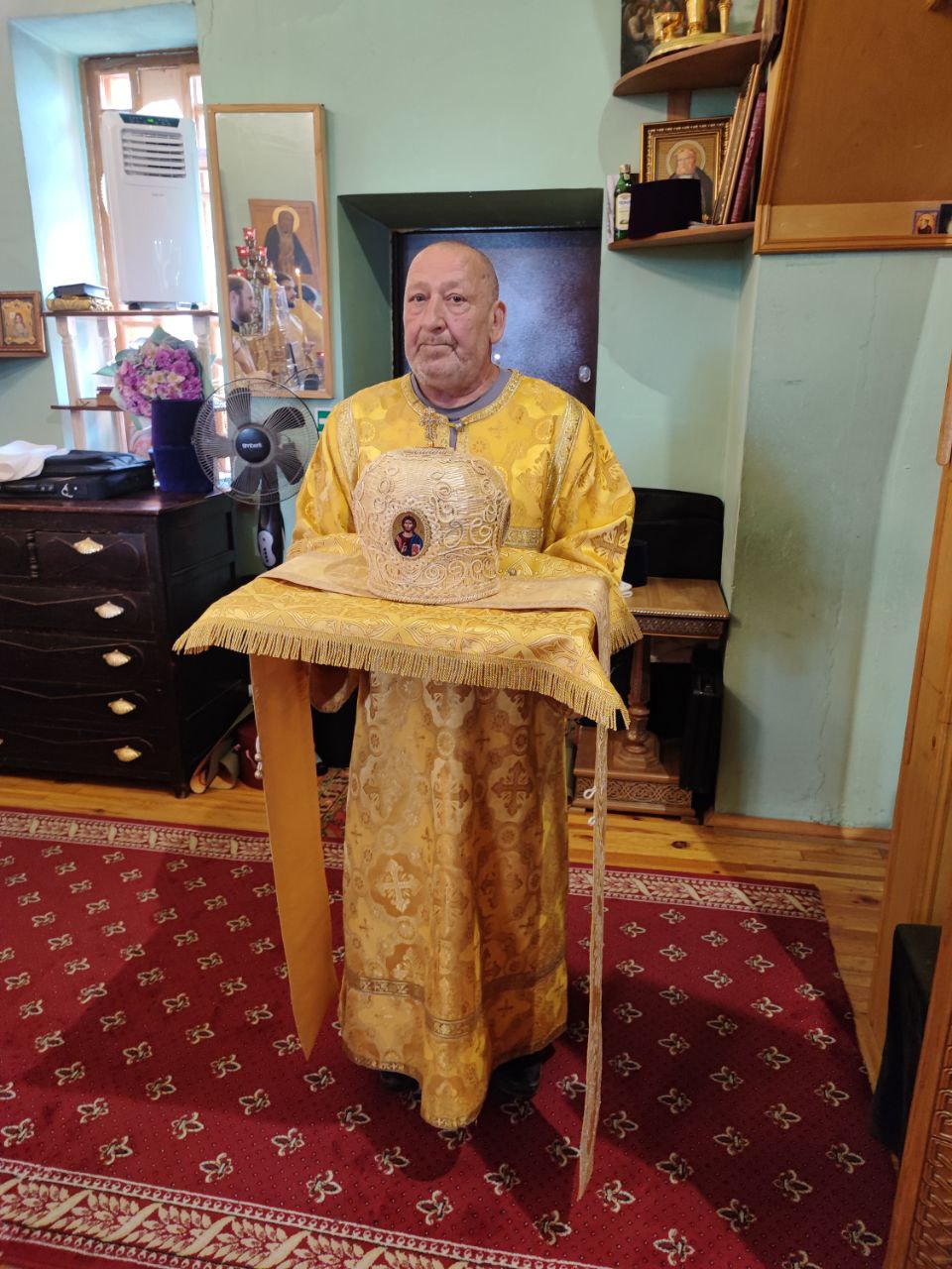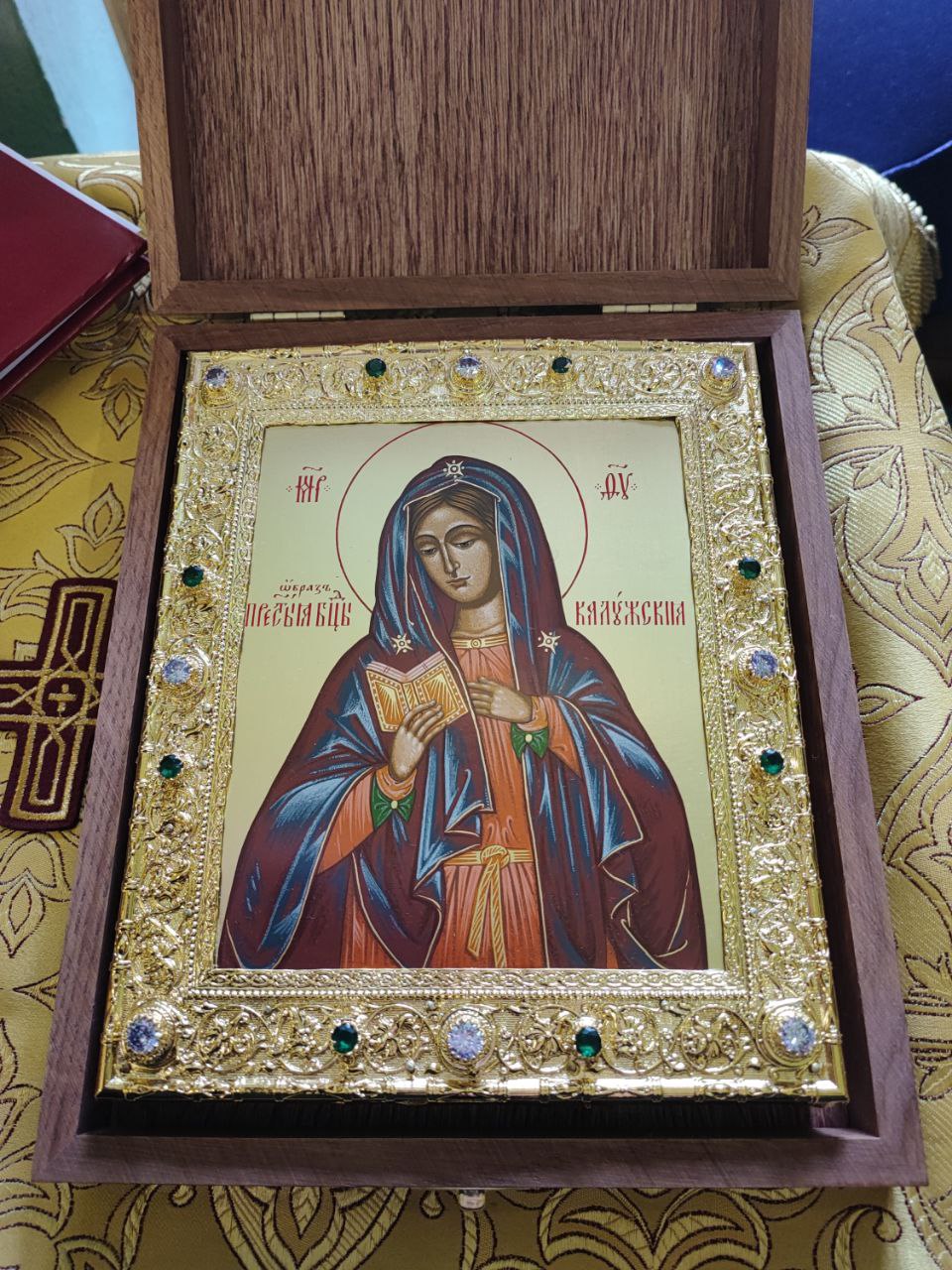 Приветственное послание Главы Митрополии зачитал секретарь Калужской епархии игумен Мефодий (Пронькин). В дар юбиляру от владыки митрополита отец игумен передал Калужскую икону Пресвятой Богородицы.