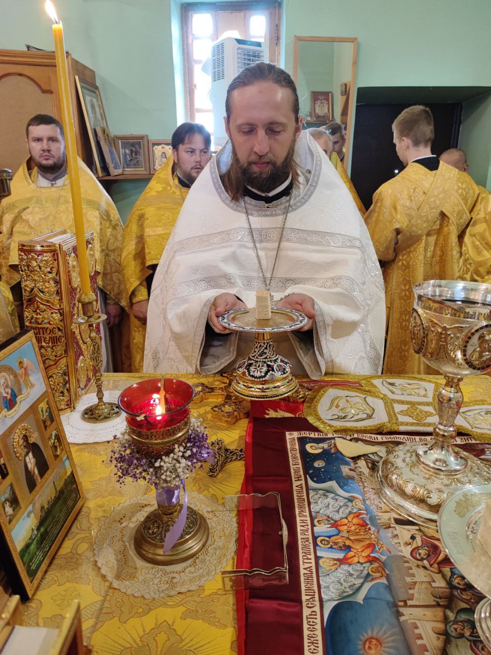 По Великом входе в сан пресвитера к храму Владимирской иконы Божией Матери в селе Волконское Козельского района был рукоположен диакон Дионисий Капустин.