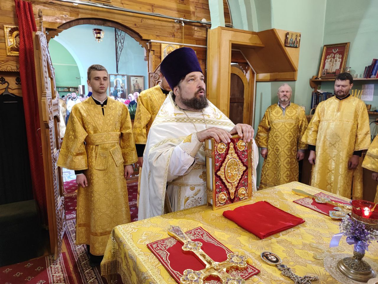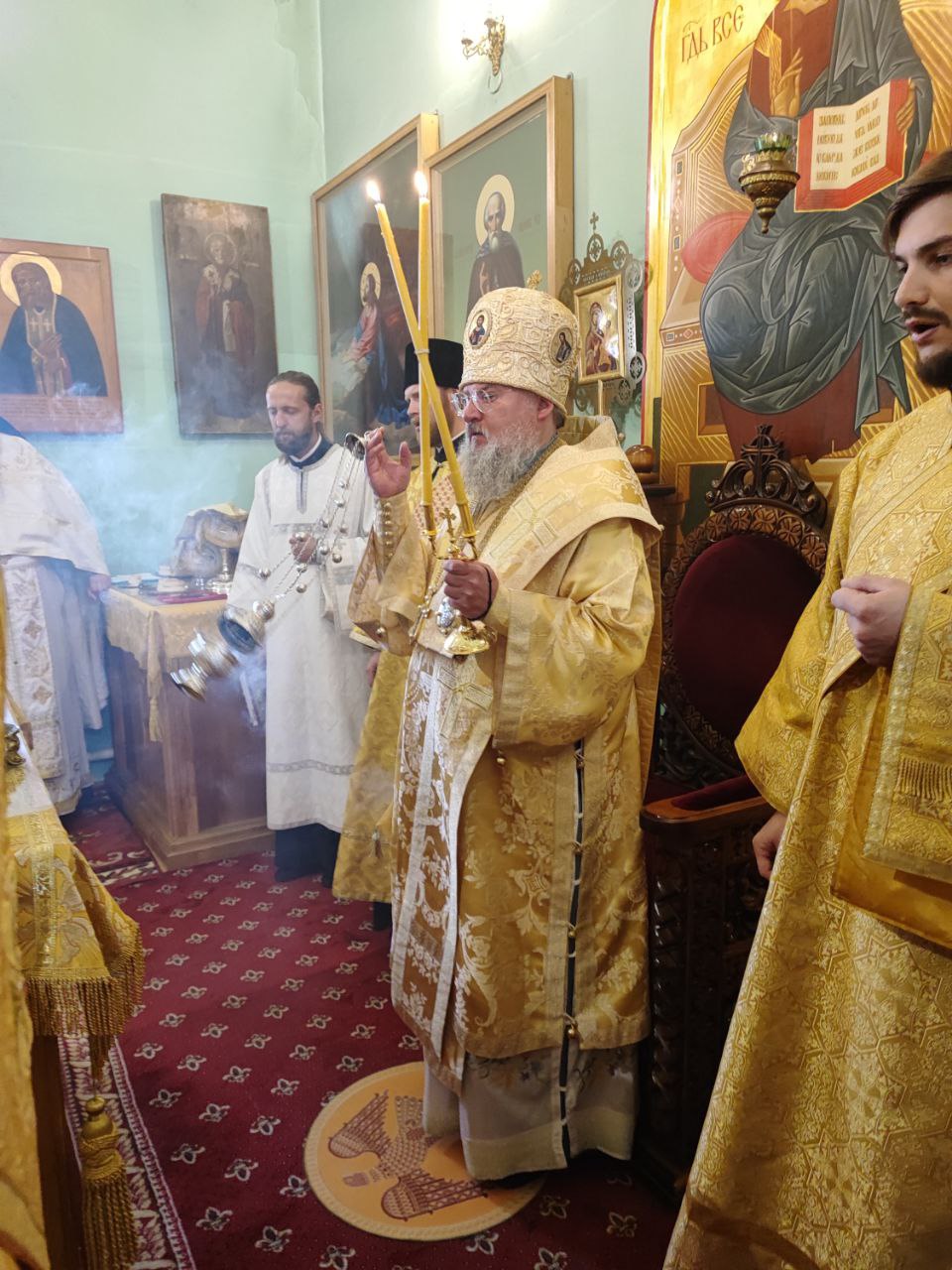 По отпусте литургии был совершен благодарственный молебен, в завершении которого епископ Никита вознес благодарственную молитву ко Господу Богу, а затем были провозглашены уставные многолетия.