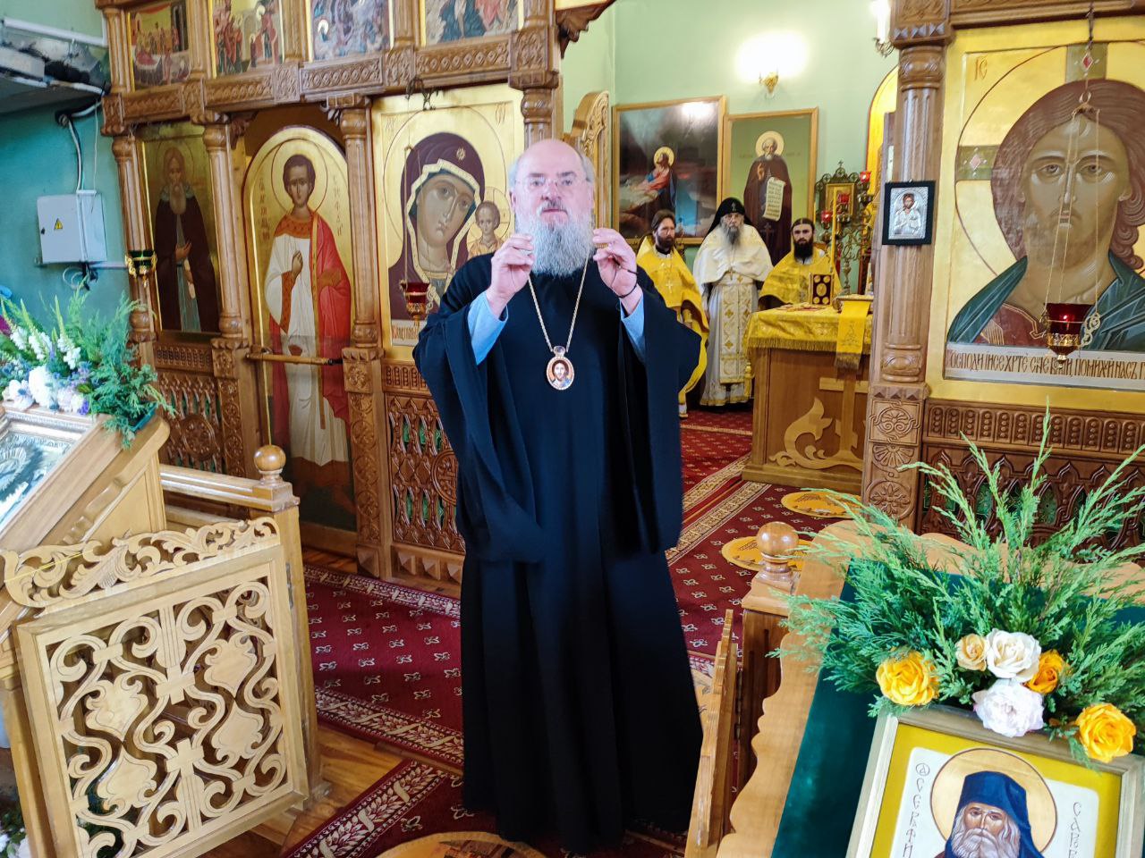 25 июля в день празднования в честь иконы Божией Матери «Троеручица» епископ Козельский и Людиновский Никита совершил Божественную литургию в храме преподобного Серафима Саровского города Сосенский, настоятелю которого протоиерею Владимиру Бахаеву – секретарю Козельской епархии исполнилось 50 лет со дня рождения.