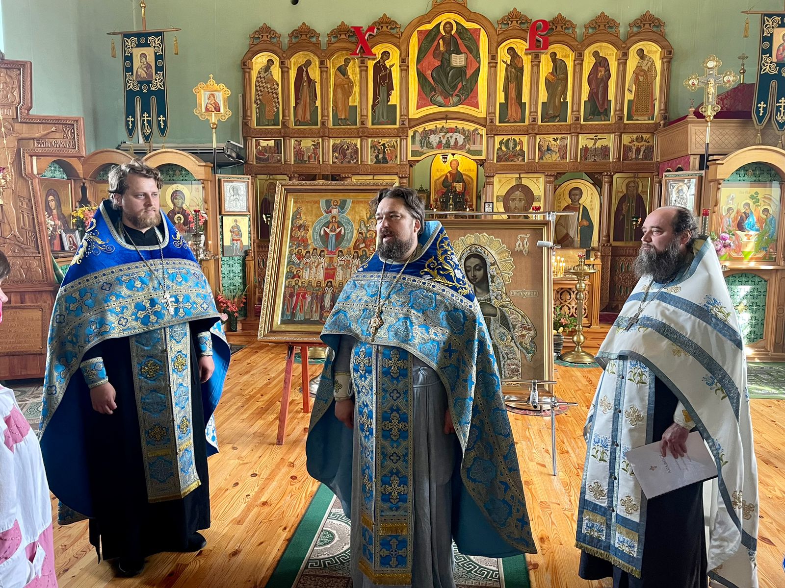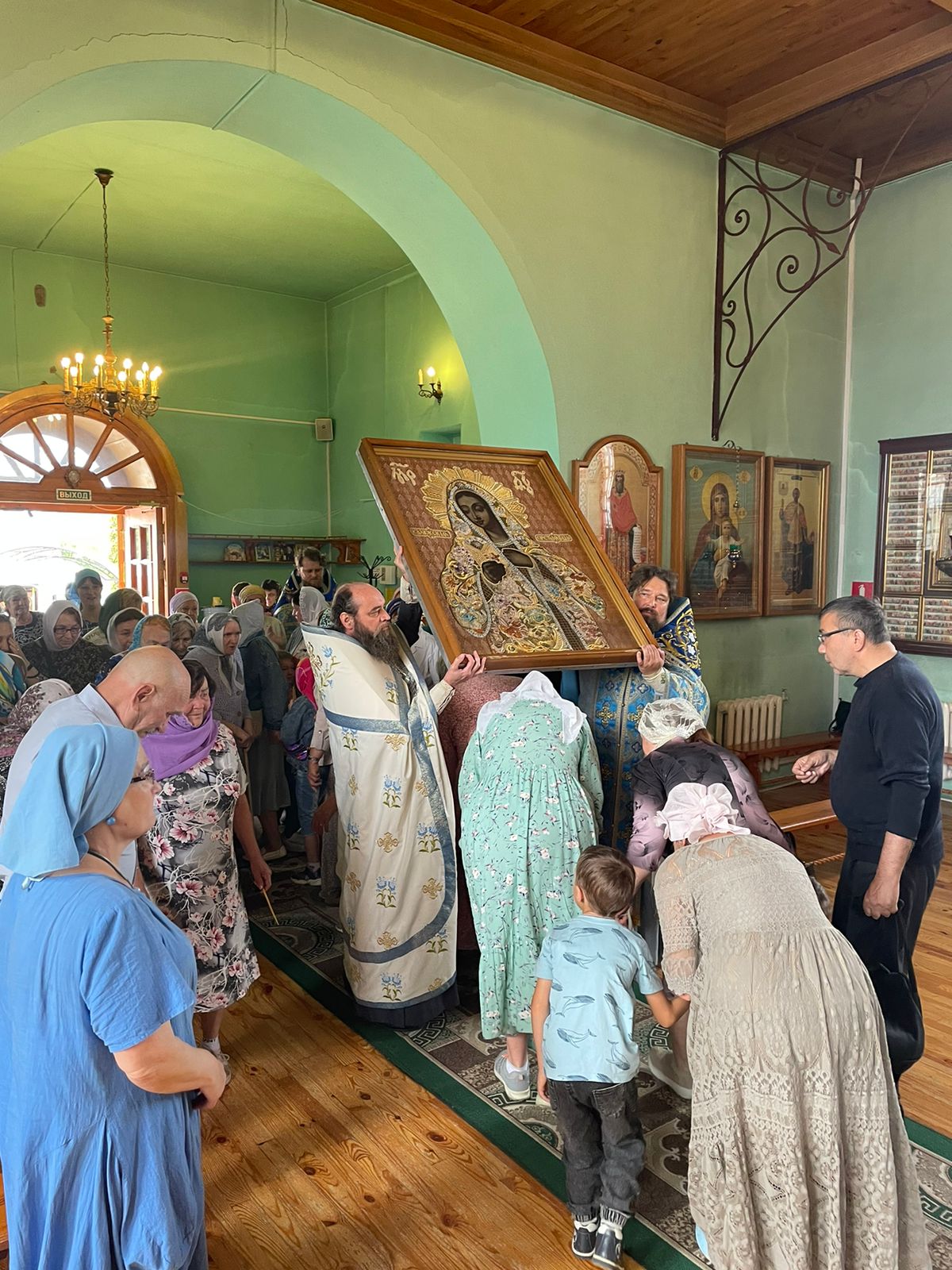 29 июня в храме преподобного Серафима Саровского города Сосенский Козельского района была торжественно встречена чудотворная Калужская икона Божией Матери и икона святых новомучеников и исповедников земли Калужской. Перед святыням был совершён молебен с акафистом. Прихожане и все желающие смогли помолиться и приложиться к чудотворному образу Божией Матери.