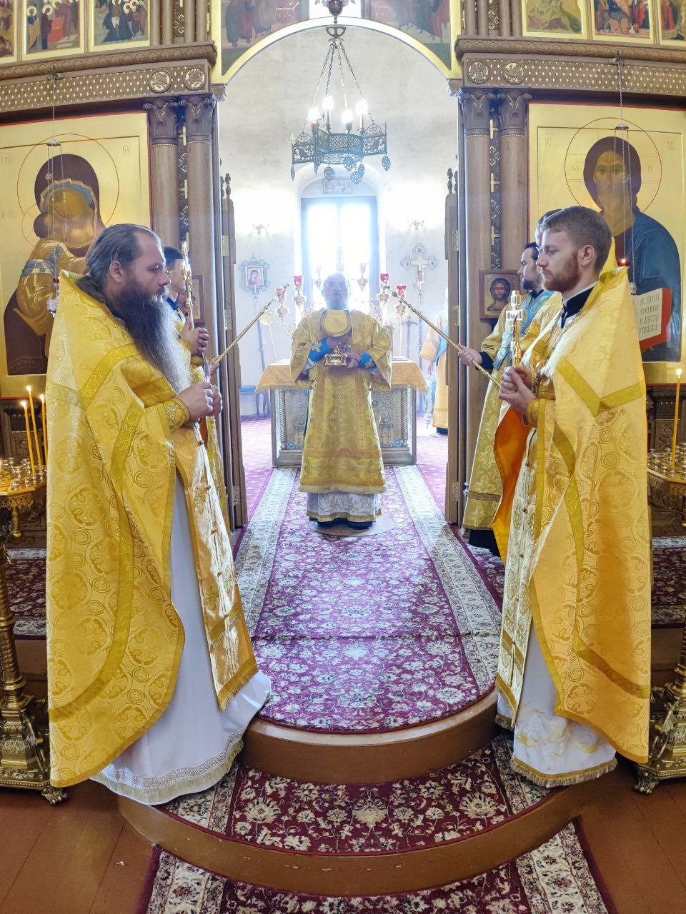Епископ Козельский и Людиновский Никита в сослужении клириков храма совершил Божественную литургию в Успенском кафедральном соборе города Козельска.