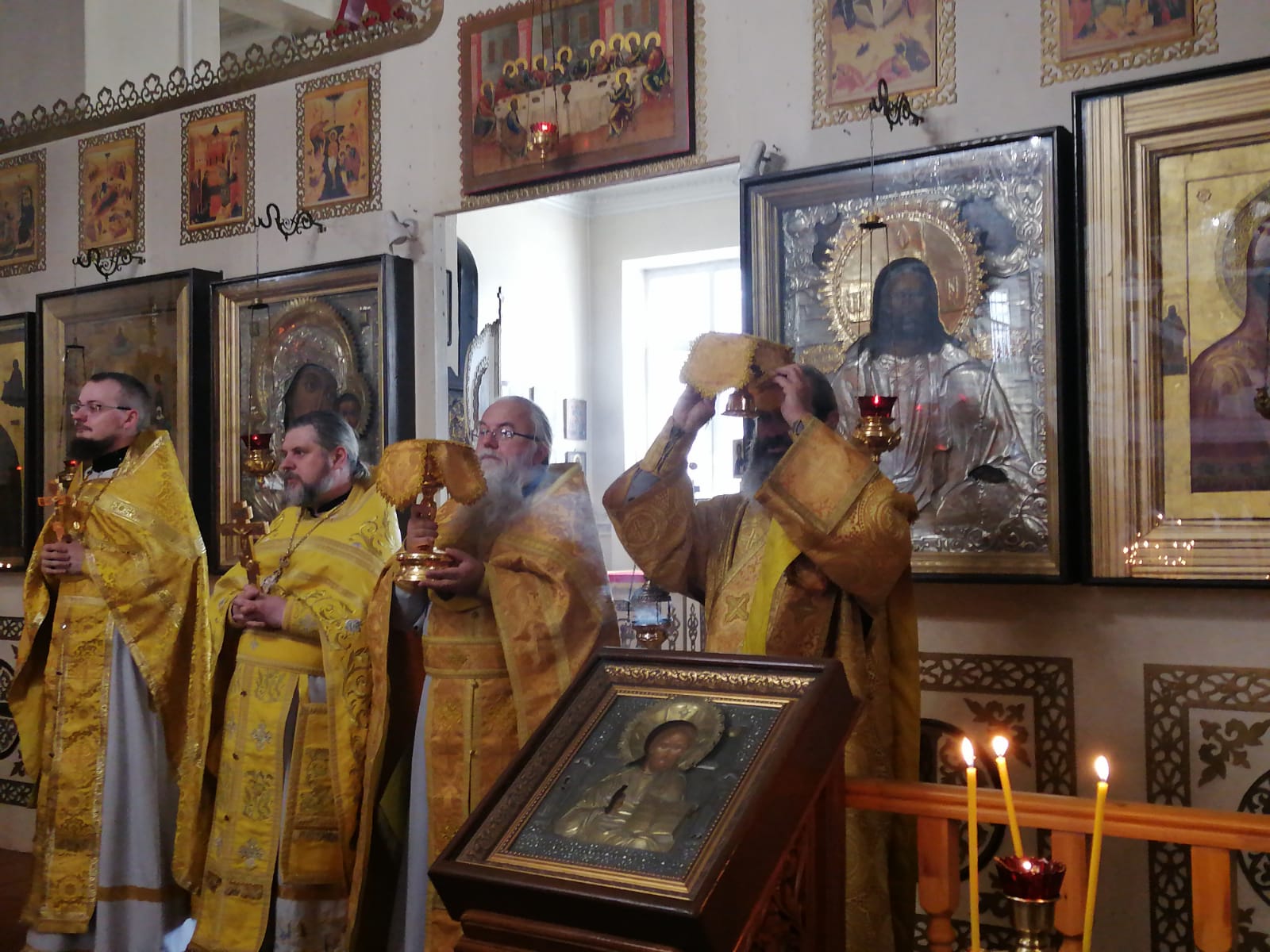 Божественную литургию в честь престольного праздника в соборе  совершил настоятель храма протоиерей Алексий Жиганов. Ему сослужили настоятель  храма в честь святого праведного Лазаря протоиерей Михаил Карпенко, клирики собора иерей Алексий Сначёв и диакон Андрей Соколов.