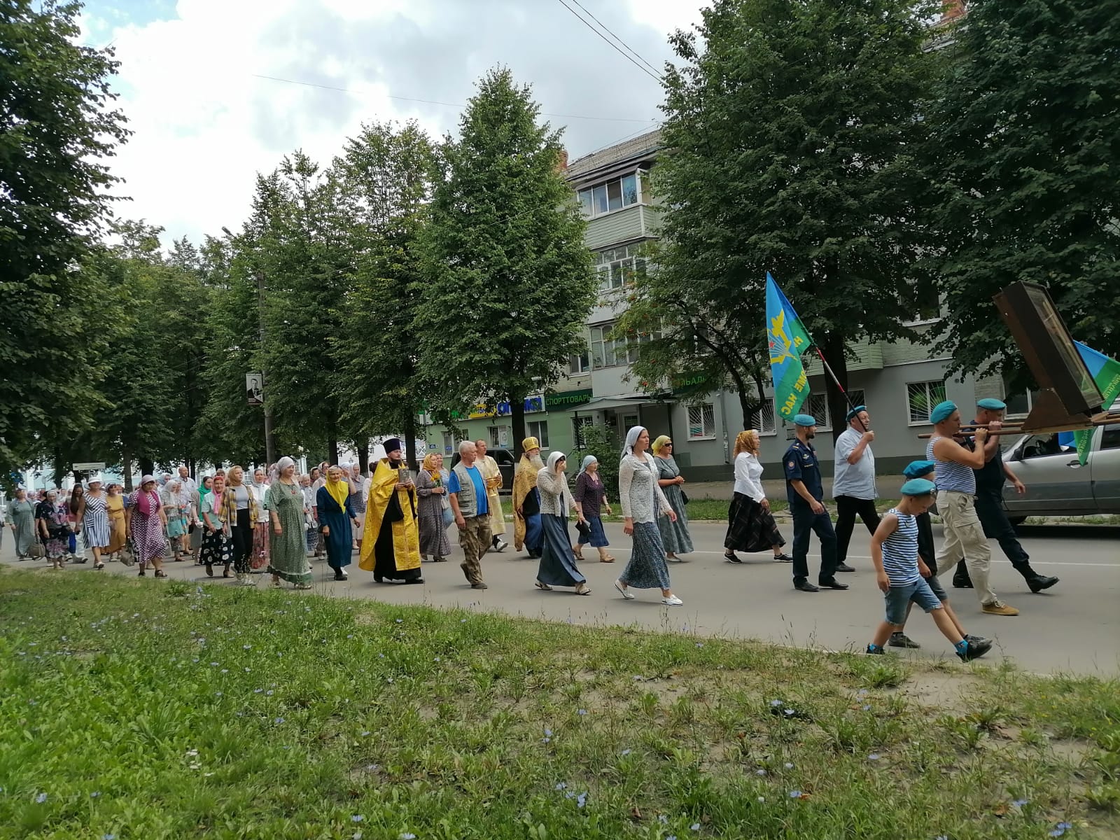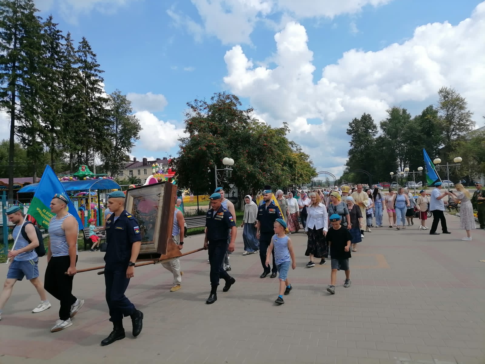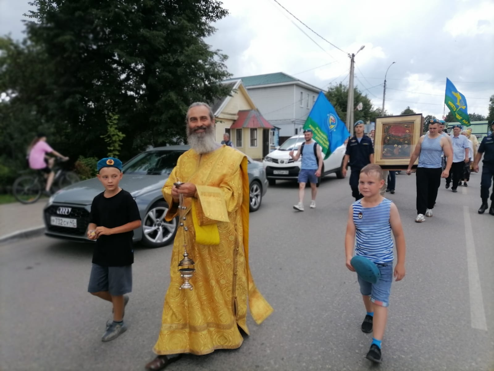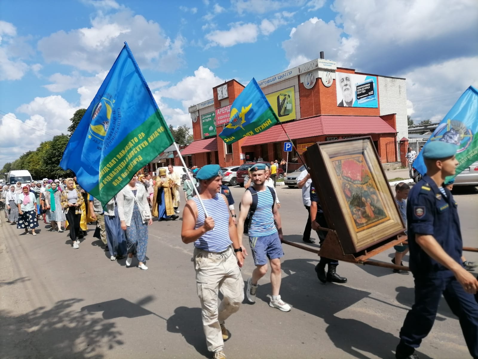 По установившейся традиции, от Казанского собора был совершен Крестный ход и молебное пение по улицам города Людиново, который возглавил настоятель собора протоиерей Алексий Жиганов. К духовенству собора, прихожанам присоединились десантники и жители города Людиново.
