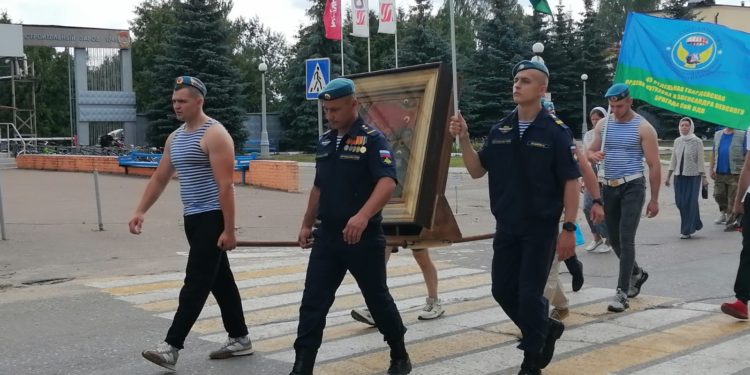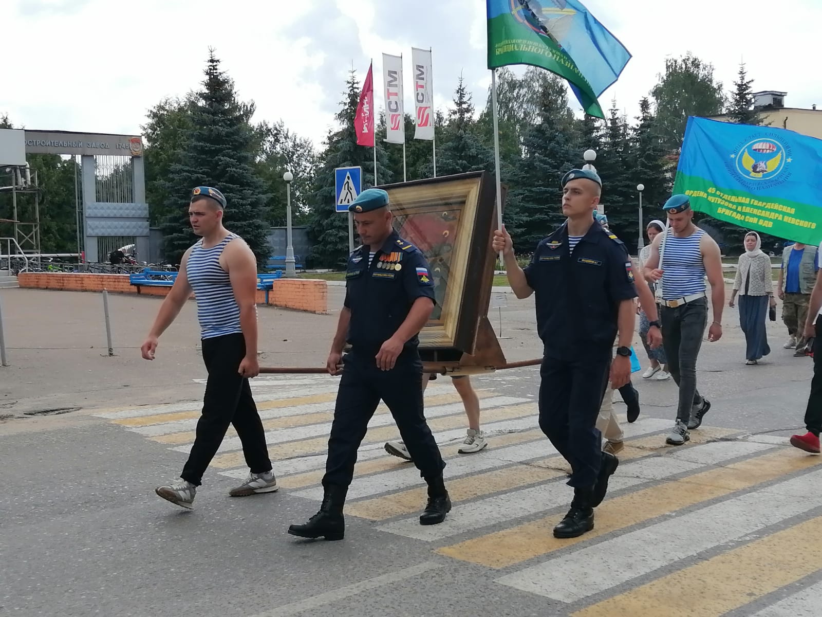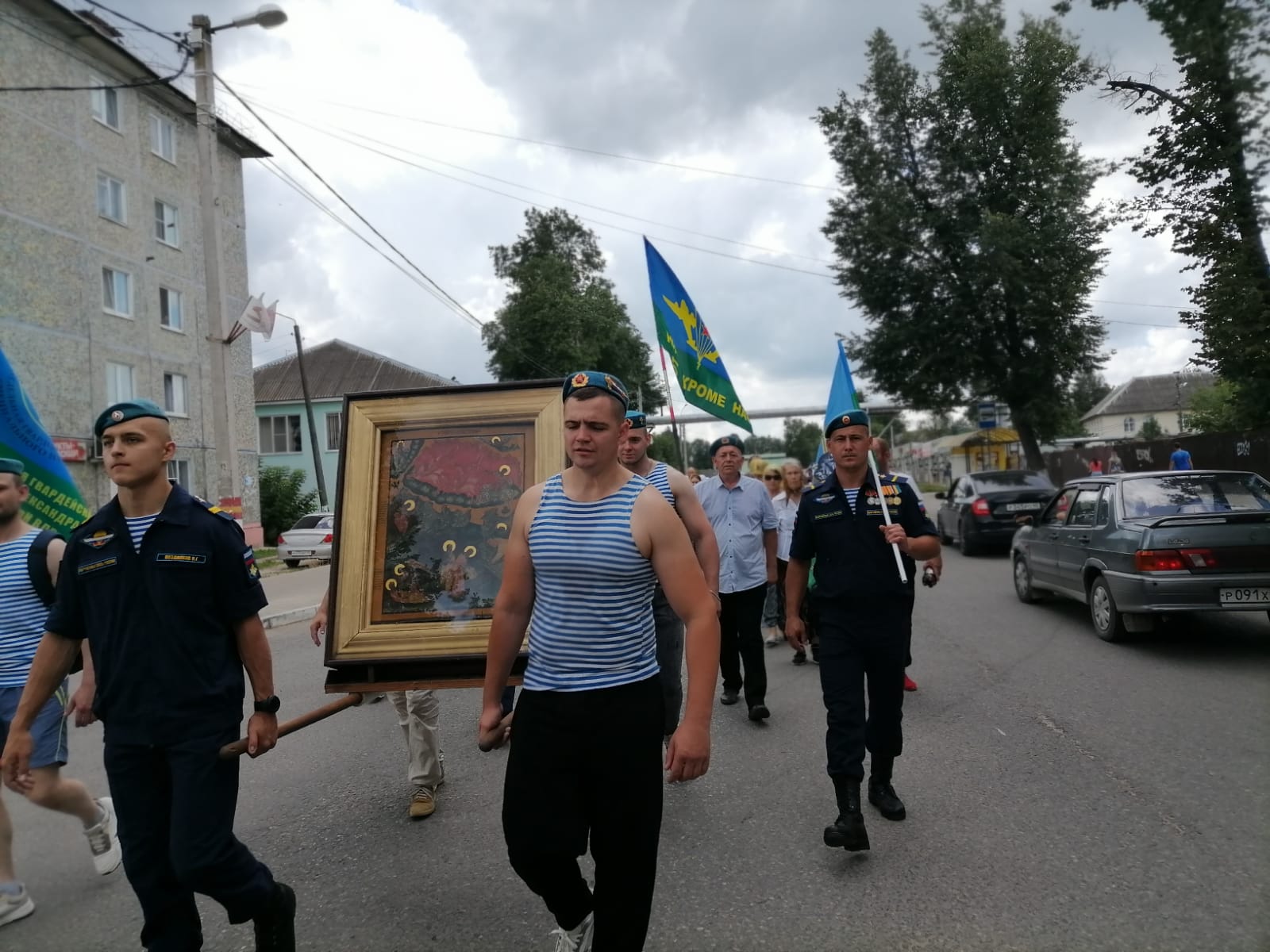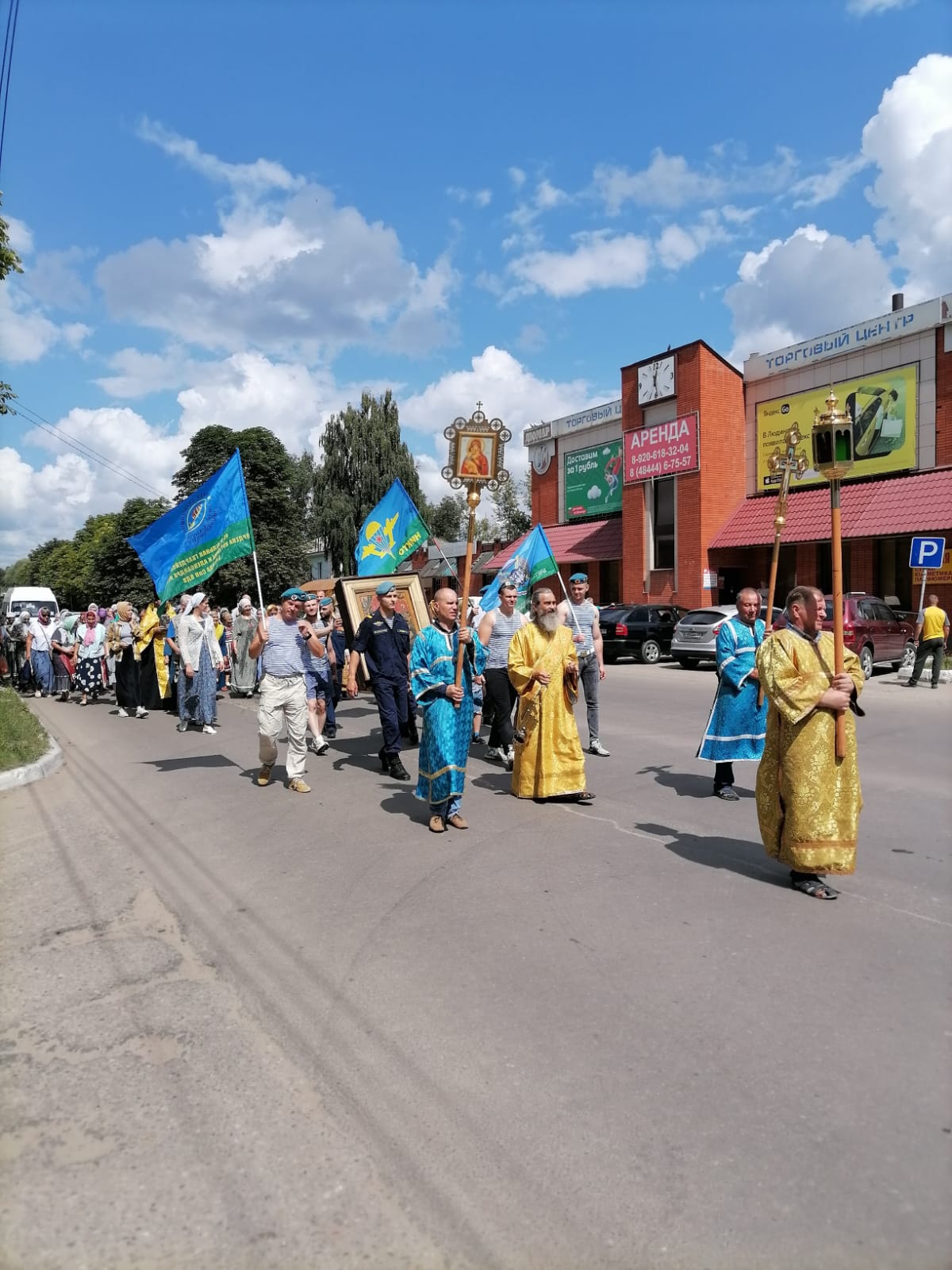 По установившейся традиции, от Казанского собора был совершен Крестный ход и молебное пение по улицам города Людиново, который возглавил настоятель собора протоиерей Алексий Жиганов. К духовенству собора, прихожанам присоединились десантники и жители города Людиново.