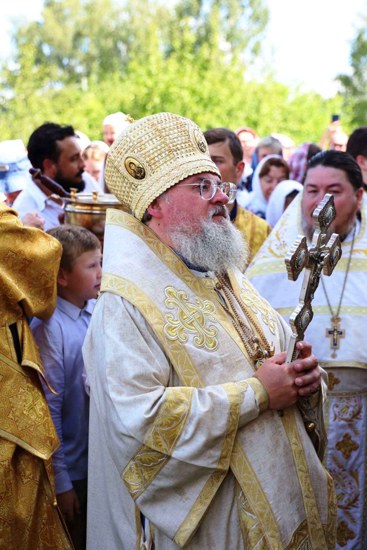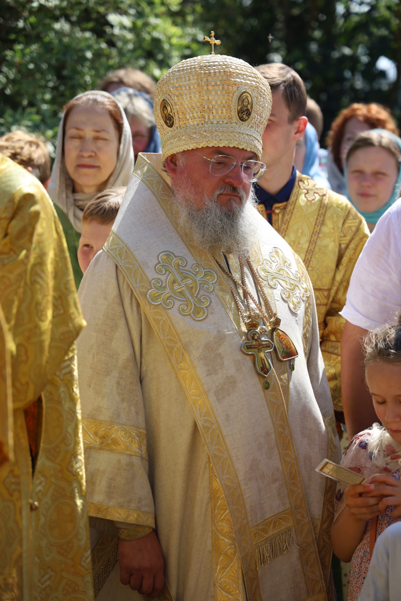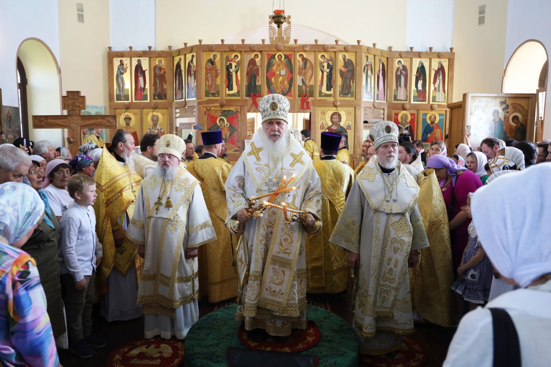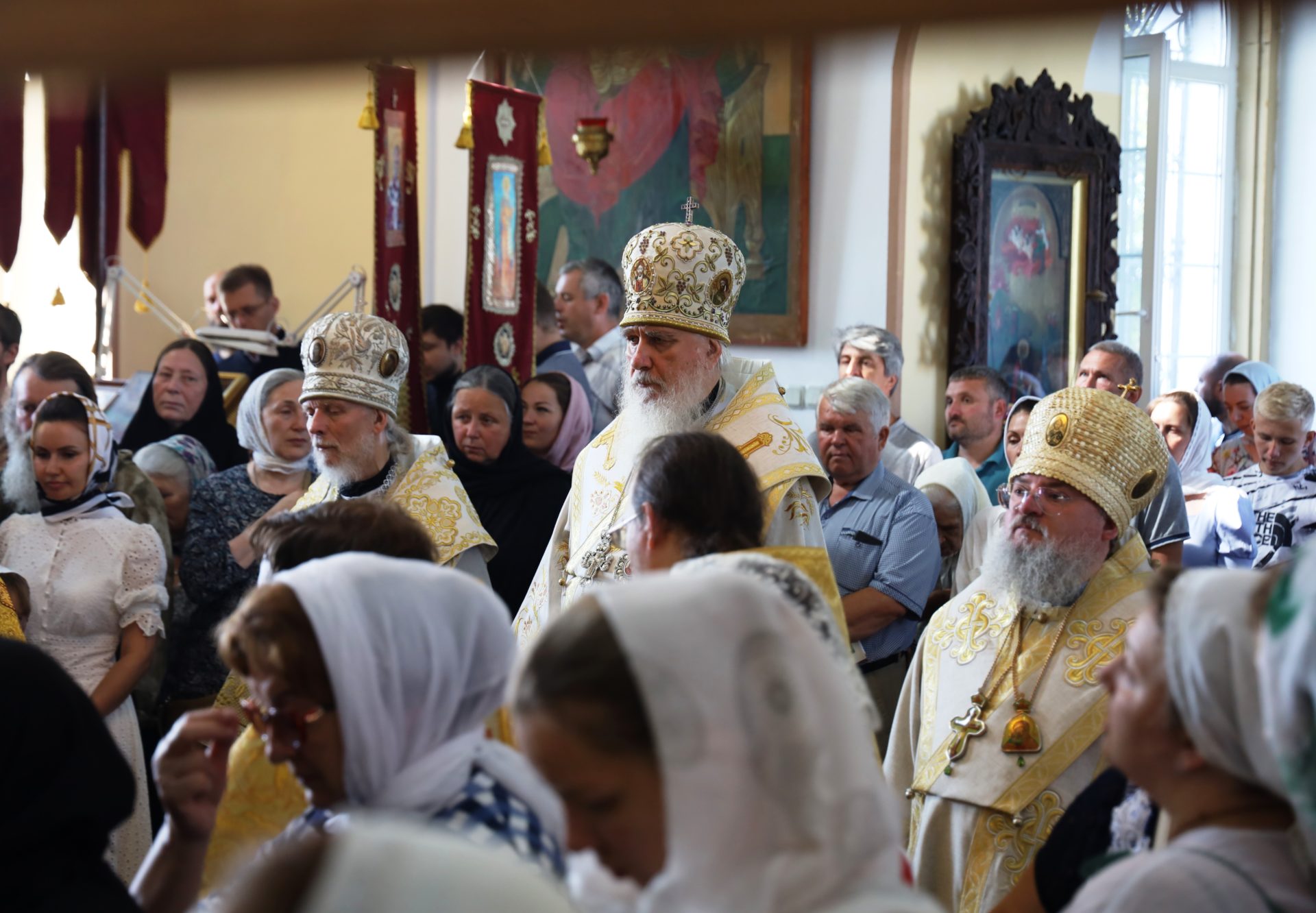 По окончании Литургии архиереи возглавили шествие крестного хода вокруг храма. Перед входом в храм владыка митрополит вознес молитву святому пророку Илии. Затем в храме перед чтимой иконой было пропето величание святому.