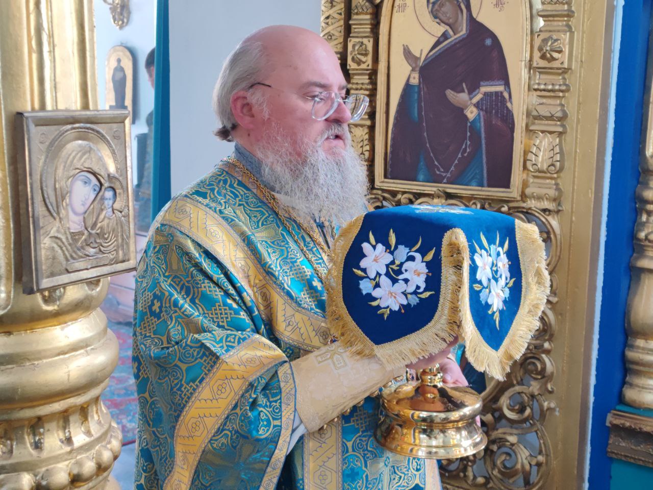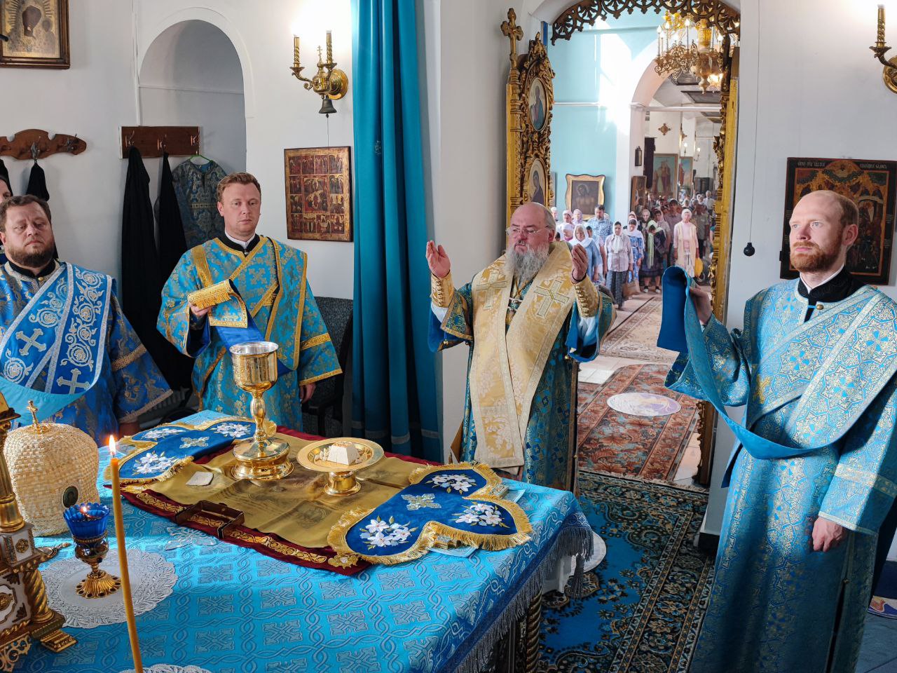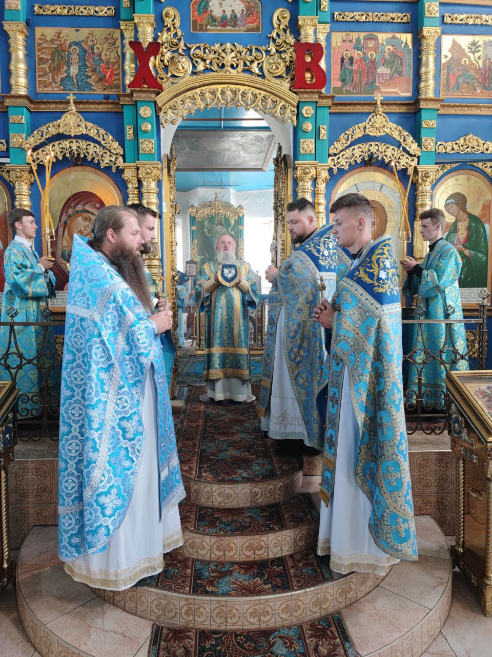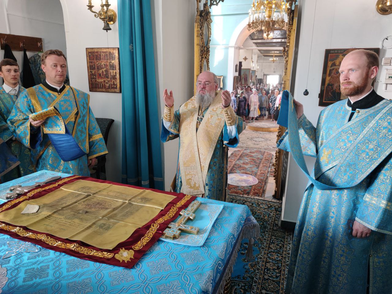 После отпуста литургии состоялся праздничный молебен и крестный ход вокруг храма, во время которого епископ Никита освятил мозаичный образ Пресвятой Богородицы для размещения на фасаде храма. Завершив богослужение молитвой к Божией Матери владыка обратился к богомольцам с архипастырским словом.