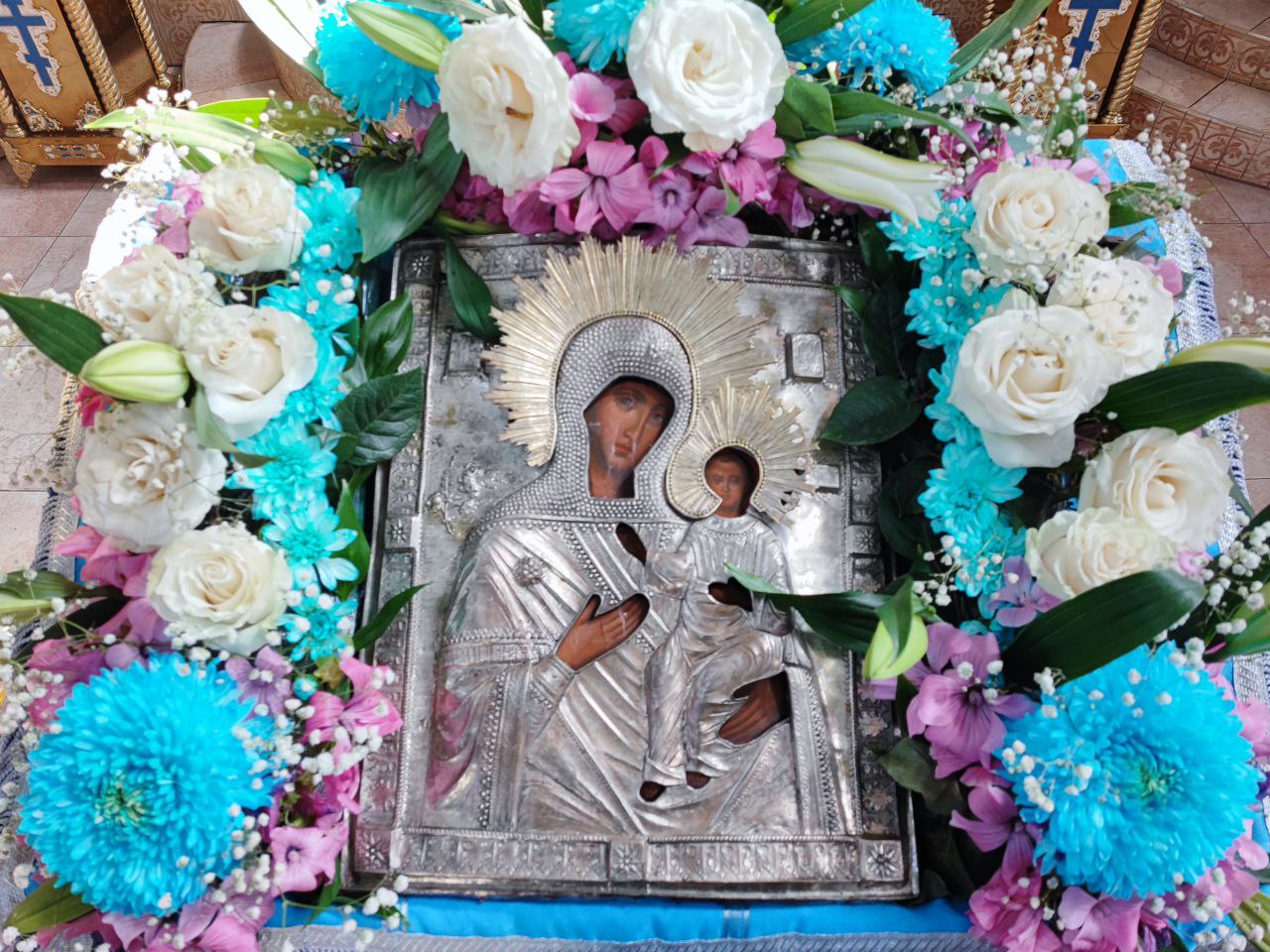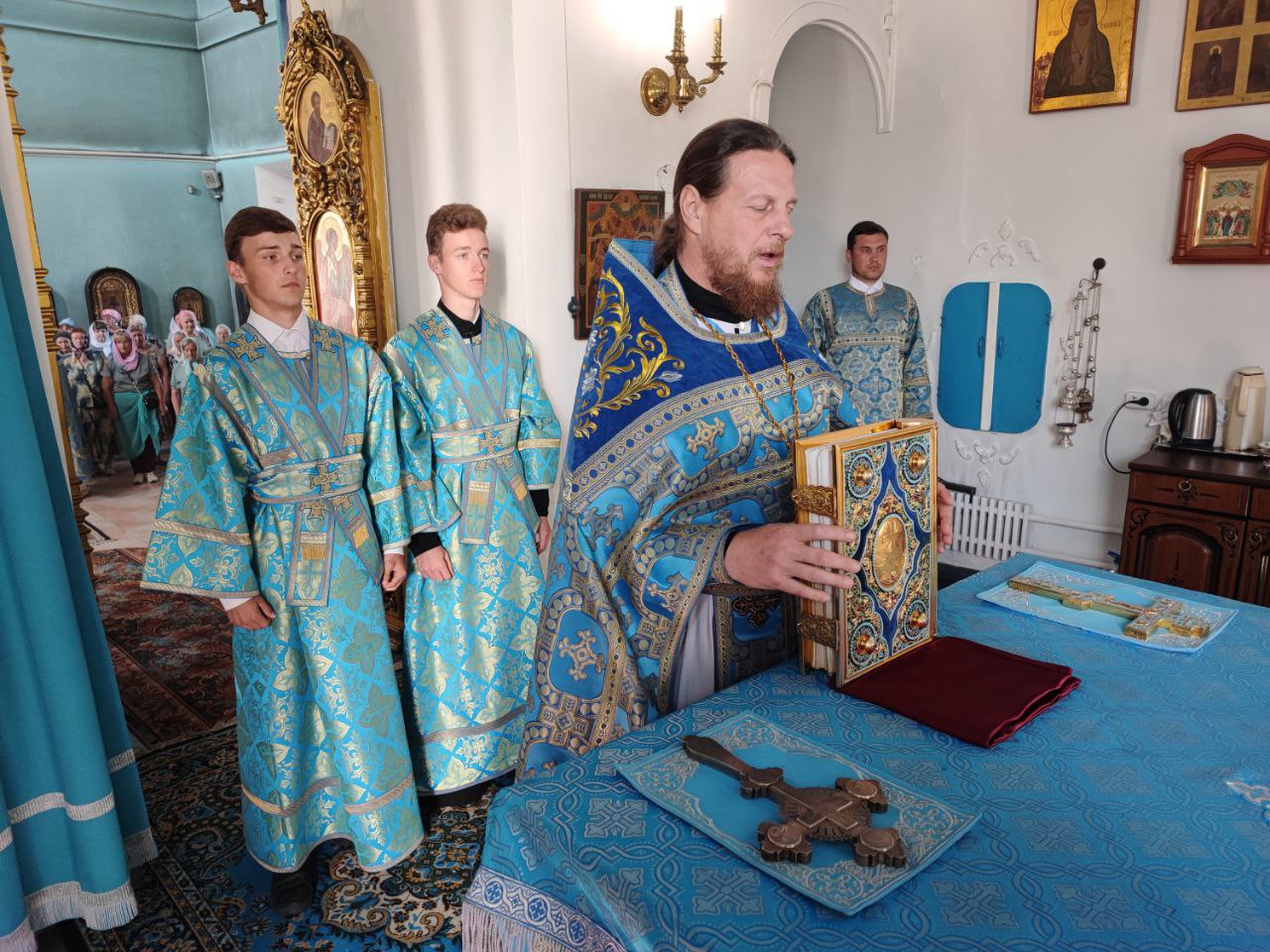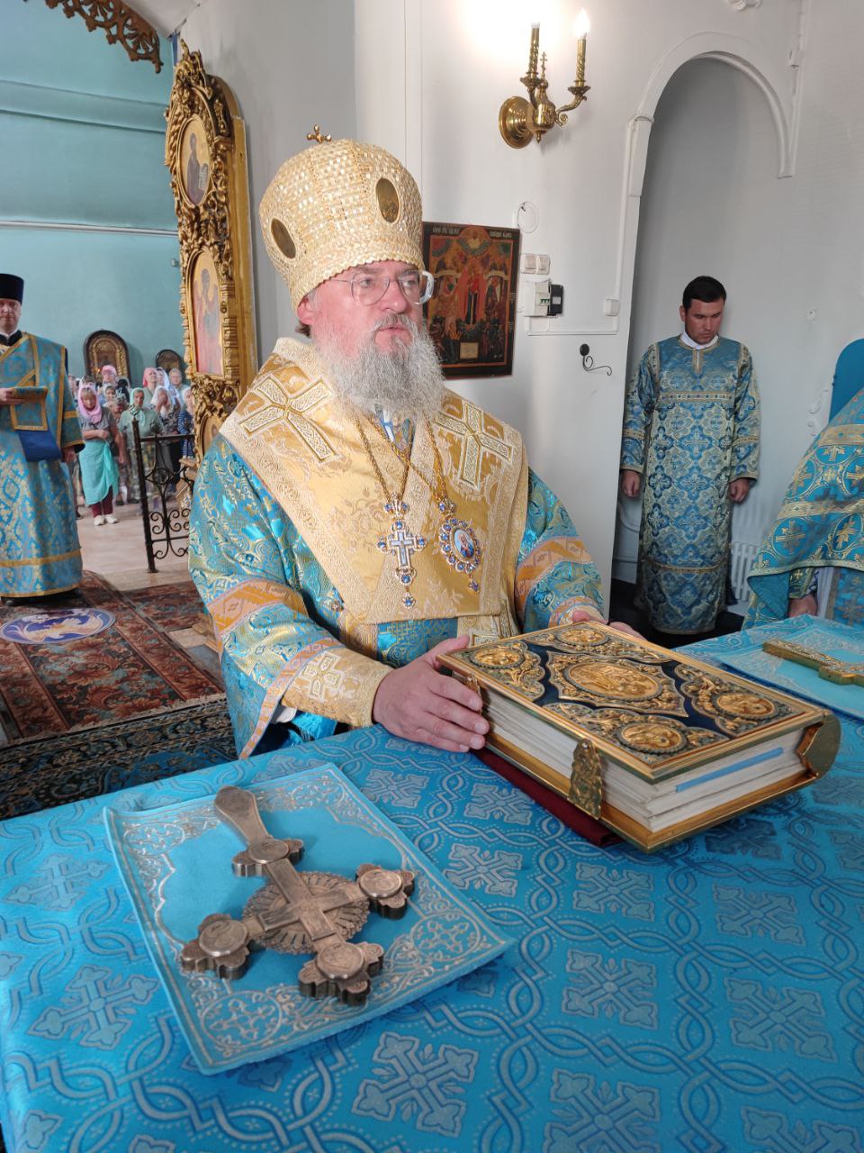 После отпуста литургии состоялся праздничный молебен и крестный ход вокруг храма, во время которого епископ Никита освятил мозаичный образ Пресвятой Богородицы для размещения на фасаде храма. Завершив богослужение молитвой к Божией Матери владыка обратился к богомольцам с архипастырским словом.