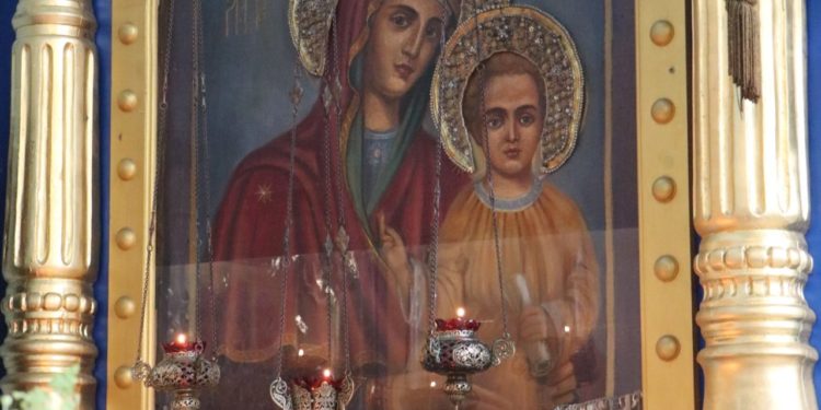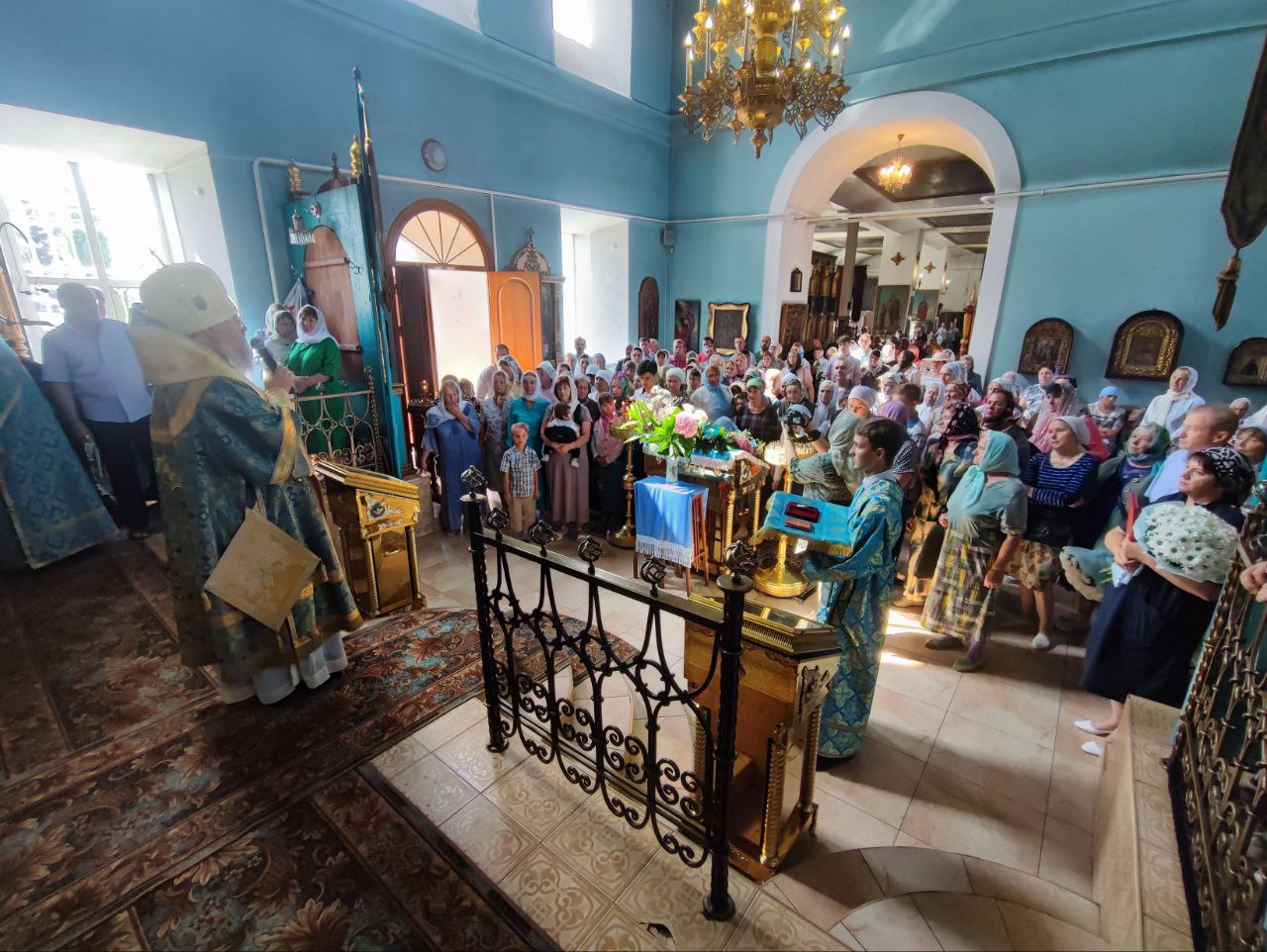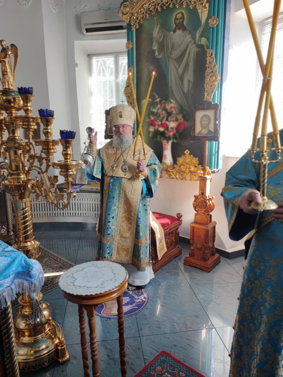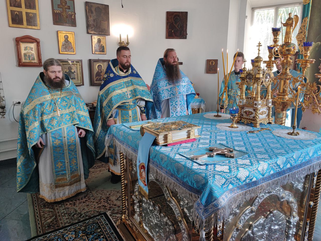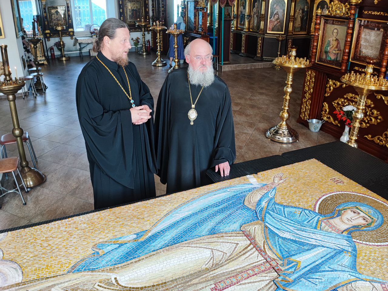 После отпуста литургии состоялся праздничный молебен и крестный ход вокруг храма, во время которого епископ Никита освятил мозаичный образ Пресвятой Богородицы для размещения на фасаде храма. Завершив богослужение молитвой к Божией Матери владыка обратился к богомольцам с архипастырским словом.