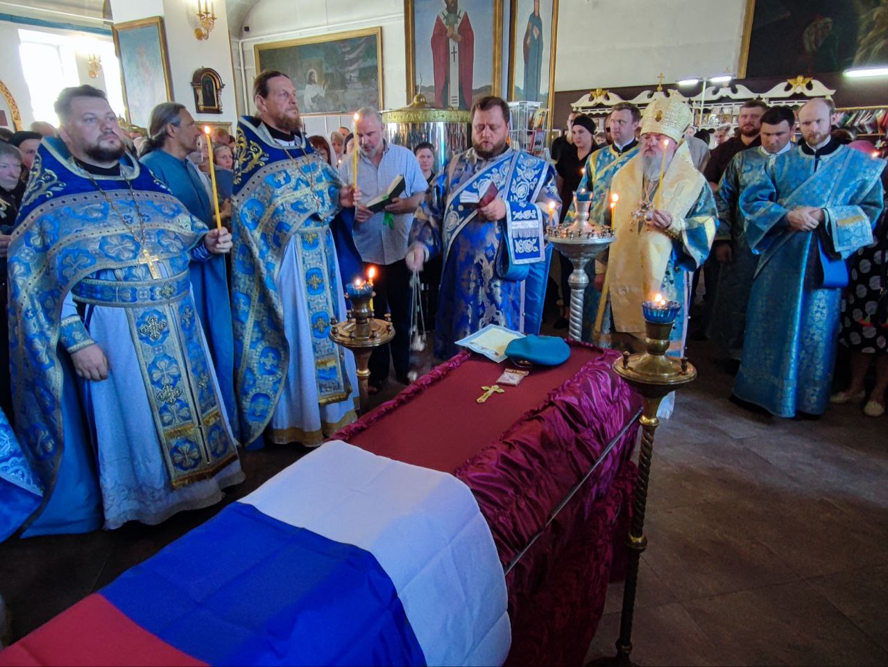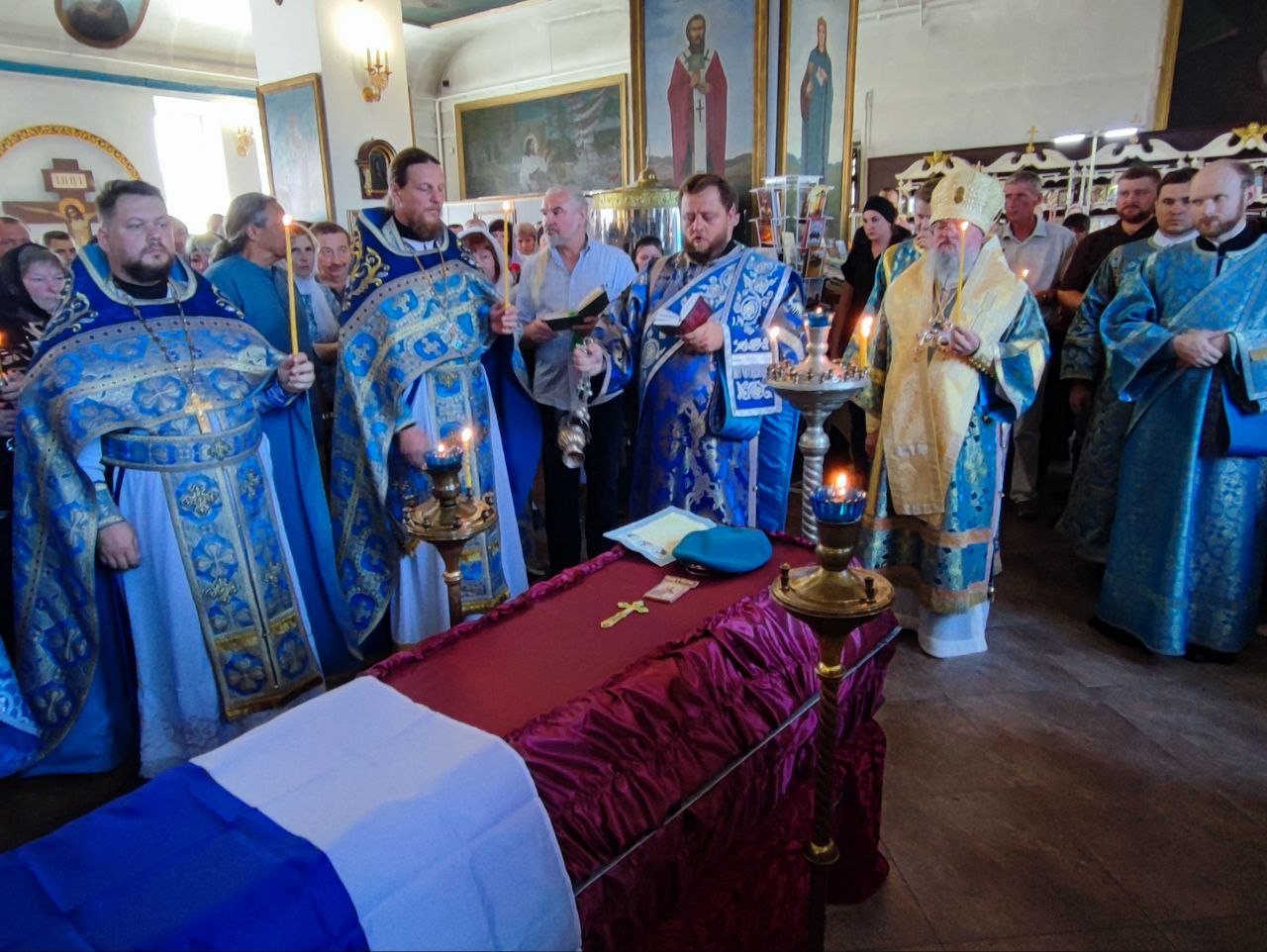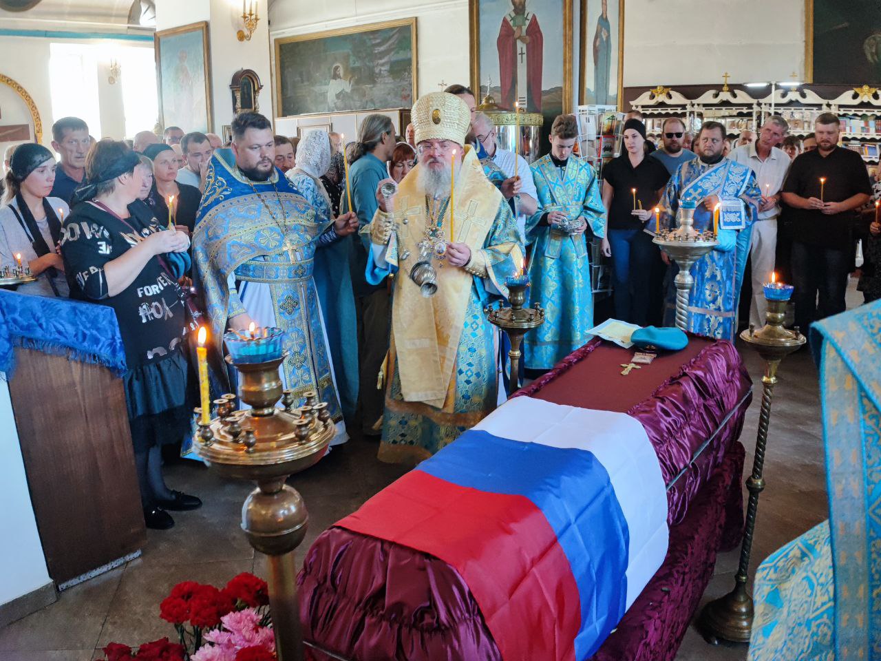 10 августа в храме Смоленской иконы Пресвятой Богородицы города Сухиничи епископ Козельский и Людиновский Никита совершил отпевание погибшего в зоне военных действий воина Александра Карева. Почтить героя в храм пришли родственники, друзья жители города, представители районной и городской Администрации.
