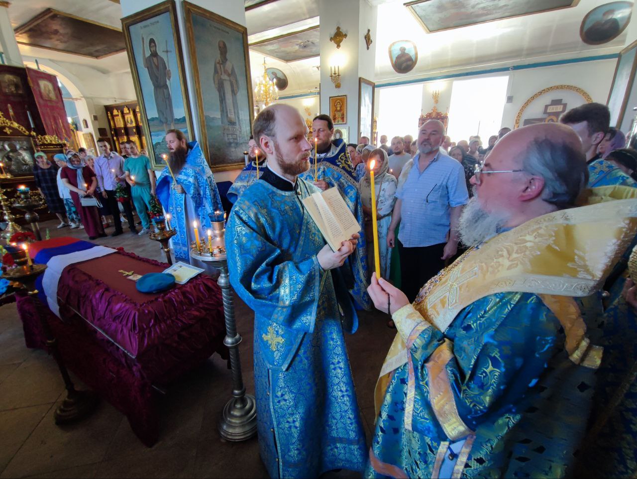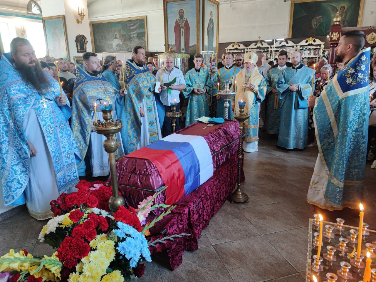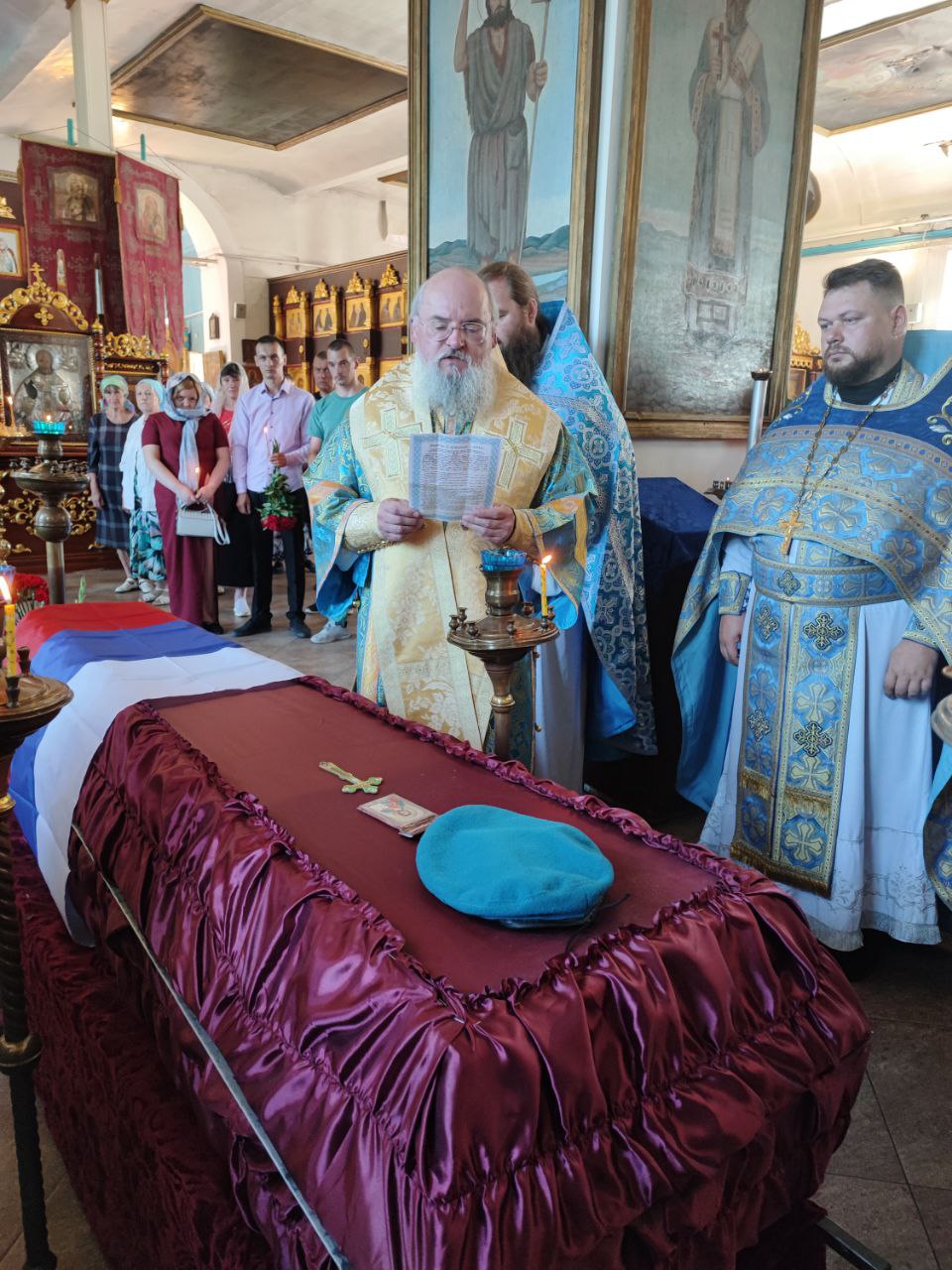 10 августа в храме Смоленской иконы Пресвятой Богородицы города Сухиничи епископ Козельский и Людиновский Никита совершил отпевание погибшего в зоне военных действий воина Александра Карева. Почтить героя в храм пришли родственники, друзья жители города, представители районной и городской Администрации.