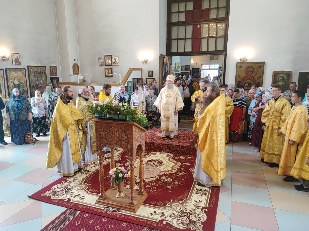 Преосвященному владыке сослужили: архимандрит Михаил (Семенов), иерей Евгений Мягков – настоятель храма, иерей Елисей Тимофеев, иерей Евгений Чуркин, иерей Дионисий Капустин, диакон Евгений Ковригин и иеродиакон Лука (Старостин).