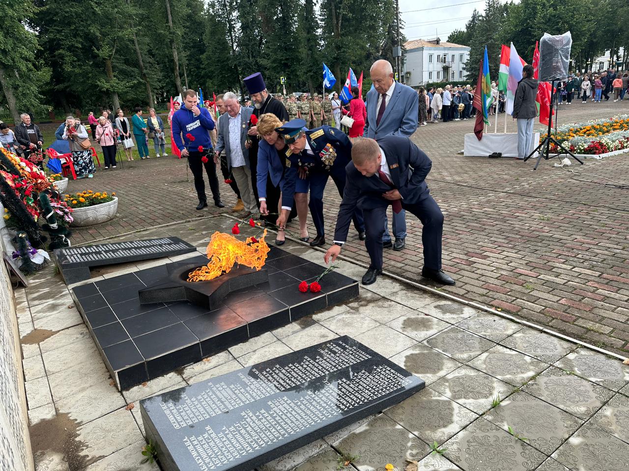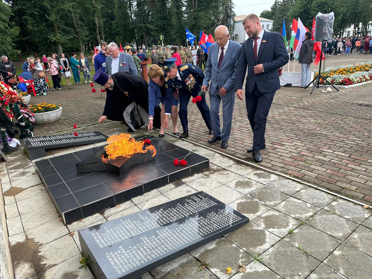 13 августа 2023 года, Думиничский район отмечает одну из самых важных дат – 80 годовщину со дня освобождения от немецко-фашистских захватчиков. В этот праздничный день было организовано шествие колонны и возложения цветов и венков к памятникам. Торжественное мероприятие проходило у Братской могилы воинов-освободителей. Взрослые и дети пришли отдать дань памяти нашим предкам. Гостями торжественного мероприятия были: первый заместитель председателя Законодательного Собрания Правительства Калужской области Виктор Сергеевич Бабурин, председатель областной организации ветеранов Анатолий Михайлович Исаченко, благочинный Думиничского района протоиерей Иоанн Староста. Гости района вместе с думиничанами возложил цветы в память о погибших.