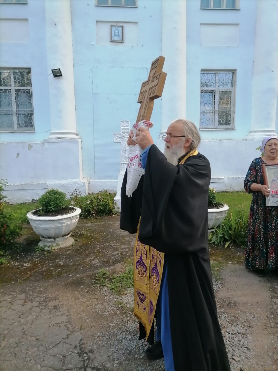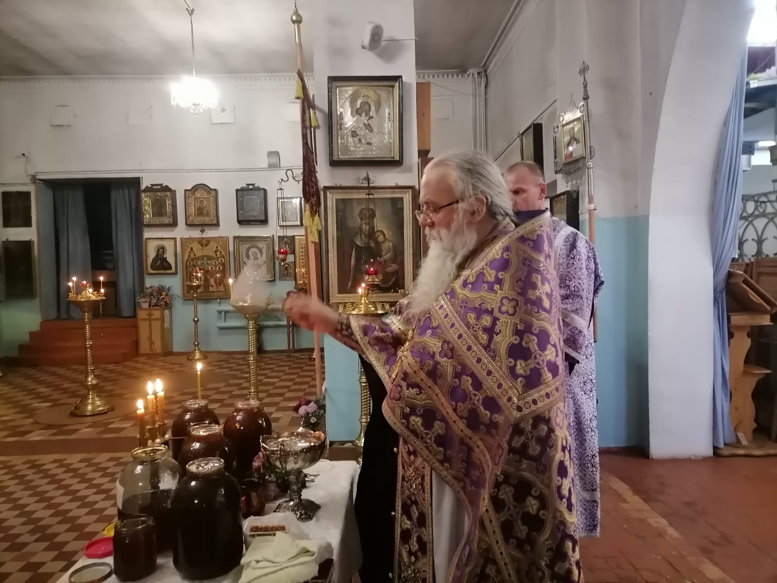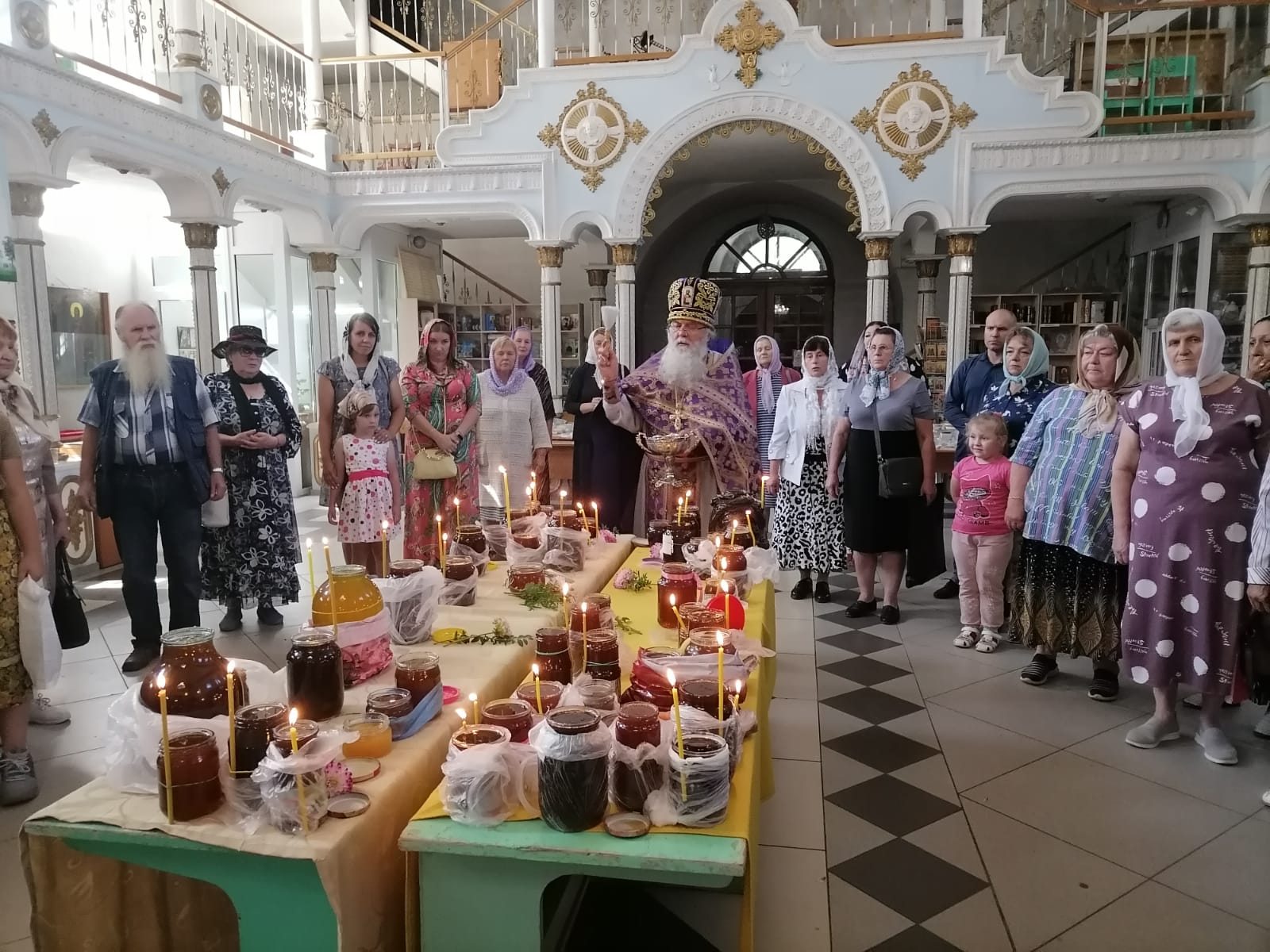 14 августа 2023 года, в сам день Происхождения (изнесения) Честных Древ Животворящего Креста Господня, настоятель Казанского собора города Людиново протоиерей Алексий Жиганов в сослужении клирика иерея Алексия Сначёва совершили водосвятный молебен с акафистом Честному Кресту Господню и Божественную литургию. Затем отец Алексий совершил чин освящения меда нового урожая в храме, после чего поздравил прихожан с праздником, пожелав помощи Божией в предстоящем Успенском посте.