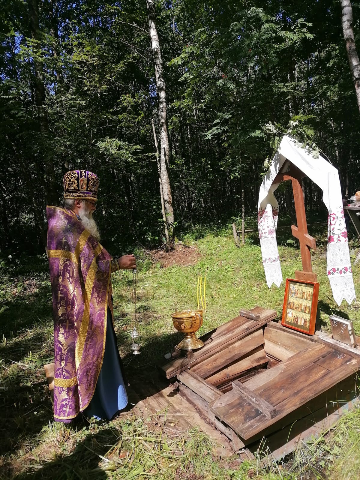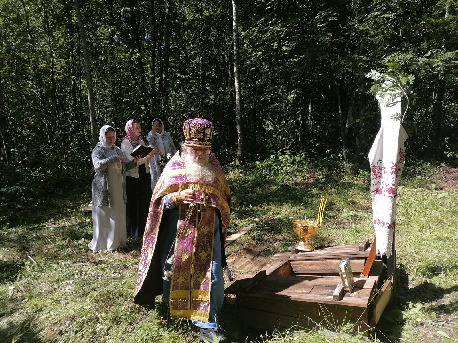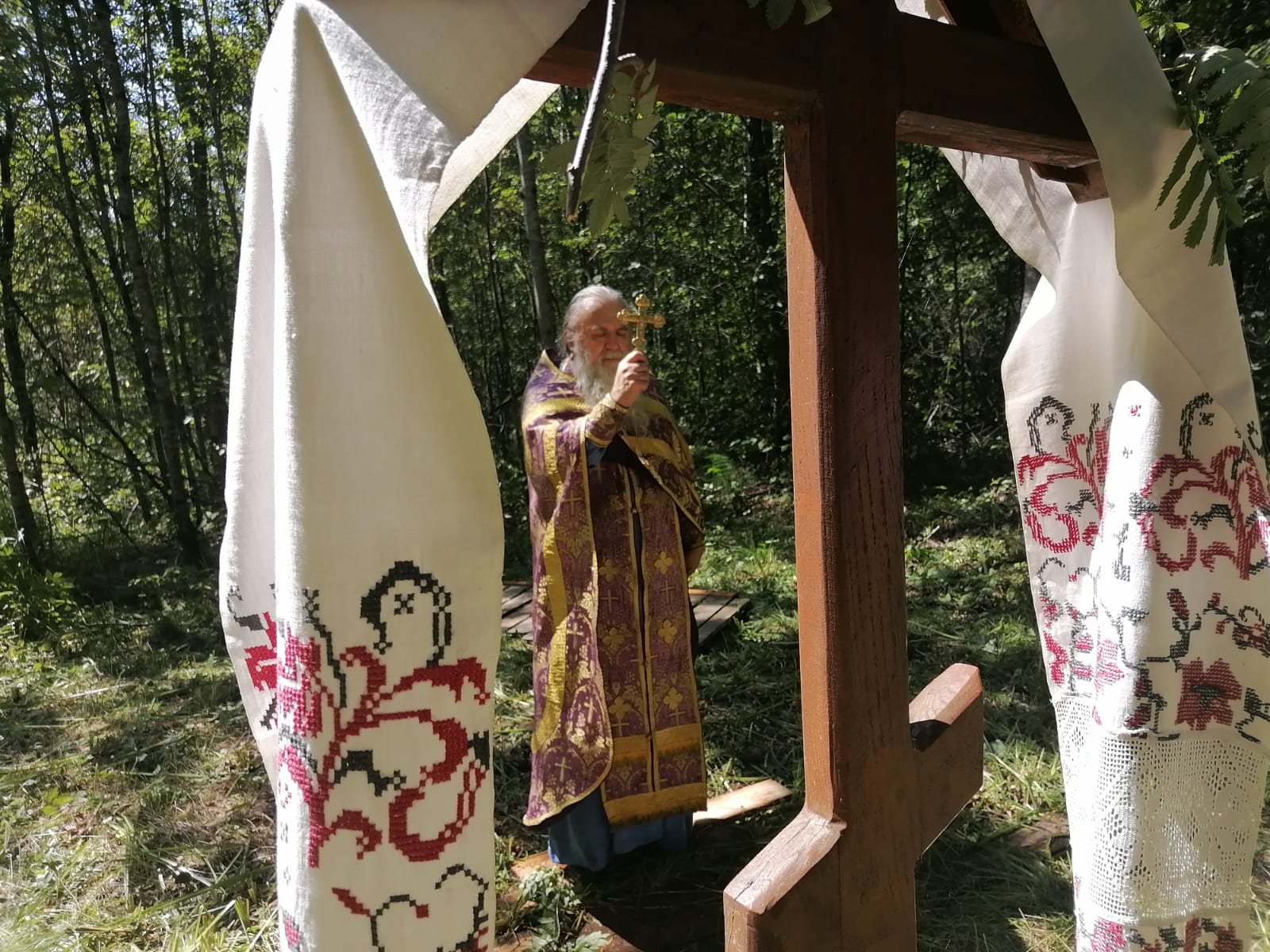 В этот же день батюшка с певчими и прихожанами совершили водосвятный молебен в деревне Заболотье Людиновского района на источнике в честь Животворящего Креста Господня. В народе источник называют «Шабурин колодец».
