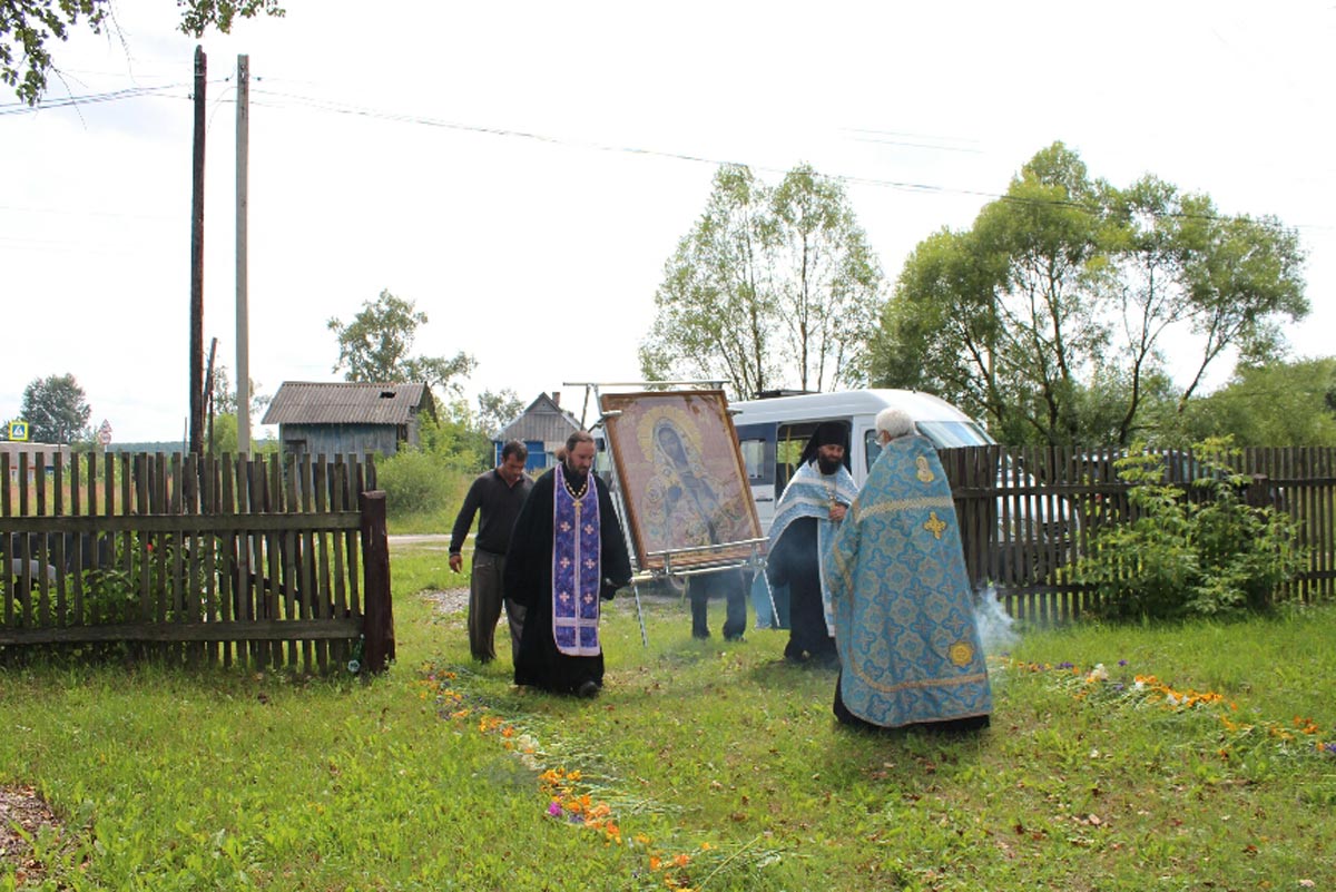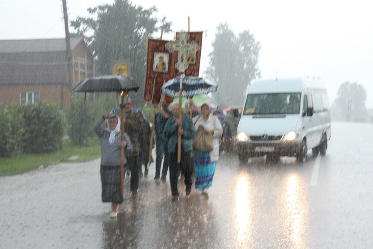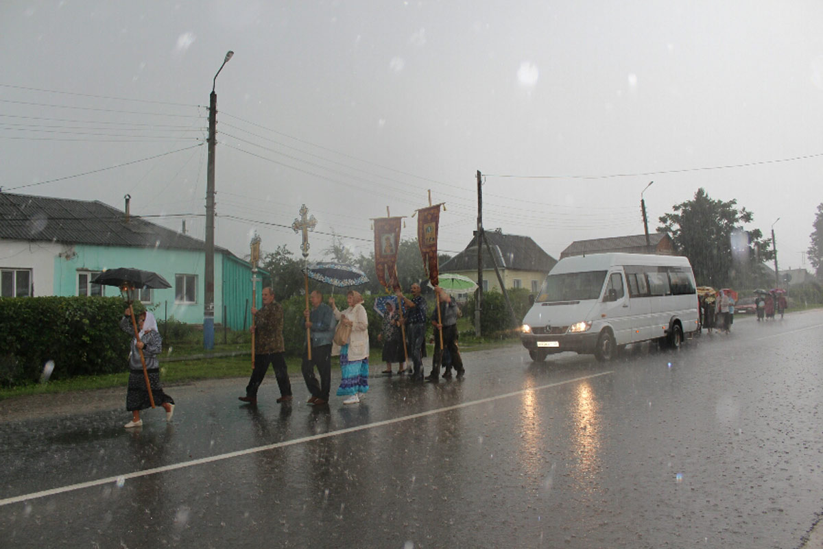 Далее икона прибыла в село Ульяново, где возле Знаменского храма был совершен молебен, после которого, несмотря на проливной дождь, молящиеся прошли крестным ходом с пением молитв Божьей Матери, к храму Воскресения Христова, где был отслужен акафист Божией Матери.