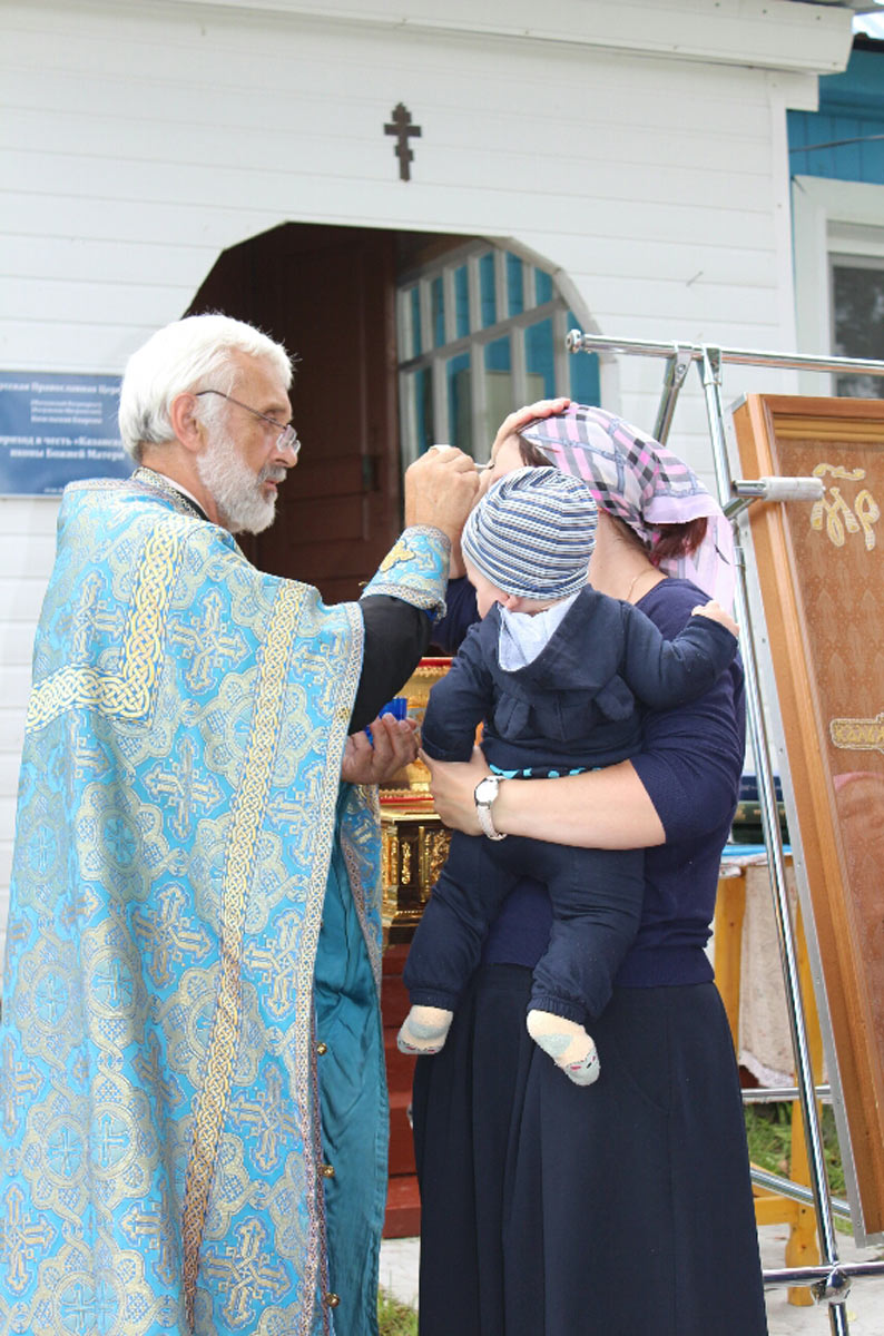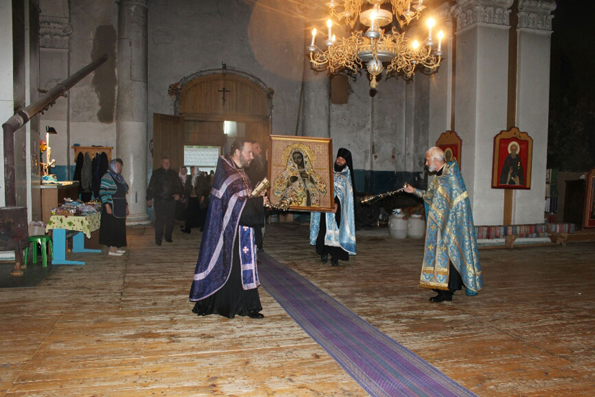 Начался он в поселке Дудоровский, где встречали ее прихожане обновленного храма. Молебное пение здесь было совершено настоятелем храма протоиерем Максимом Садовниковым и иереем Алексеем Сорокиным.