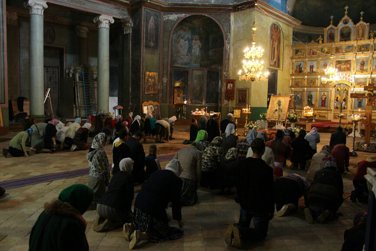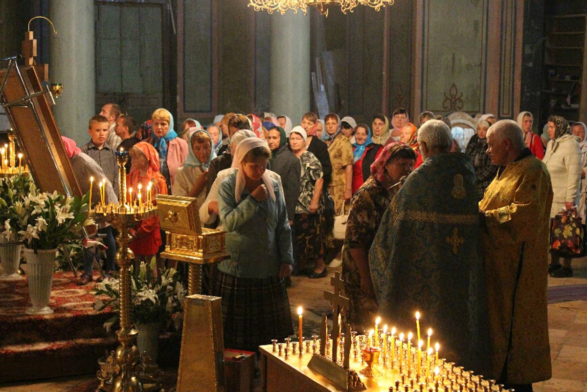 В 17:00 началась всенощное бдение, а затем водосвятный молебен.
