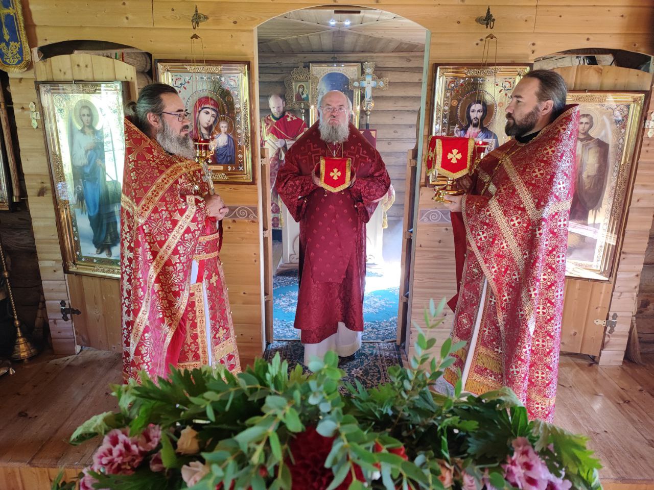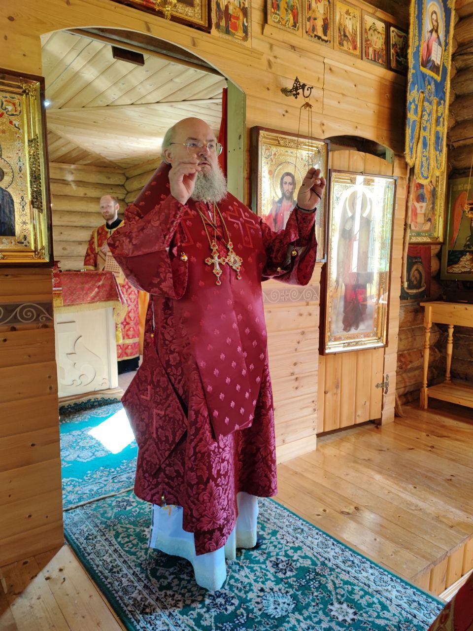 Архипастырю сослужили: протоиерей Максим Садовников – благочинный округа, иерей Стахий Гайсин – настоятель прихода и иеродиакон Лука (Старостин).