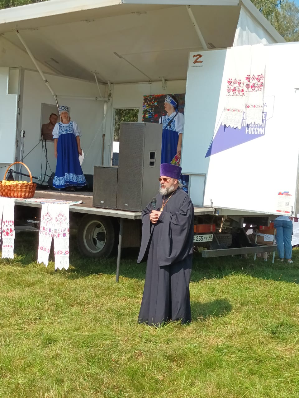 Затем, по уже сложившейся многолетней традиции, священник посетил народное гуляние по случаю Яблочного Спаса в деревне Погост Людиновского района. Батюшка поздравил гостей празднества с Преображением Господним и пожелал всем творить дела милосердия, преображаться духовно…
