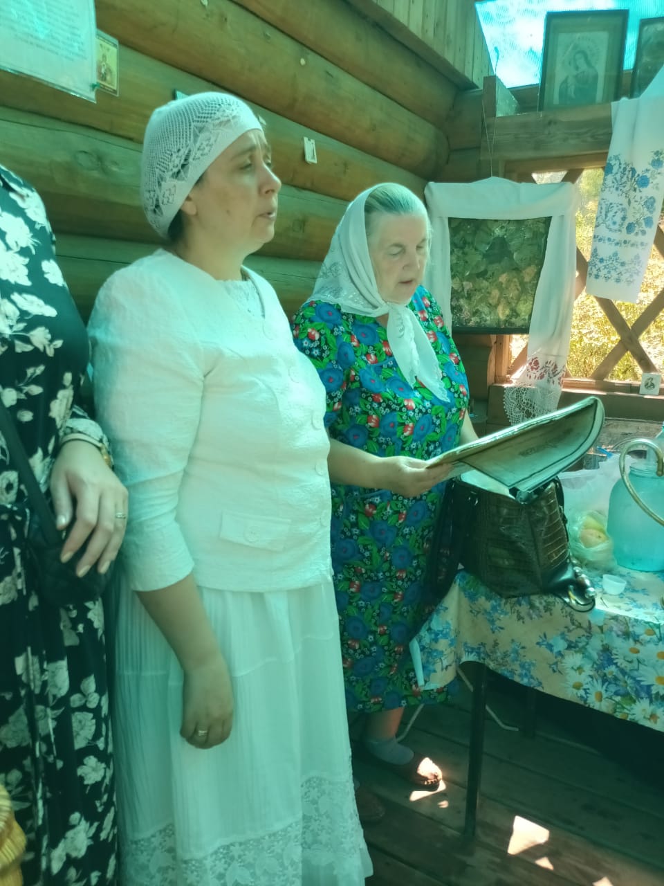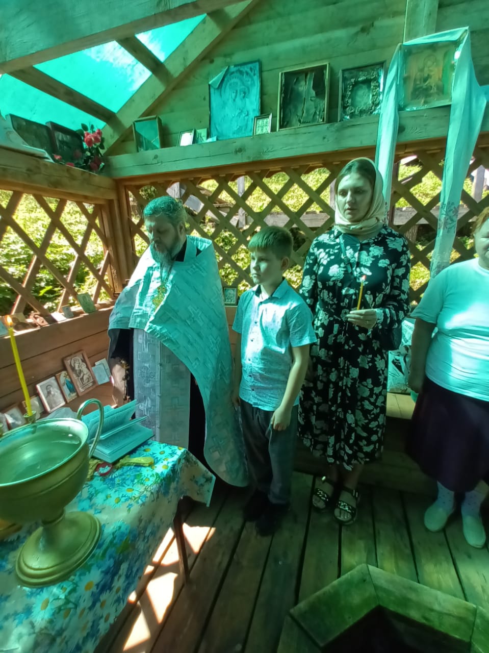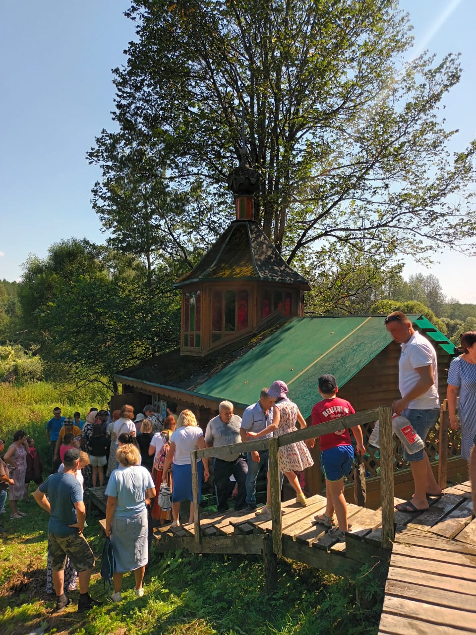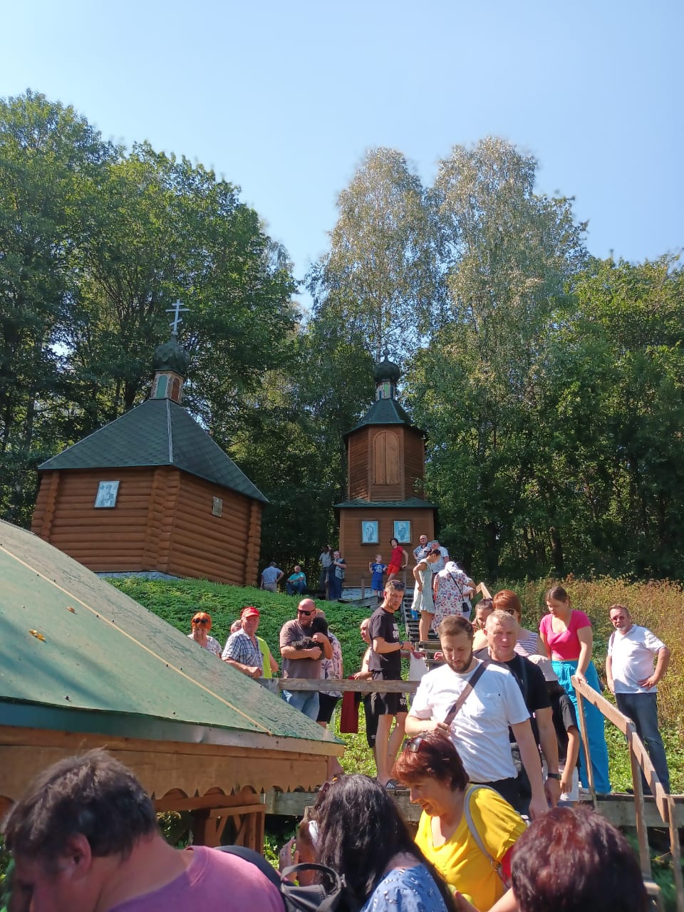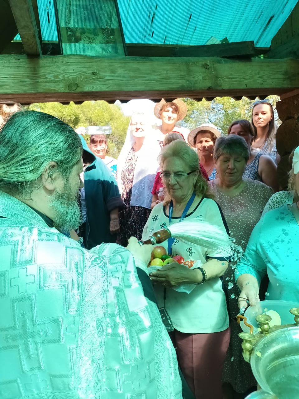 Потом, при большом стечении народа, был отслужен водосвятный молебен в Никольской часовне у святого Спасского источника. После чего священнослужитель освятил плоды нового урожая и окропил всех присутствующих святой водой.