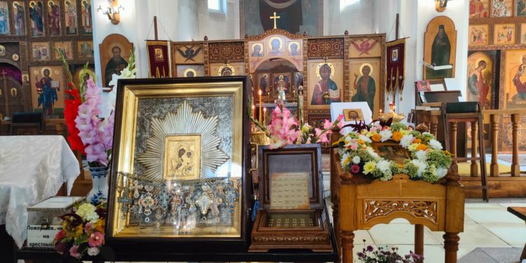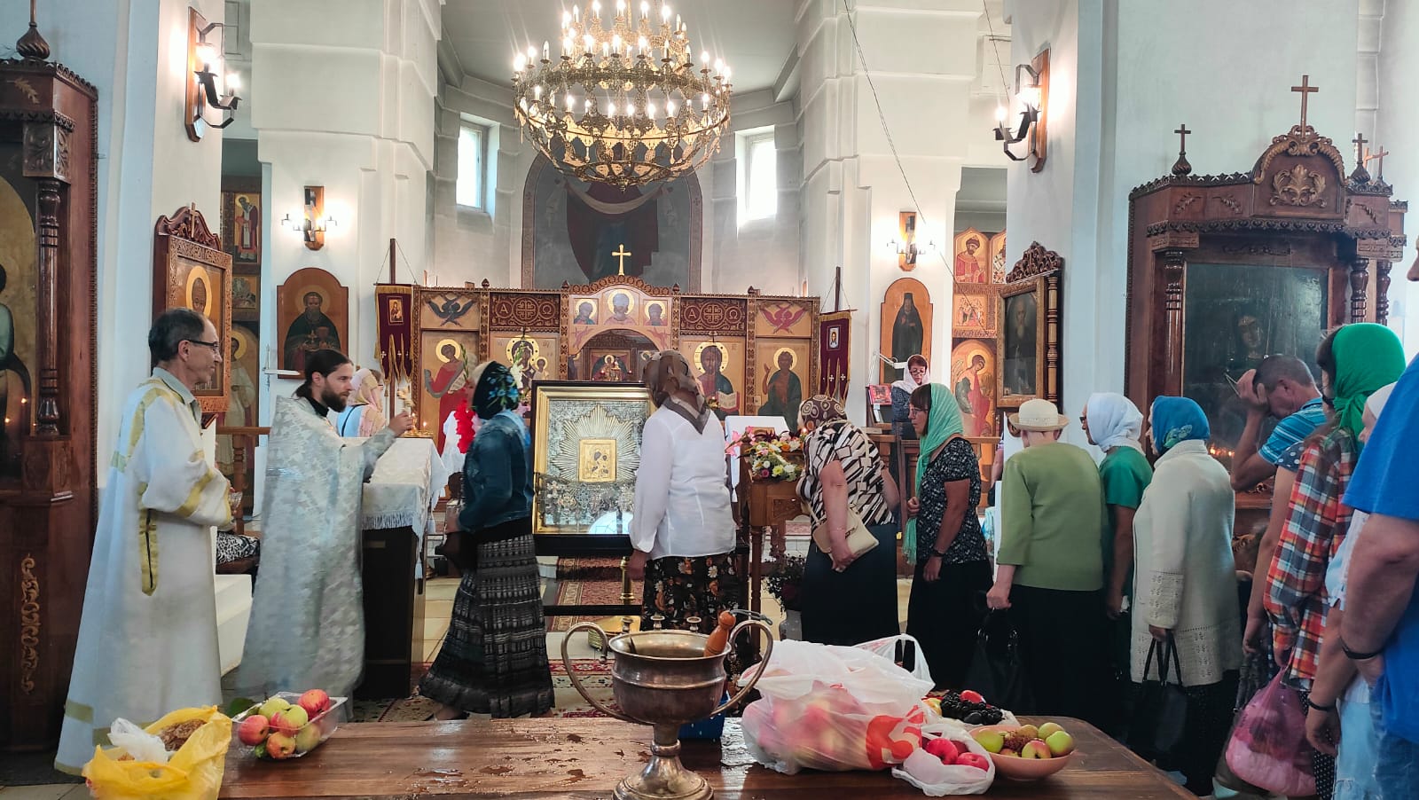 На следующий день состоялась праздничная Божественная литургия, которую пели сами казаки, сопровождающие святыню. После службы был отслужен молебен с акафистом после чего Крестный ход отправился дальше.
