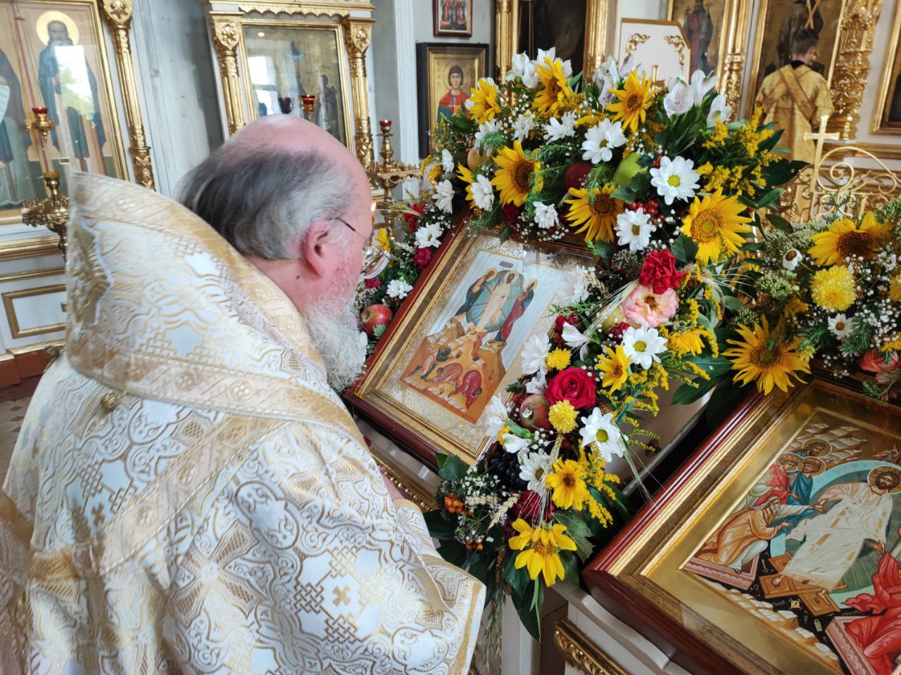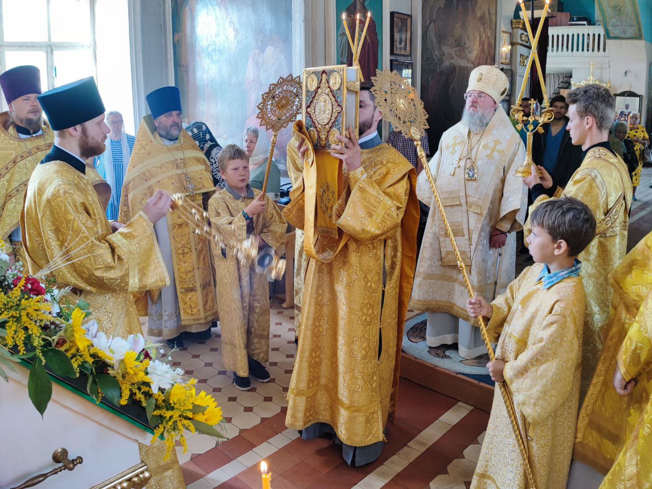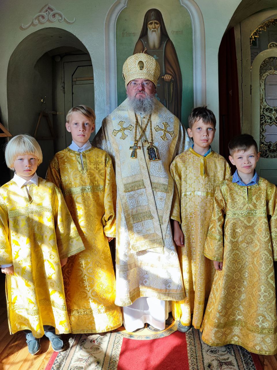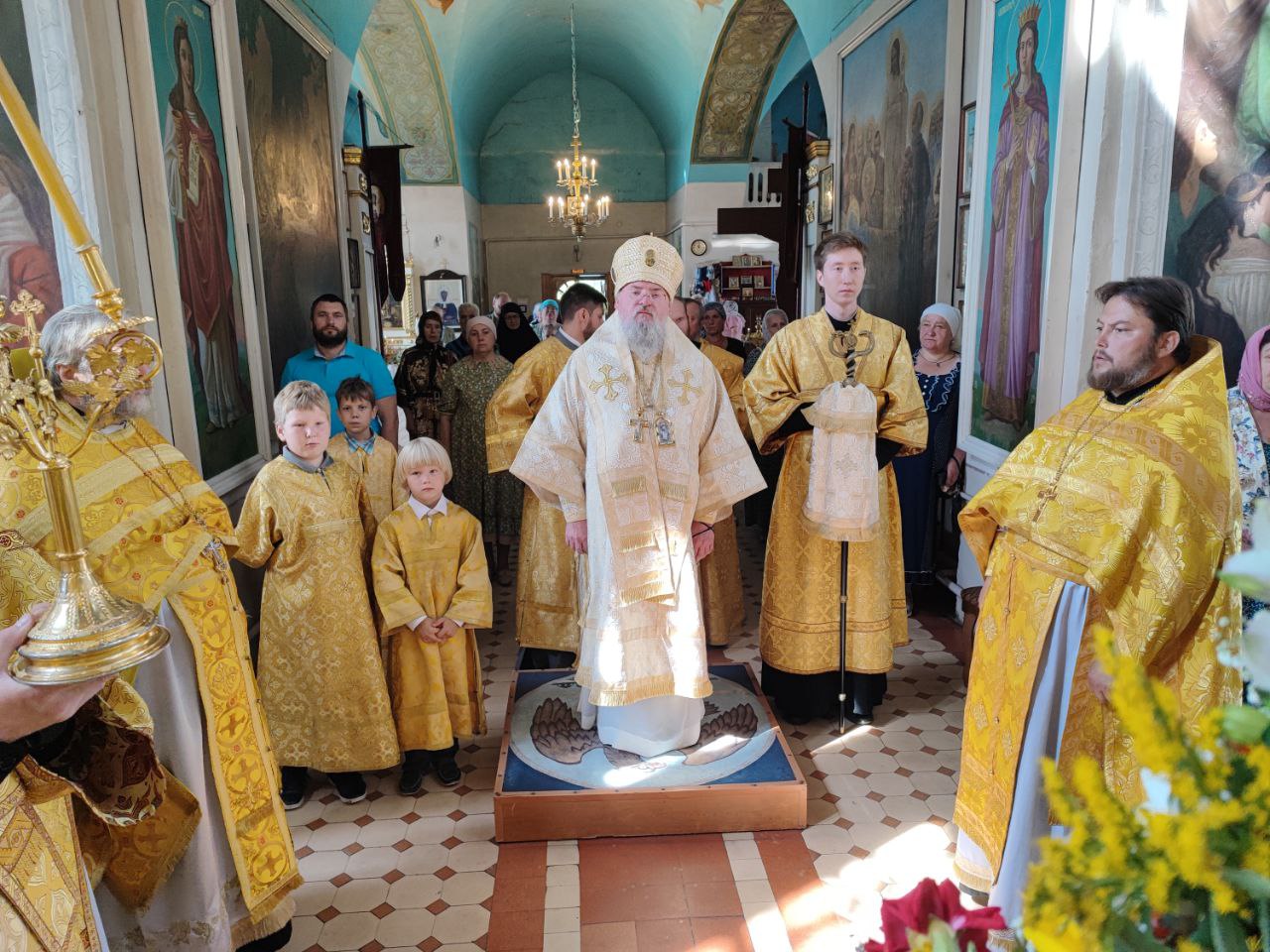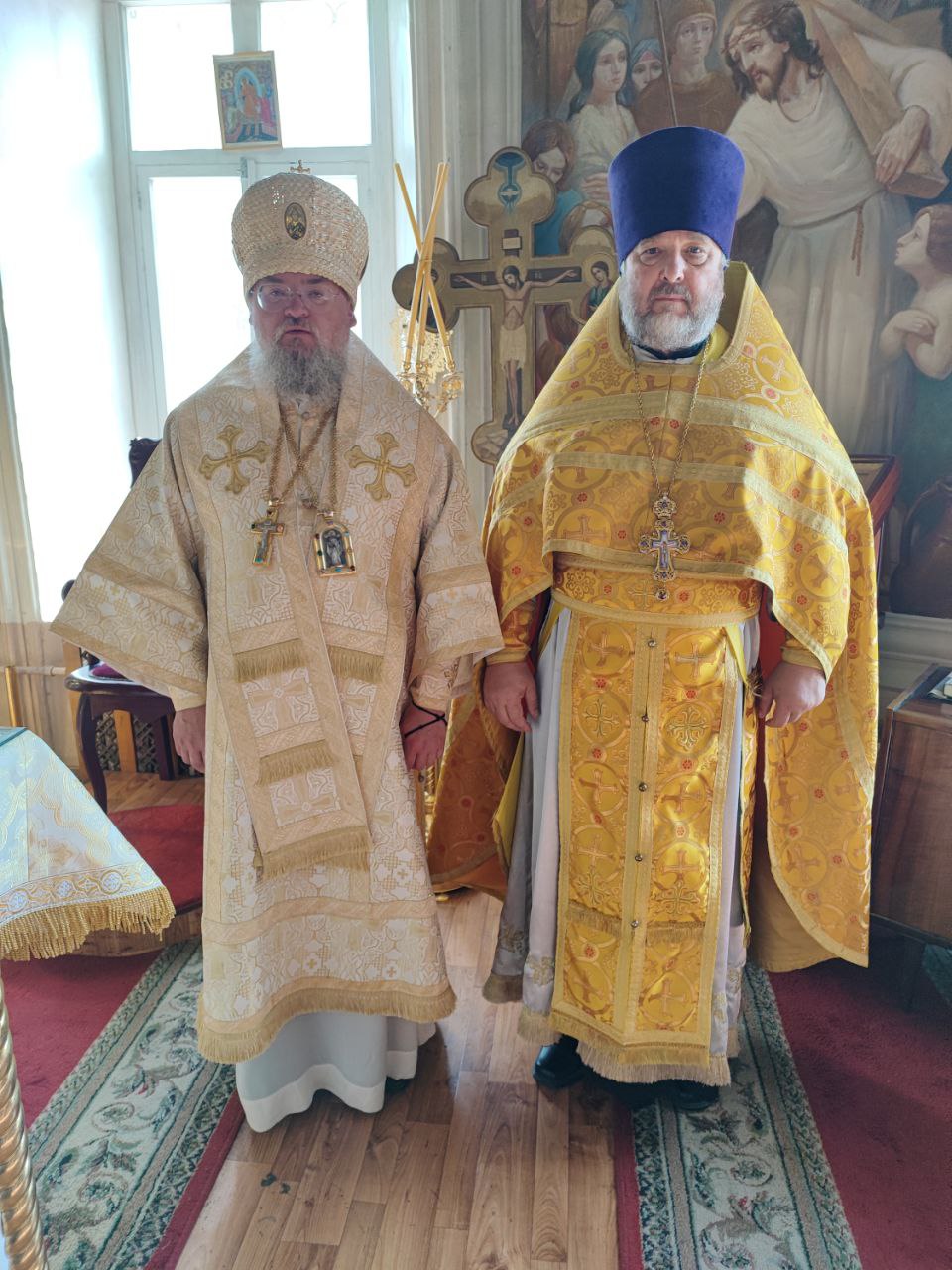 Преосвященнейшему владыке сослужили: протоиерей Павел Морозов, протоиерей Антоний Хатунцев, иерей Сергий Барыкин – настоятель прихода, диакон Евгений Васильев и иеродиакон Лука (Старостин).